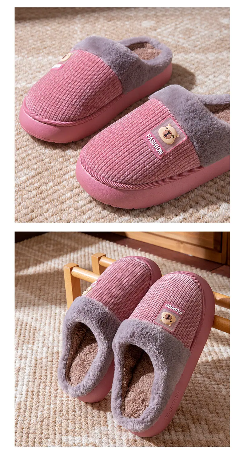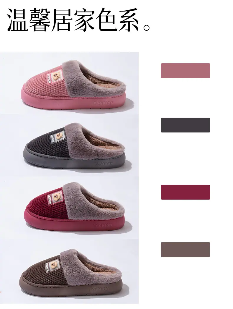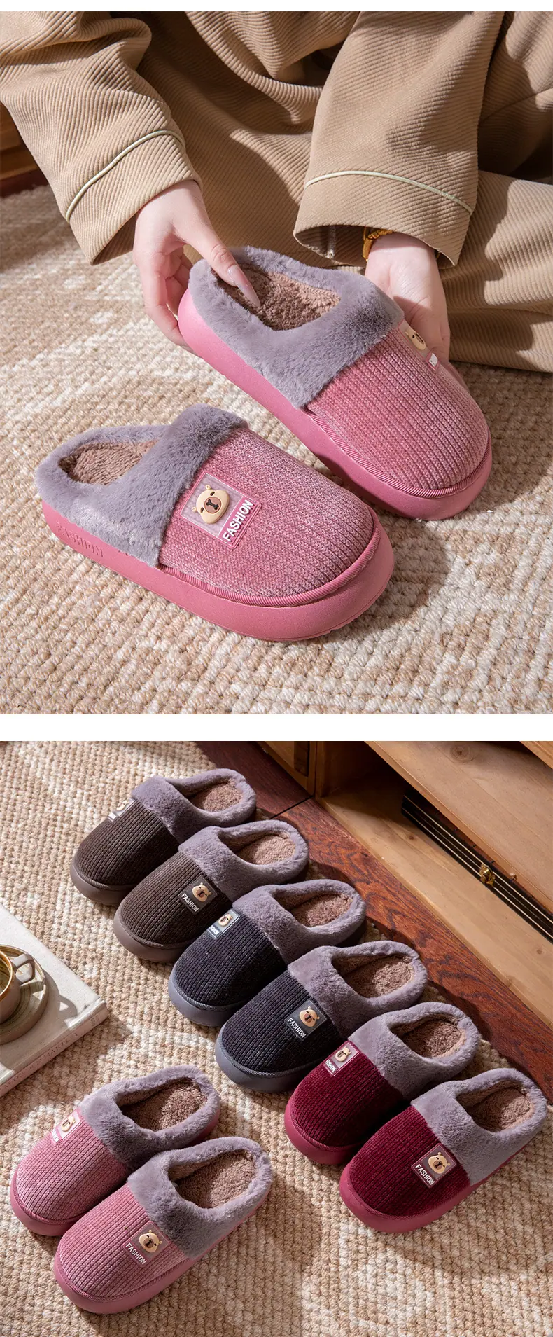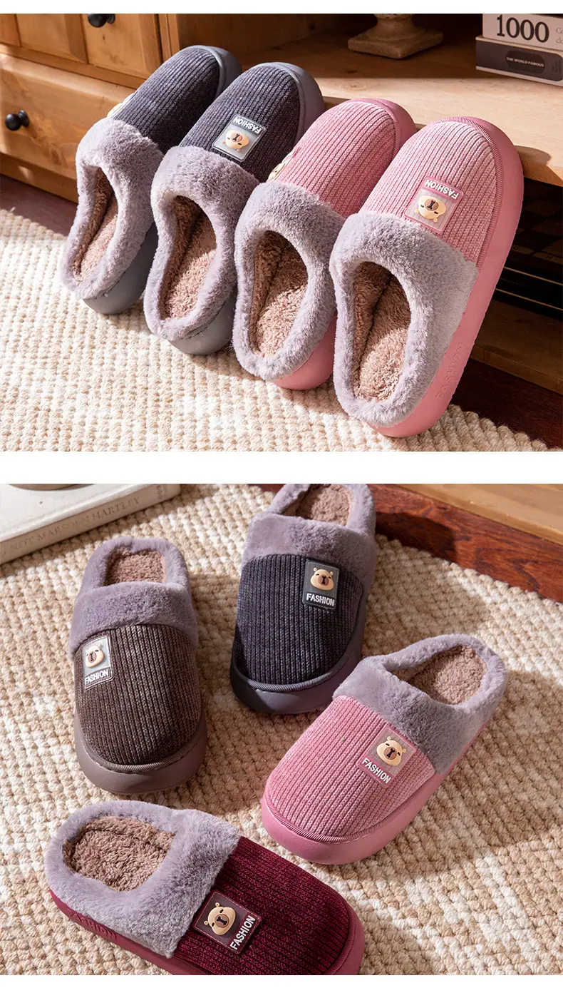 2025 Invierno Bolsa de Pareja Tacón Zapatillas de Algodón Interior Hogar Antideslizante Resistente al Desgaste Cálido Suela Gruesa Sensación de Pisar Mierda Zapatos de Algodón Hombres