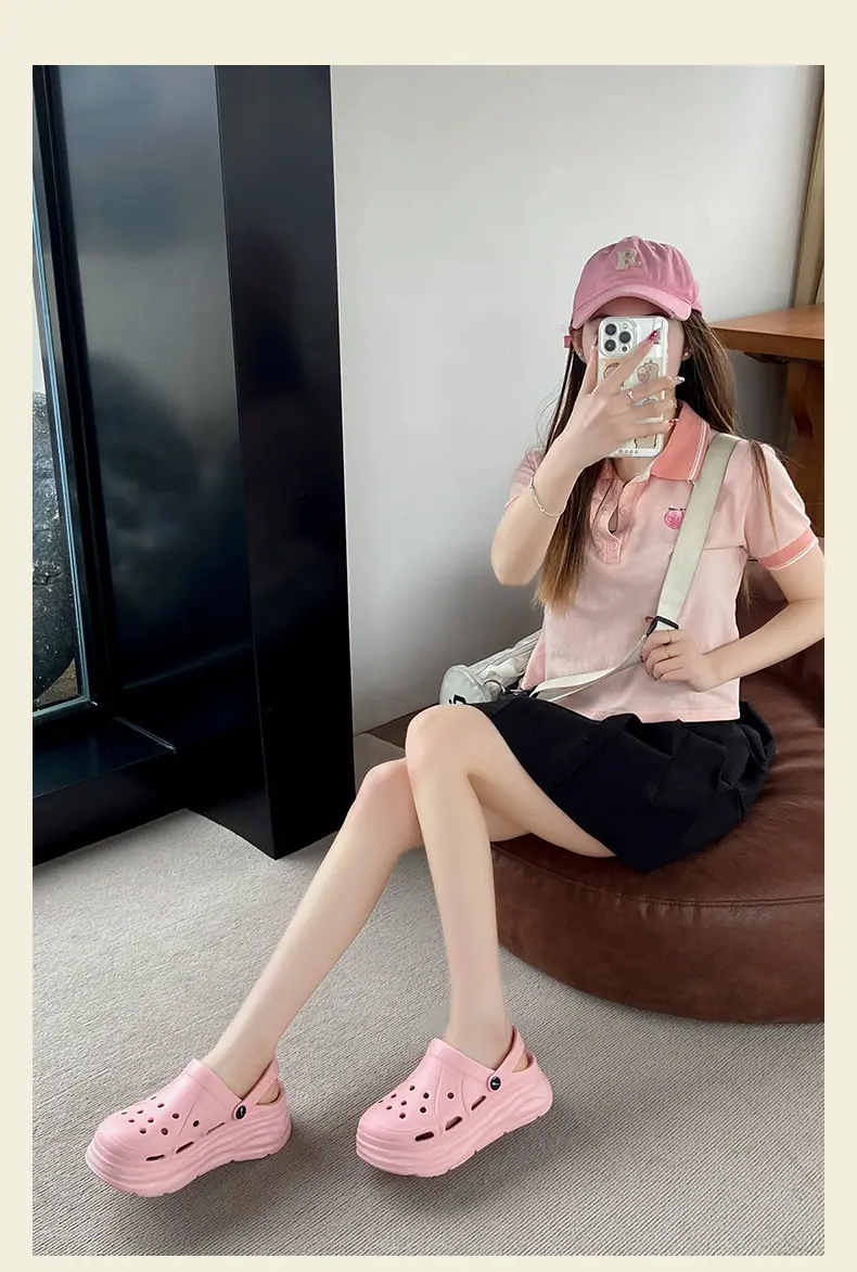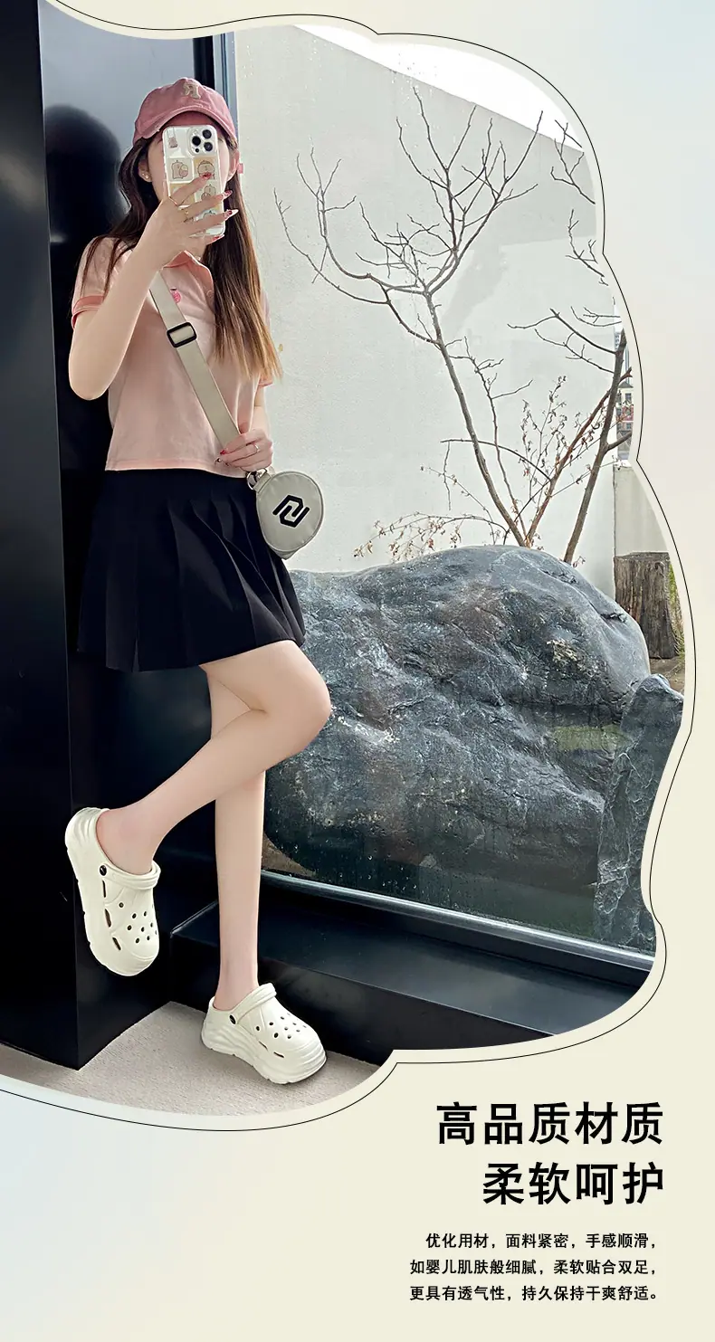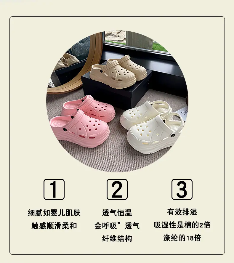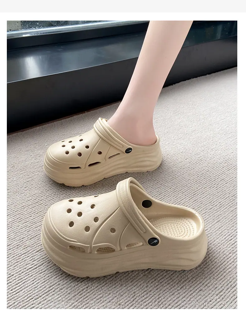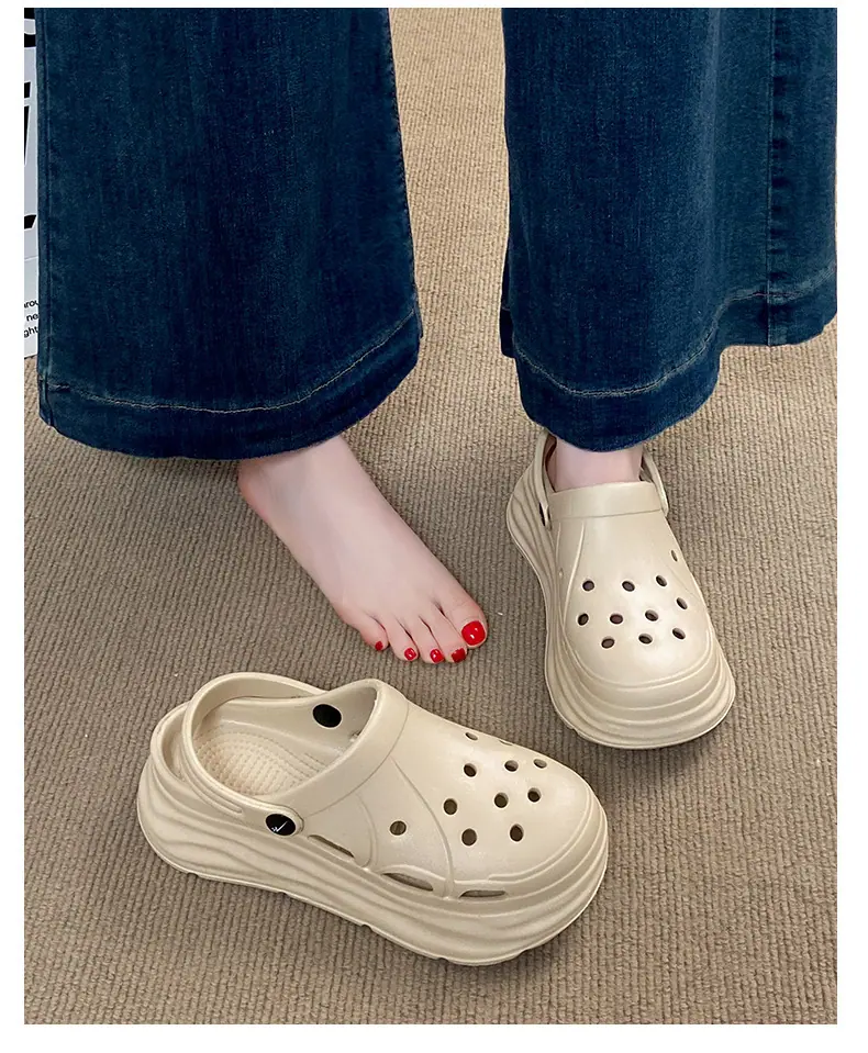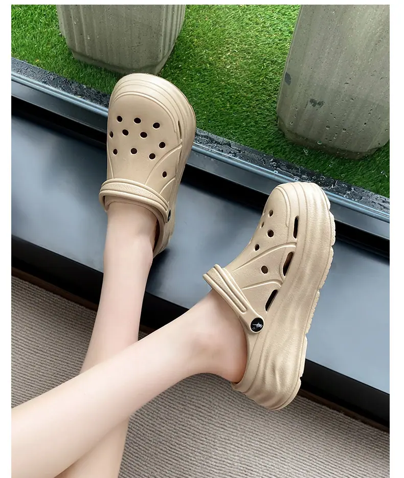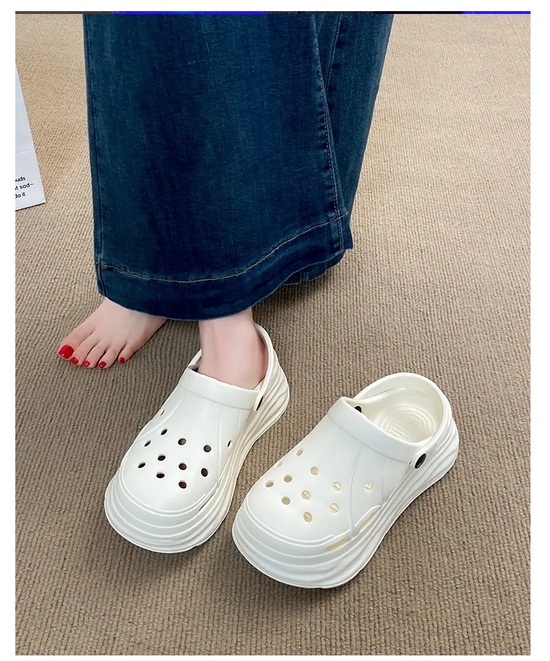 Sandalias de Suela Blanda para Mujer que Aumentan la Altura EVA 2025 Nuevo Estilo Exterior Silenciosas Antideslizantes Zapatillas Zapatos de Agujeros Estilo Mori de Color Sólido para Mujer