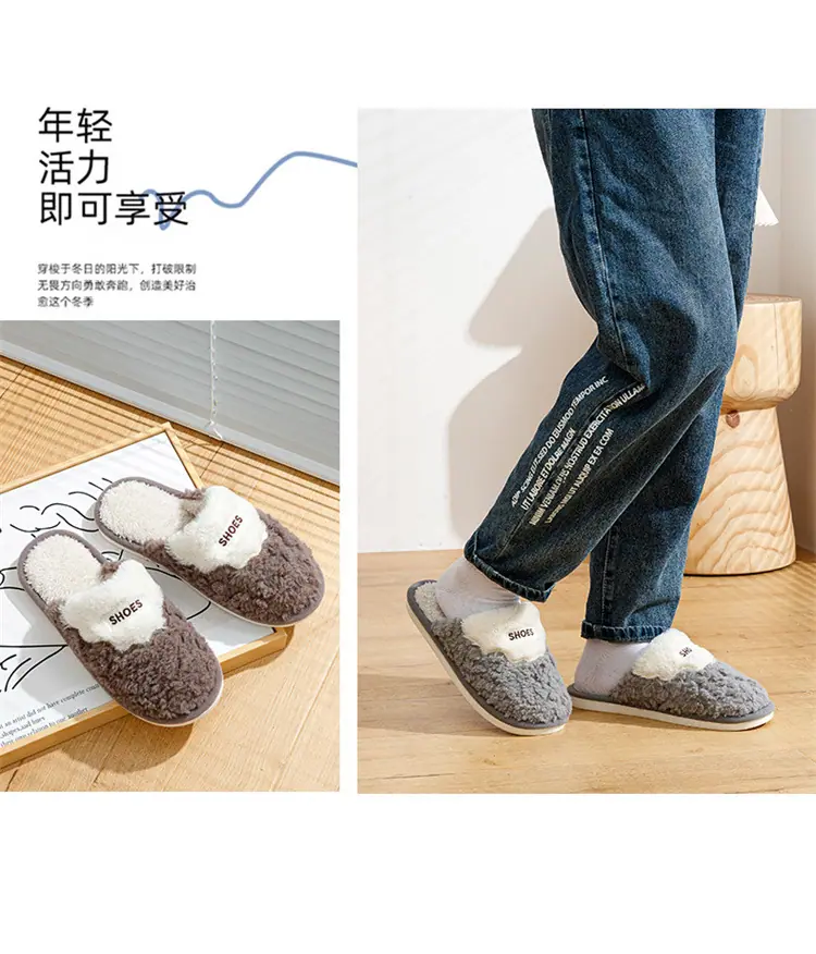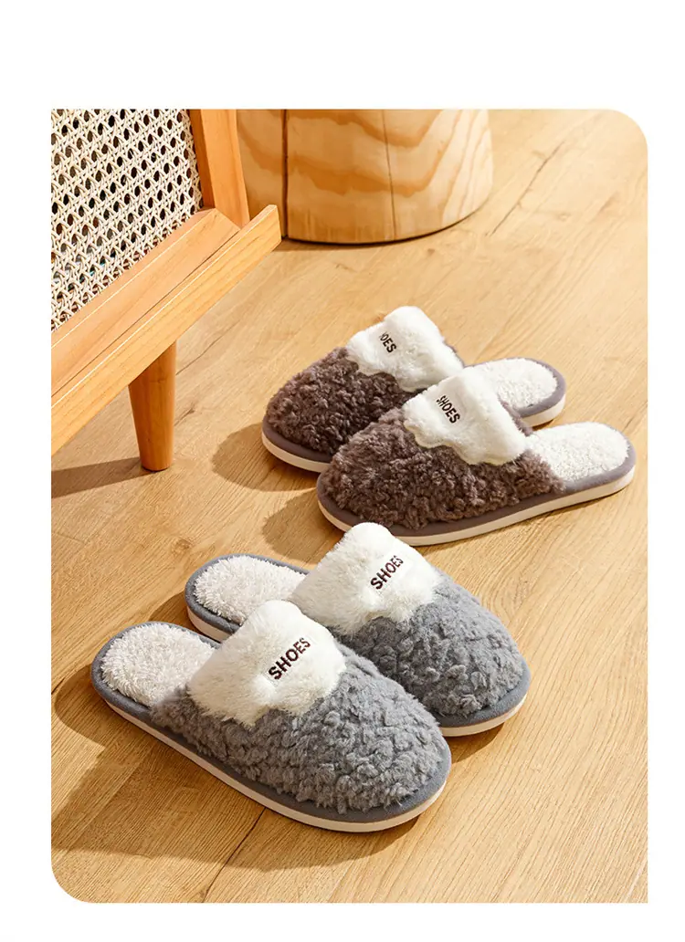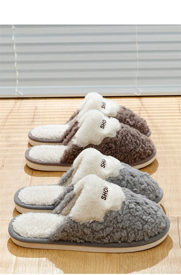 Trapeador de Piso 2025 Pantuflas de Algodón Felpa Suave para Hombre y Pareja Más Terciopelo Cálidas Antideslizantes Color Sólido Hogar Exterior Pantuflas de Algodón de Alta Gama