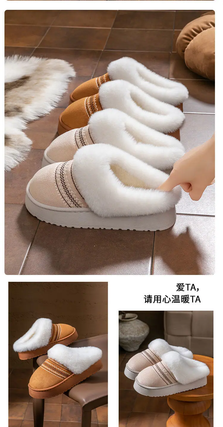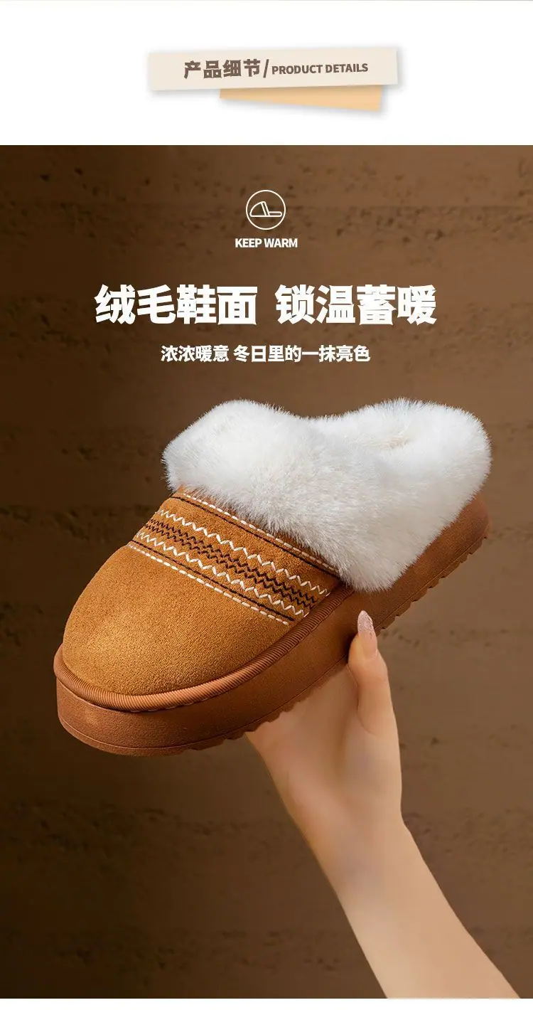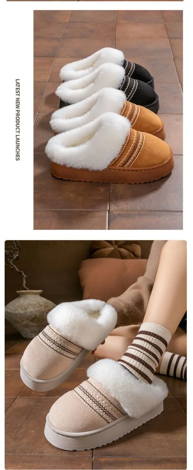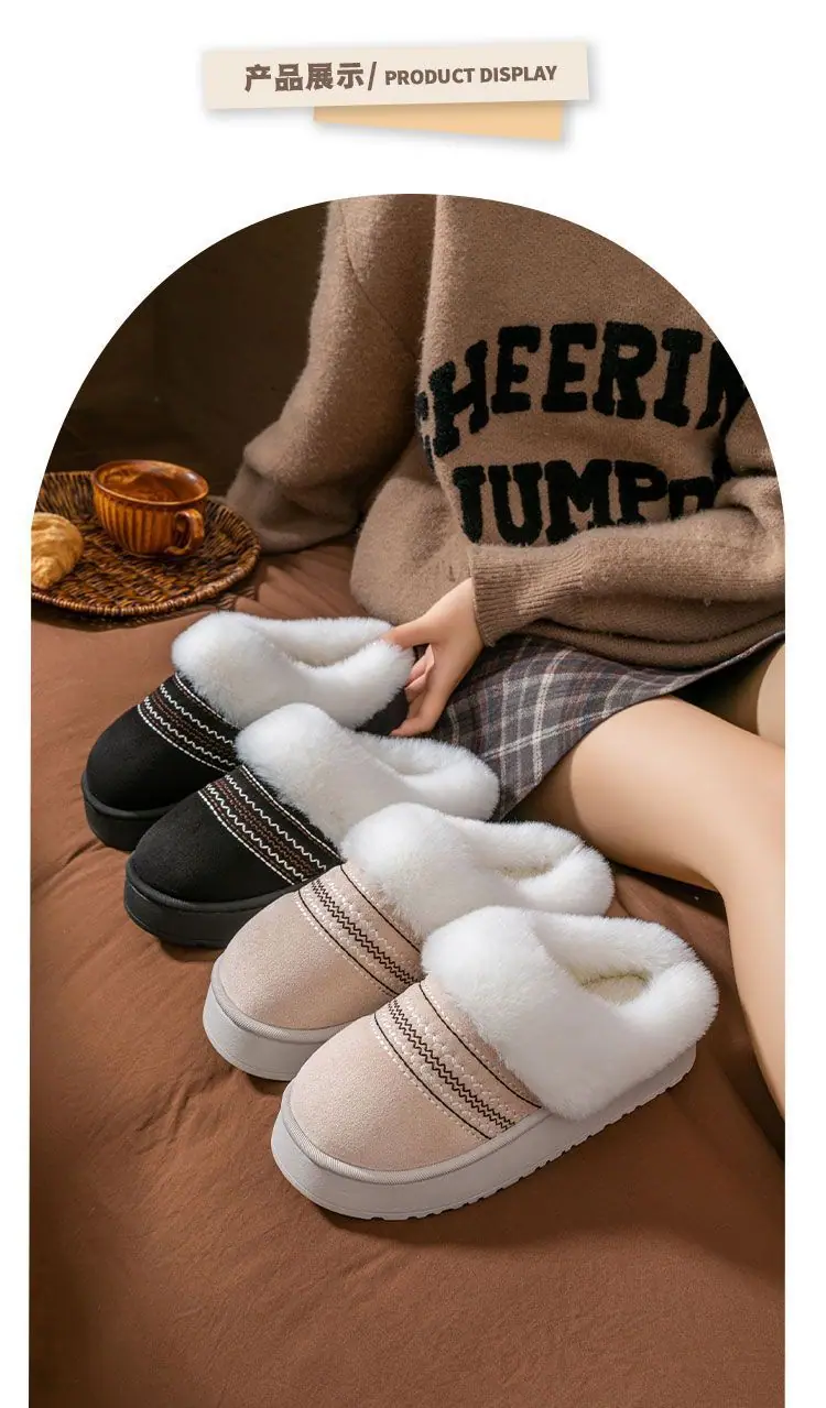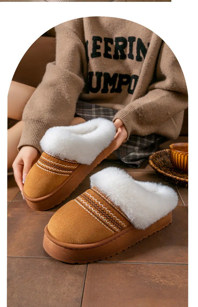 Zapatos de Casa Cálidos y Difusos Antideslizantes para Interior Zapatillas de Algodón para Casa a la Moda Zapatillas de Invierno para Mujer 2025 Nuevo