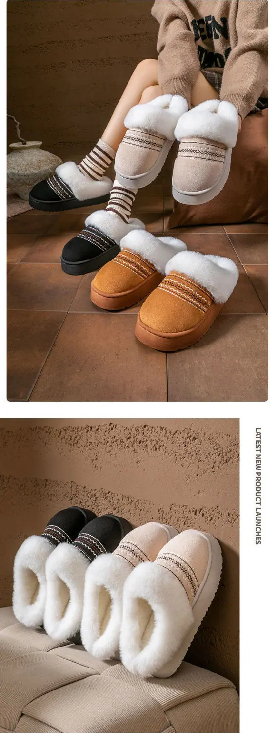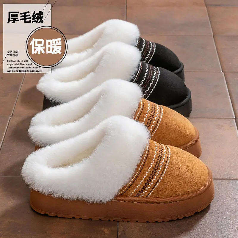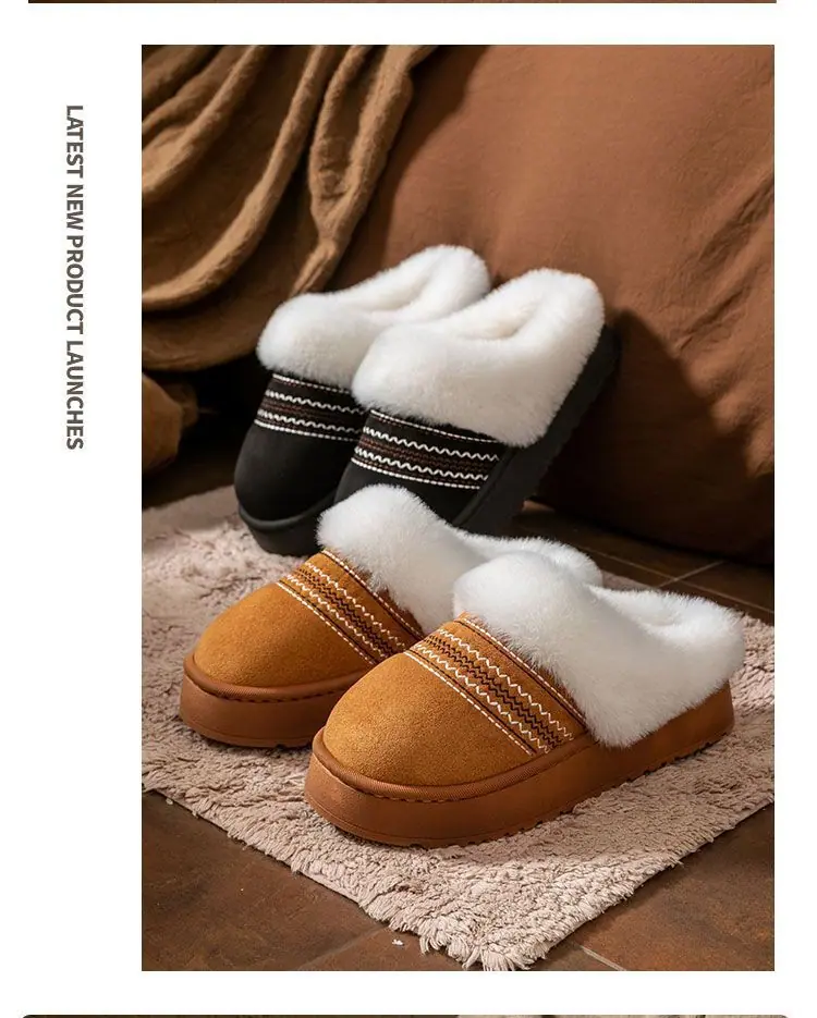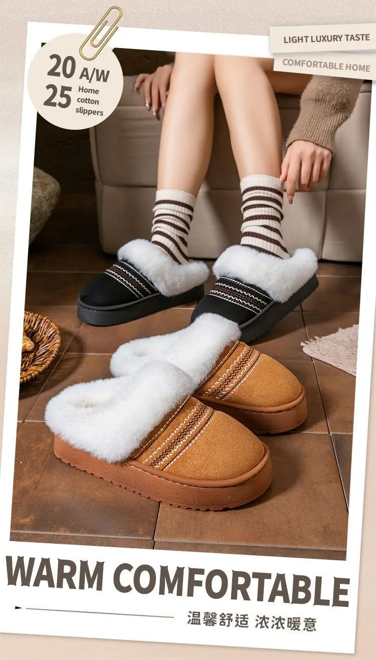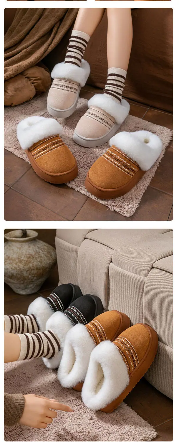 Zapatos de Casa Cálidos y Difusos Antideslizantes para Interior Zapatillas de Algodón para Casa a la Moda Zapatillas de Invierno para Mujer 2025 Nuevo