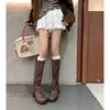 2025 Nuevas Botas de Cuero Genuino hasta la Rodilla con Punta Redonda y Tacón Grueso con Hebilla de Cinturón de Media Caña y por Encima de la Rodilla Apiladas para Mujer