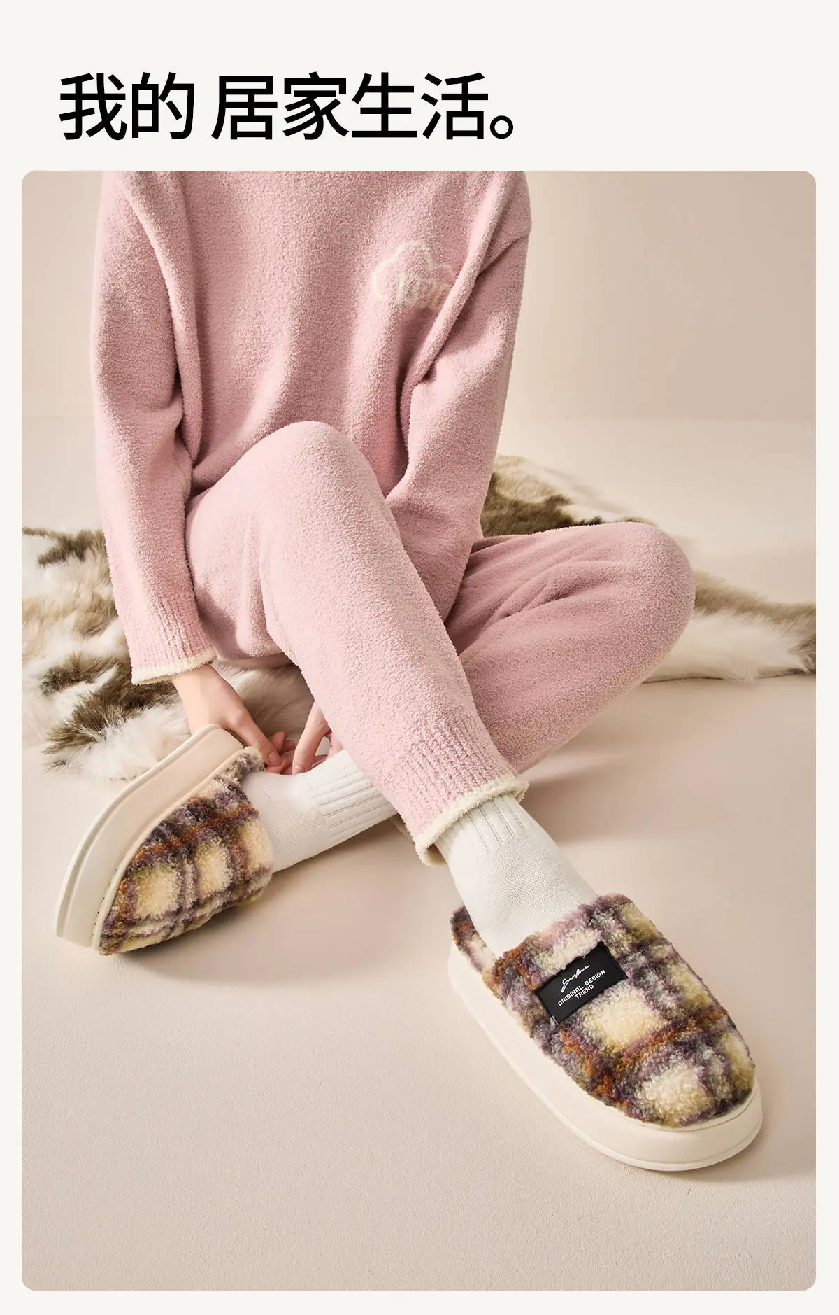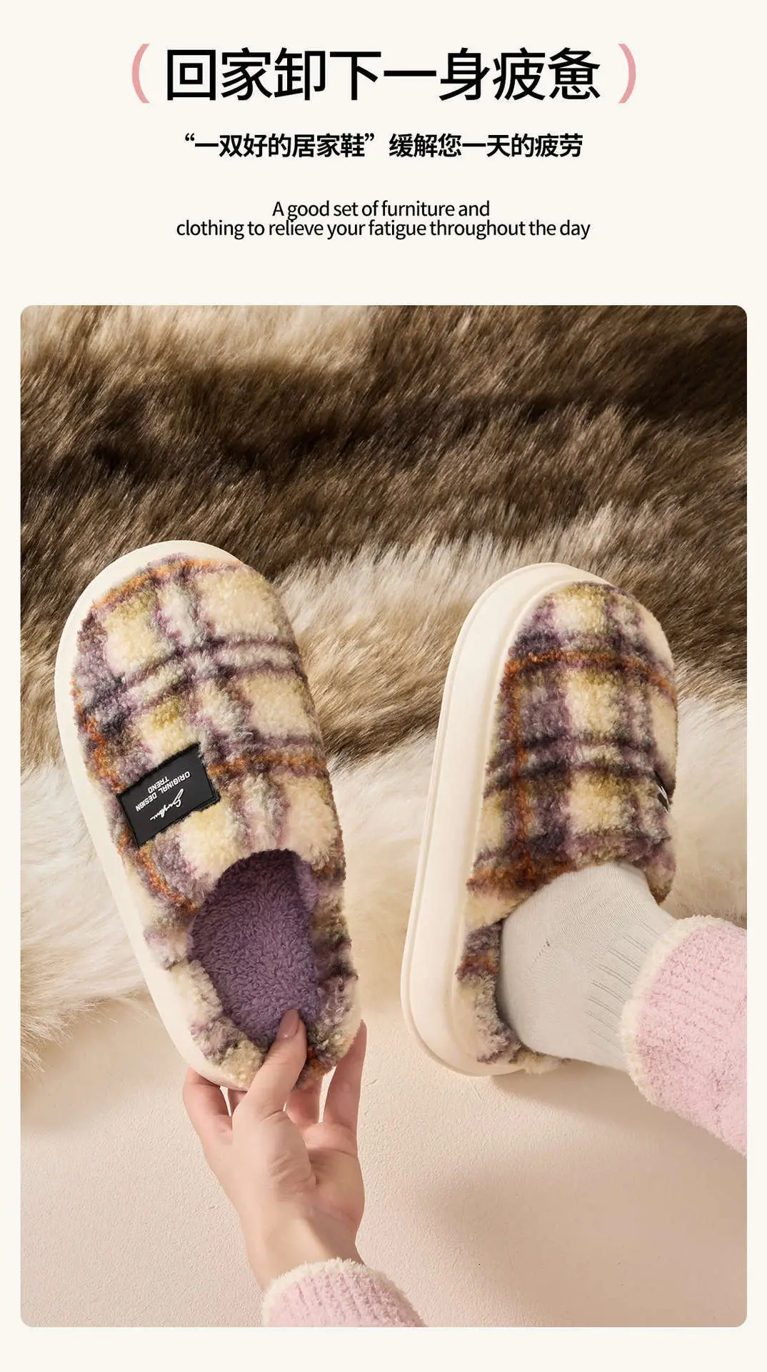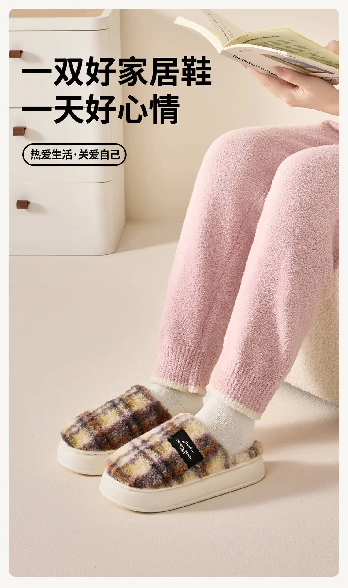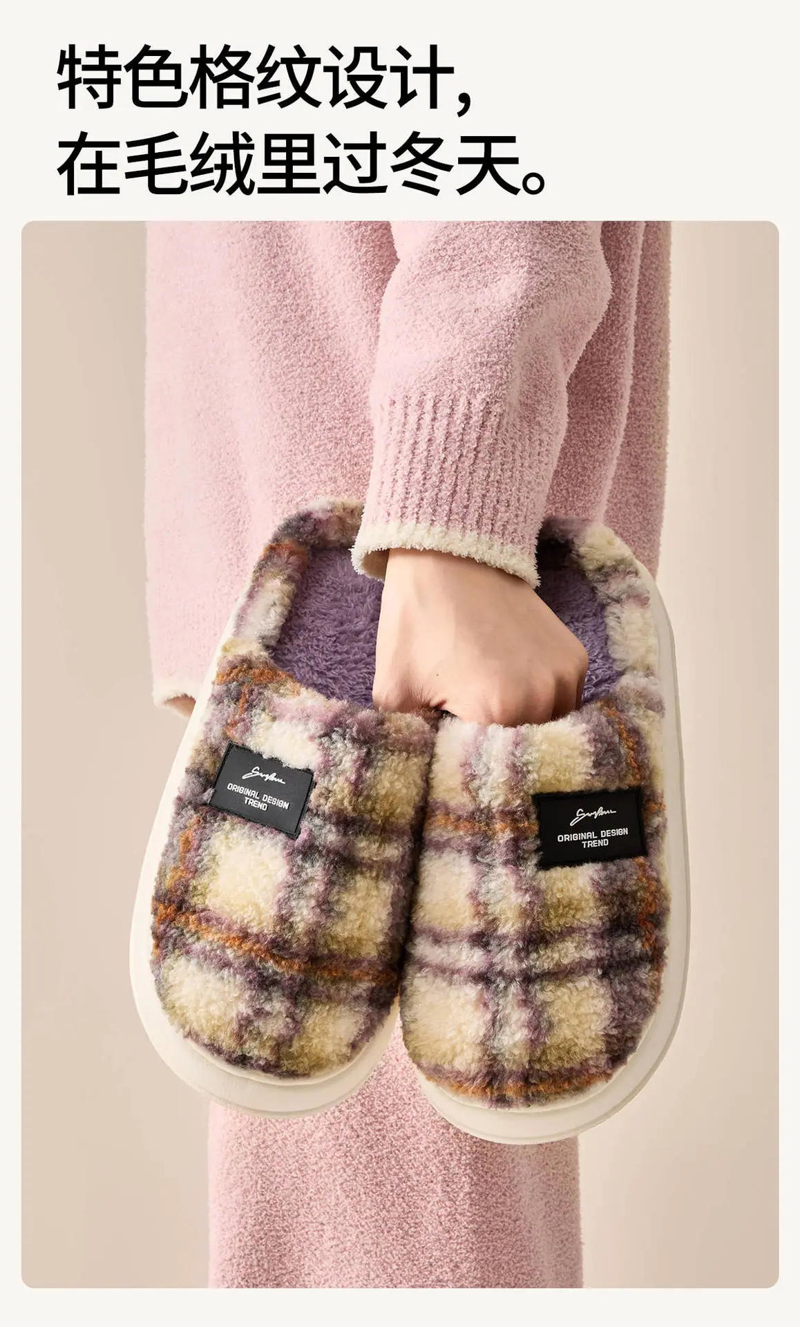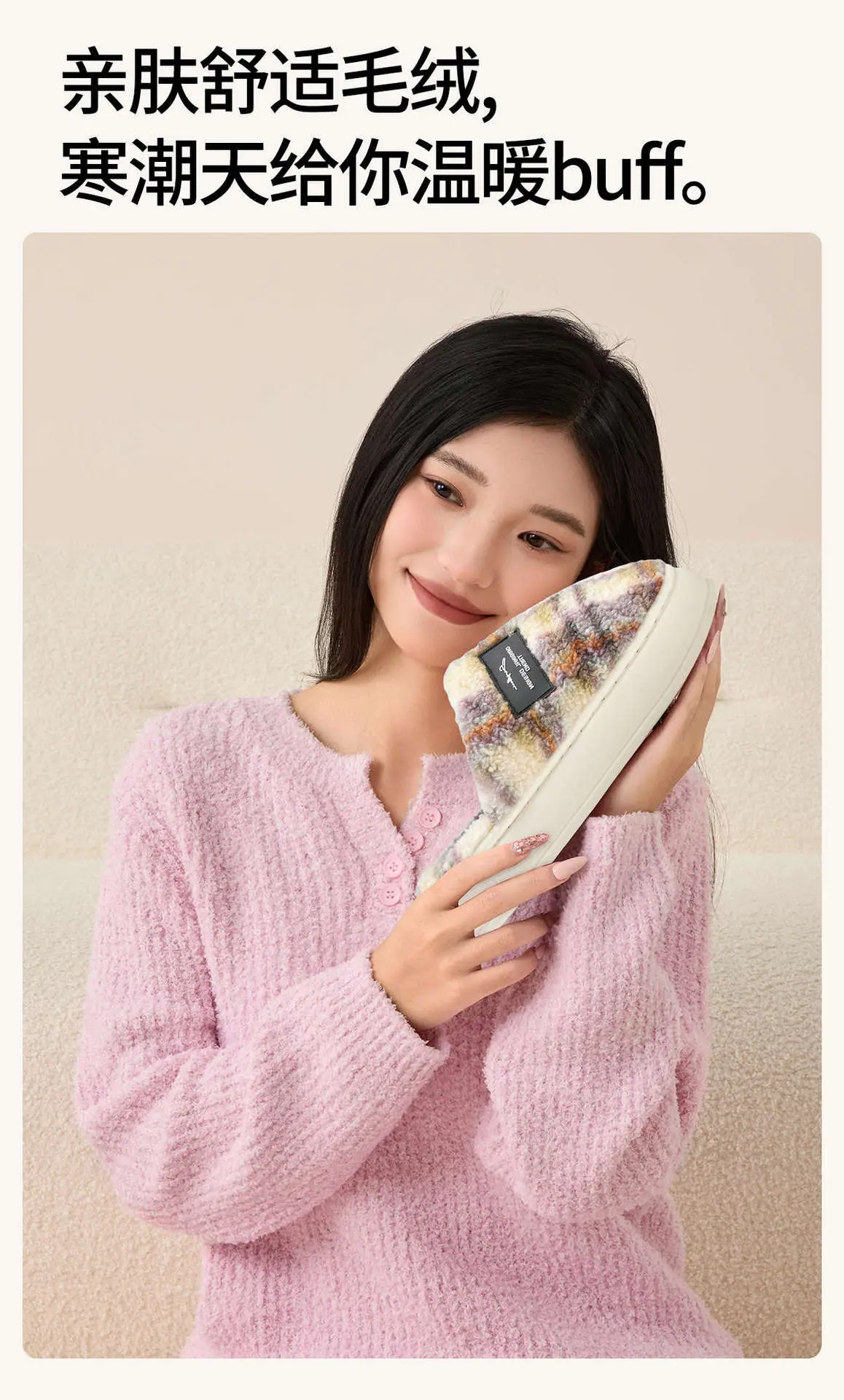 Pantuflas de Algodón para Mujer Invierno 2025 Nuevo Estilo Interior Hogar Cálidas Felpa Antideslizantes Pantuflas de Casa para Hombre Otoño e Invierno