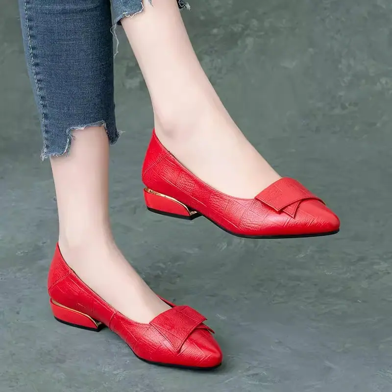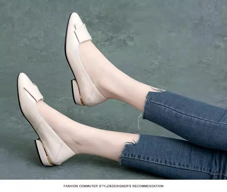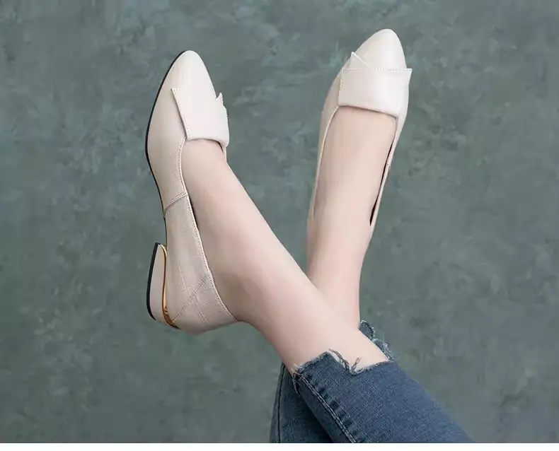 Zapatos de verano para mujer 2025 nuevos primavera y otoño corte bajo tacón grueso punta afilada zapatos de mujer piel suave suela suave versátiles zapatos de piel pequeños zapatos de trabajo