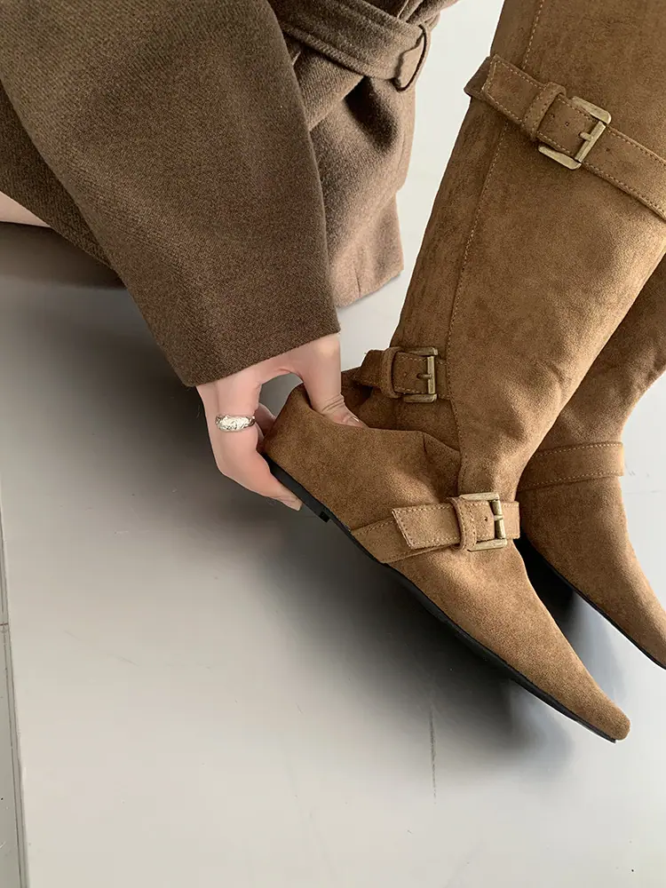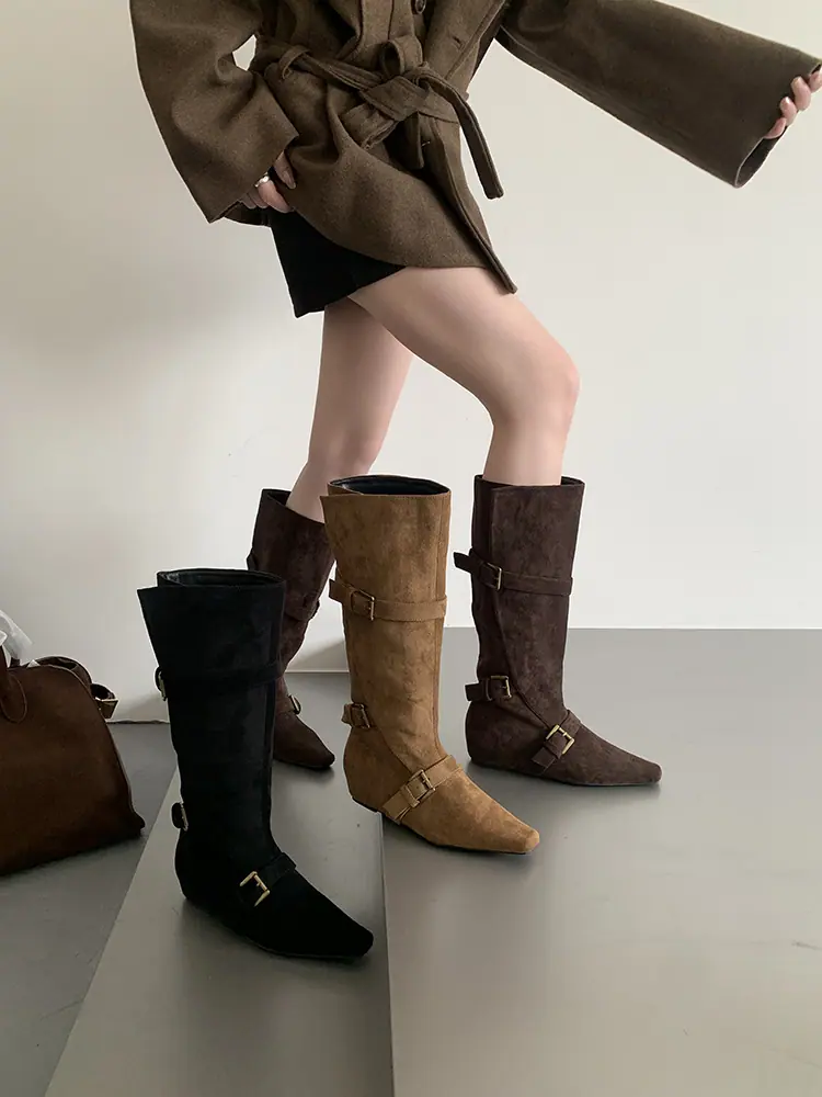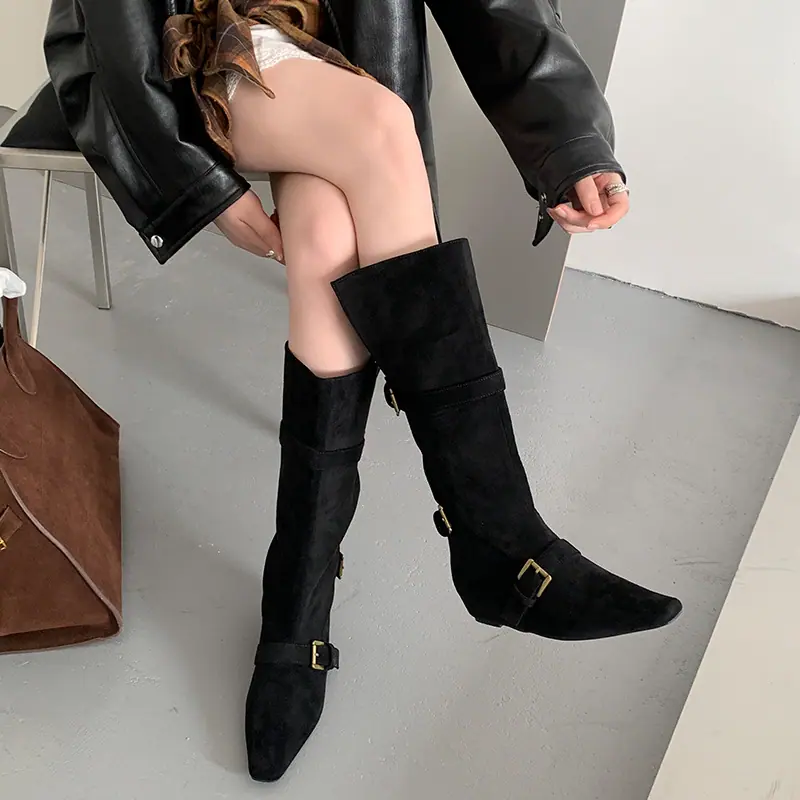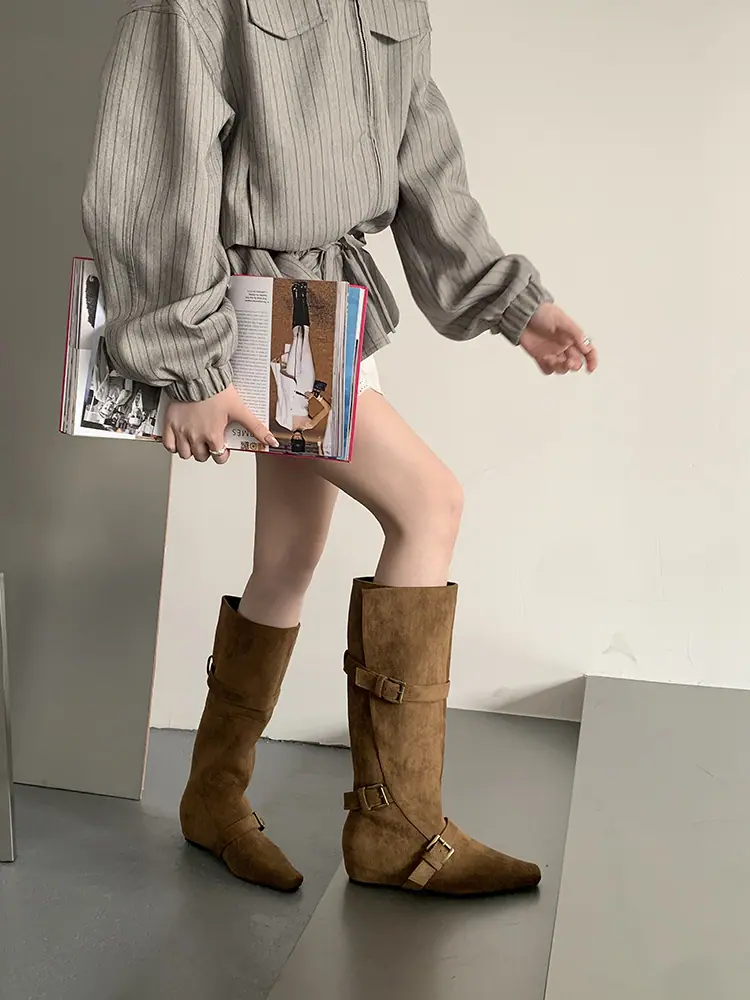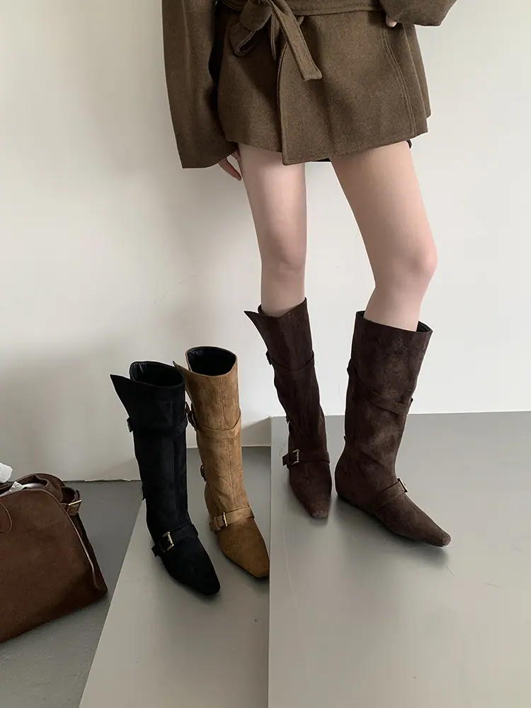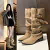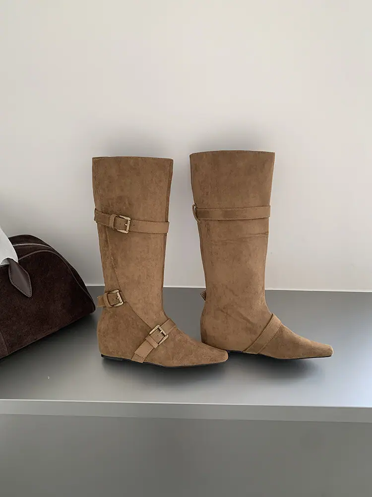 Botas Largas de Punta para Mujer 2025 Otoño/Invierno Nuevas Botas de Mujer Botas Planas Botas hasta la Rodilla Aumento de Altura Interno Botas Western Botas Ajustadas