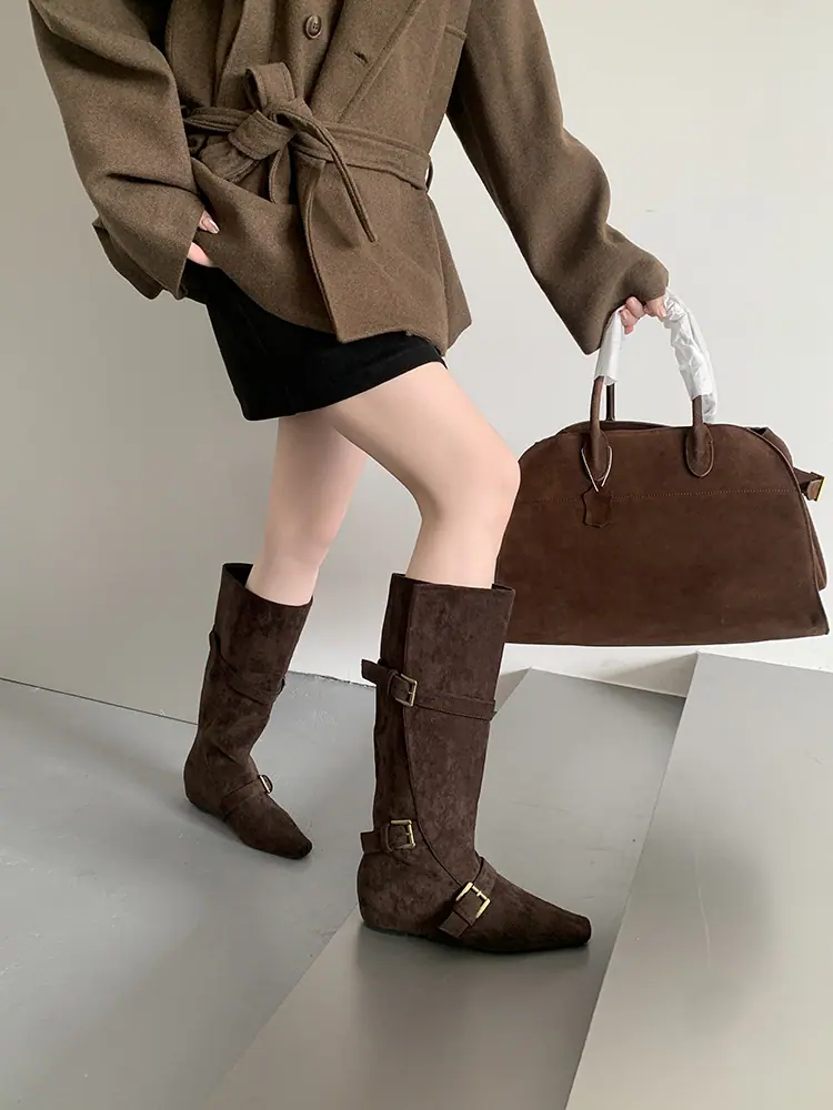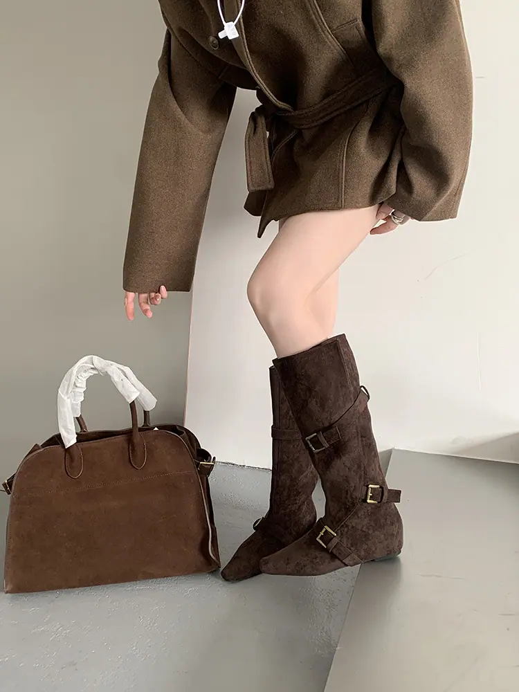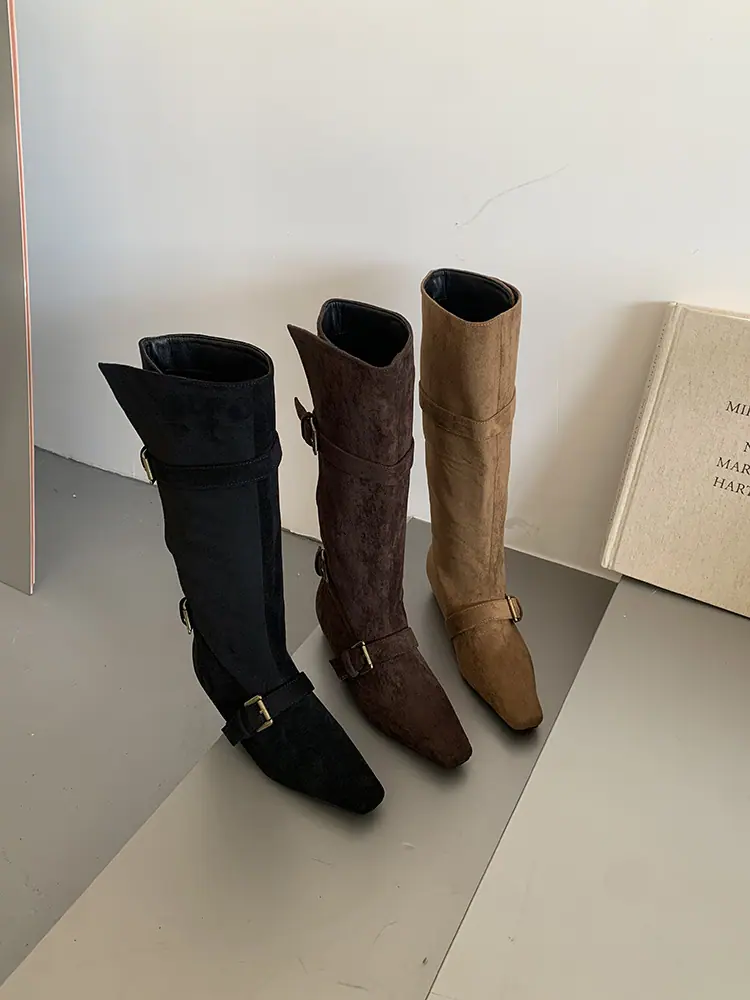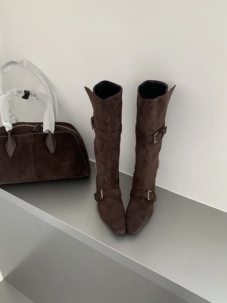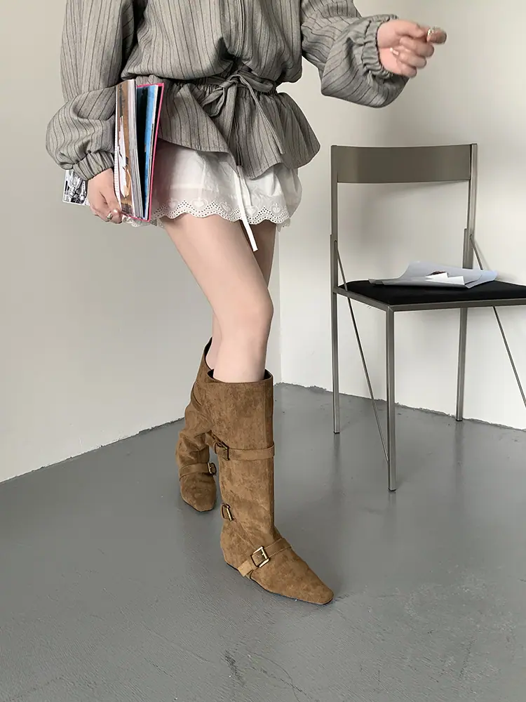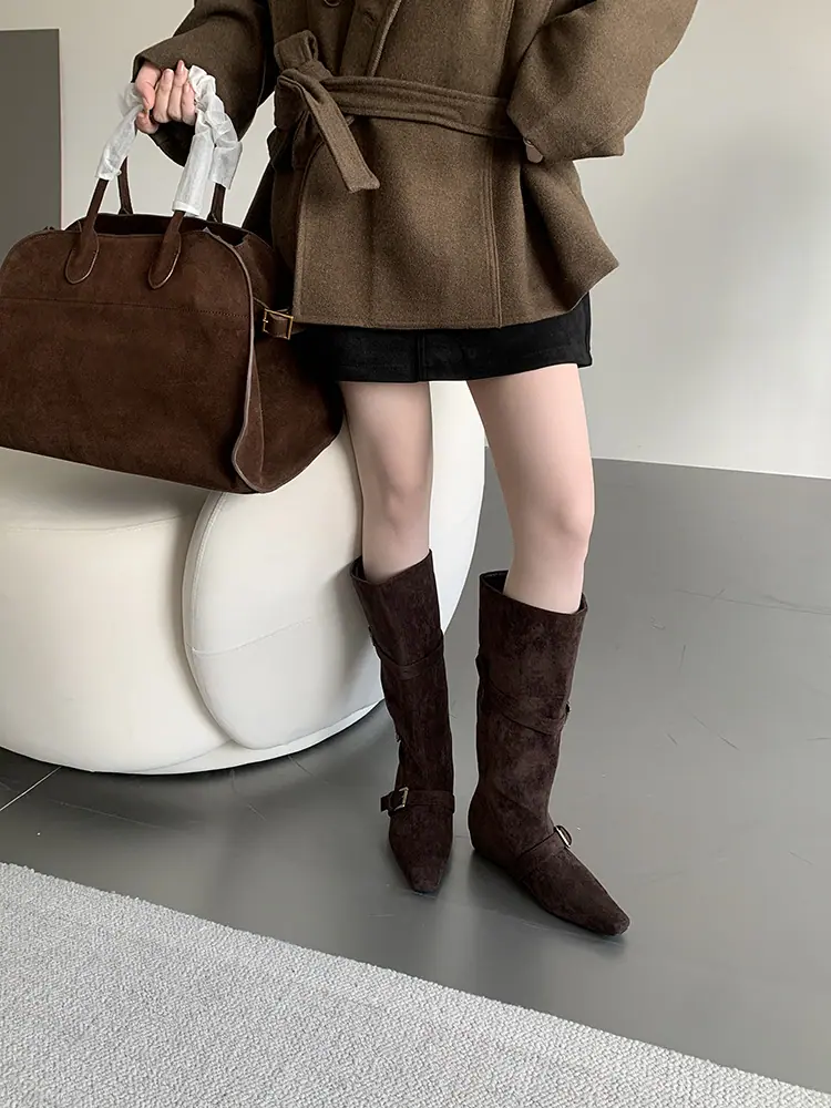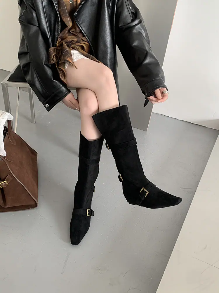 Botas Largas de Punta para Mujer 2025 Otoño/Invierno Nuevas Botas de Mujer Botas Planas Botas hasta la Rodilla Aumento de Altura Interno Botas Western Botas Ajustadas