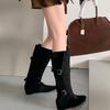 Botas Puntiagudas para Mujer 2025 Otoño e Invierno Nuevas Botas para Mujer Botas Planas Botas Largas Aumento Interno de Altura Botas Vaqueras Botas Ajustadas
