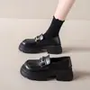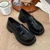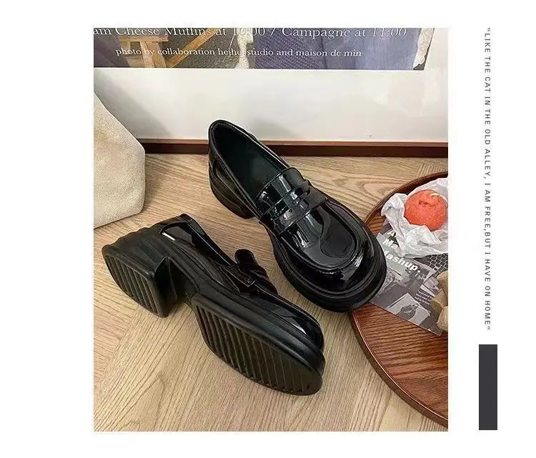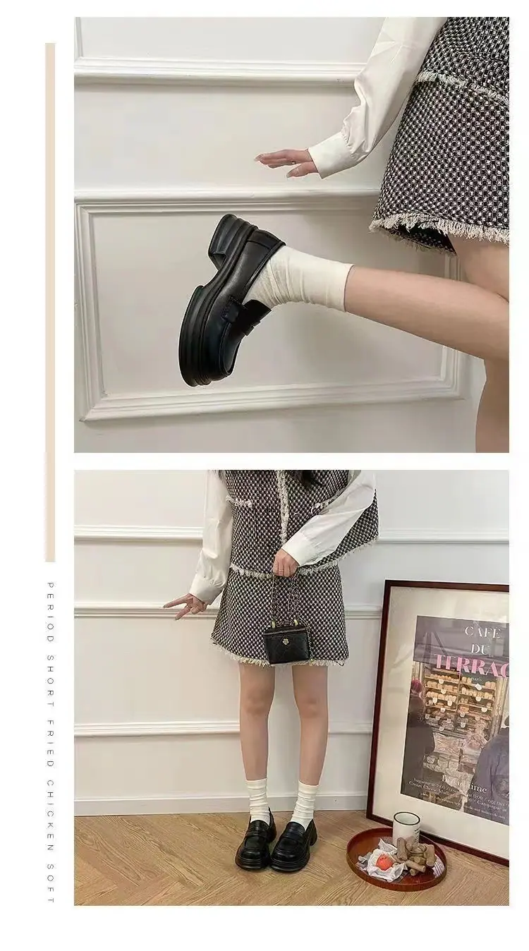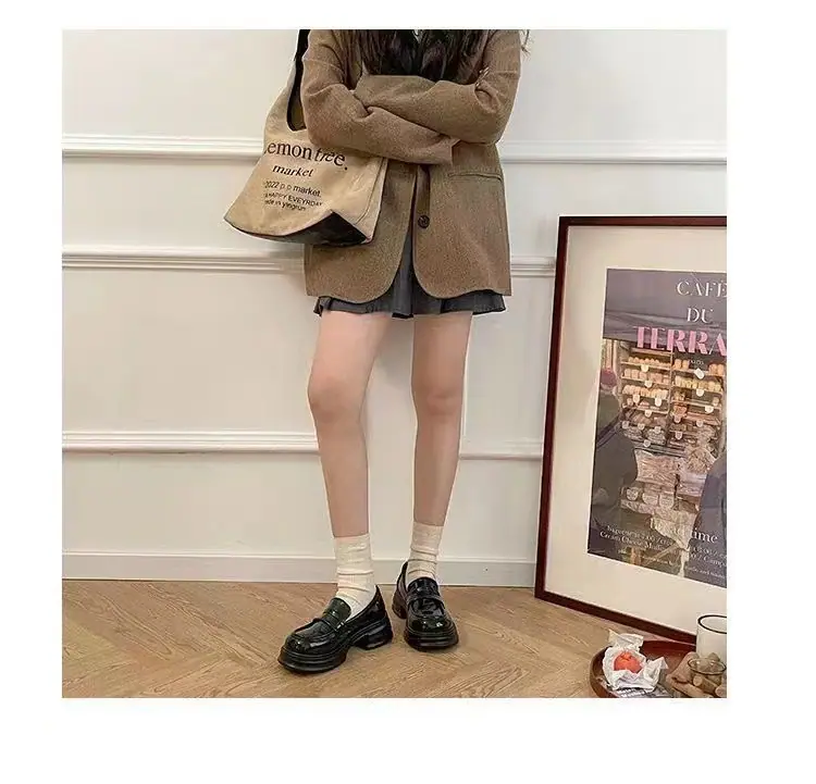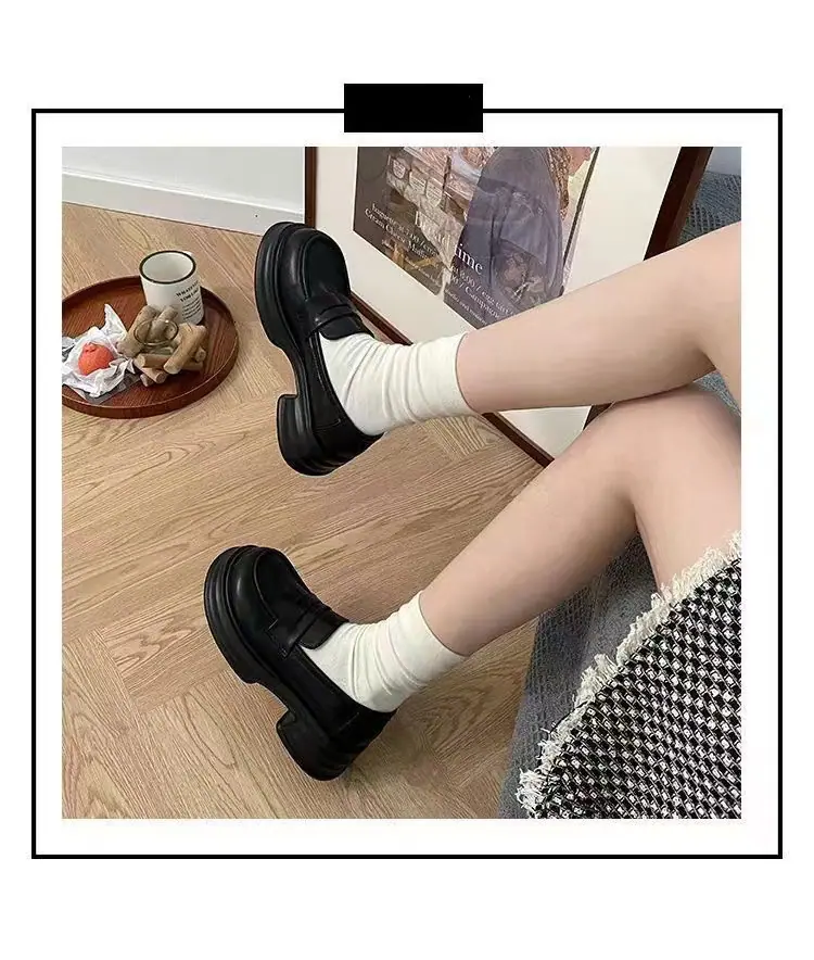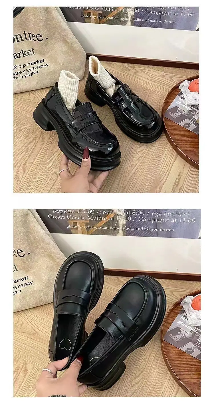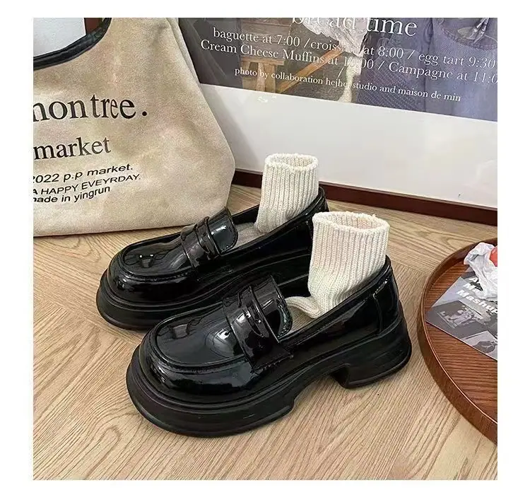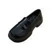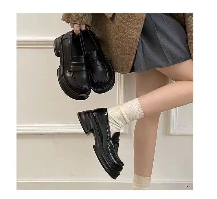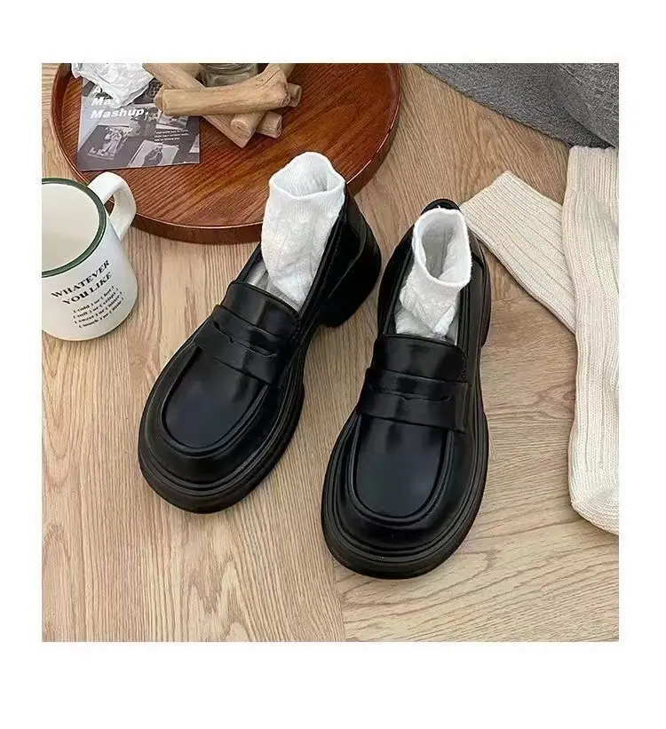 Zapatos pequeños de cuero estilo británico sin cordones mujer 2025 primavera y otoño nuevos versátiles retro zapatos individuales mocasines negros de suela gruesa