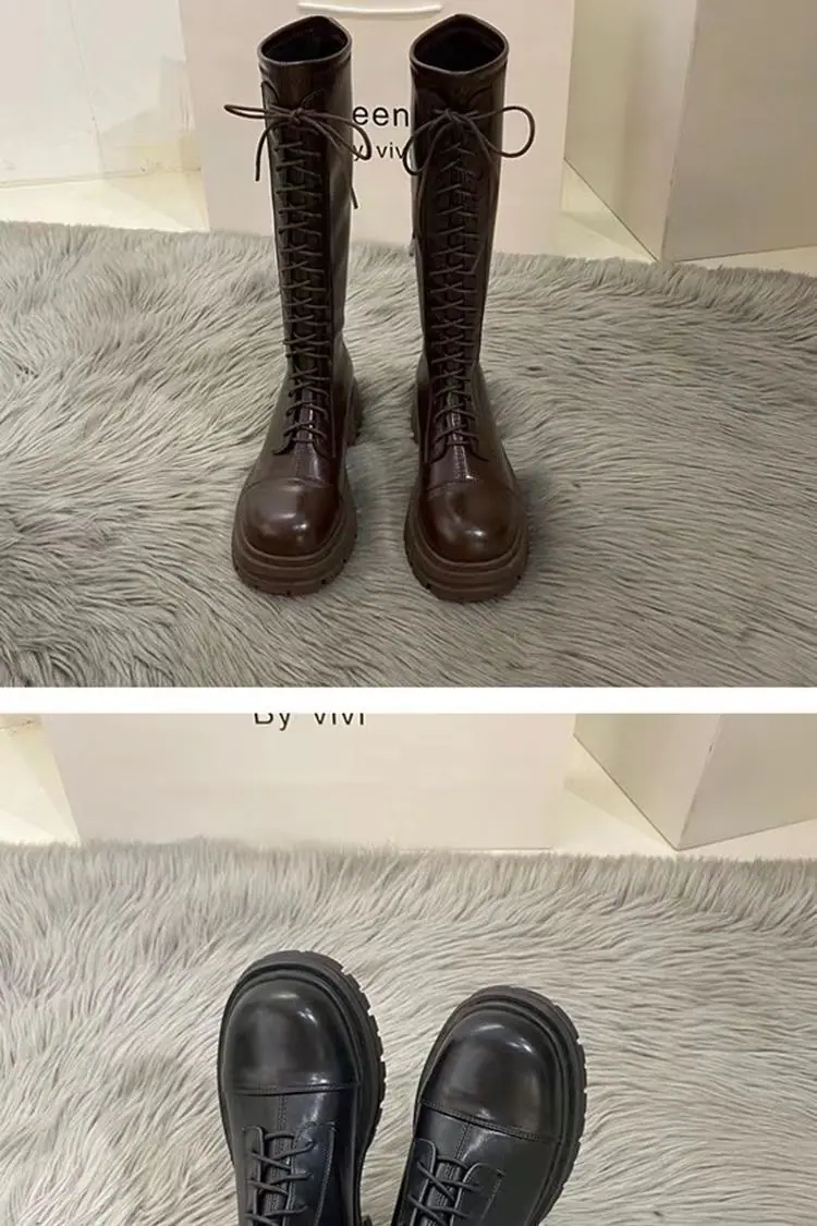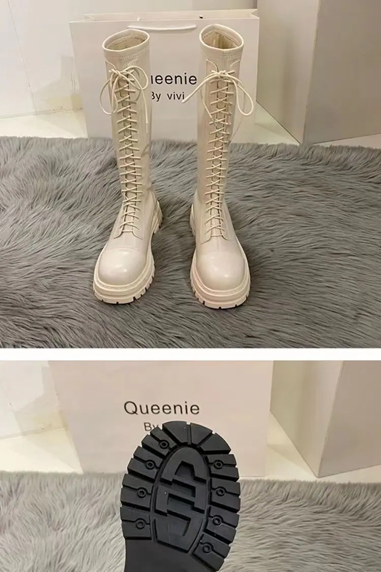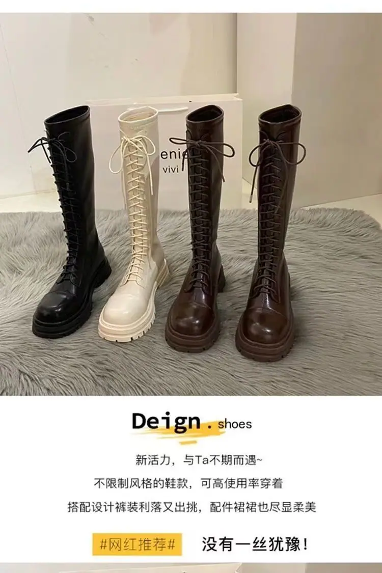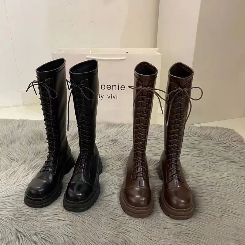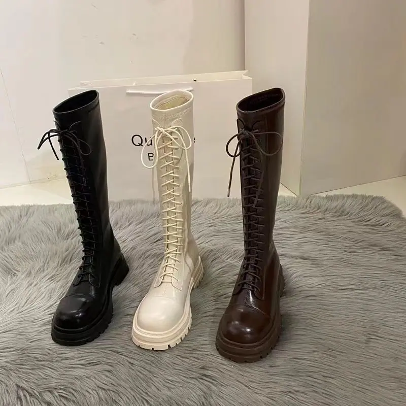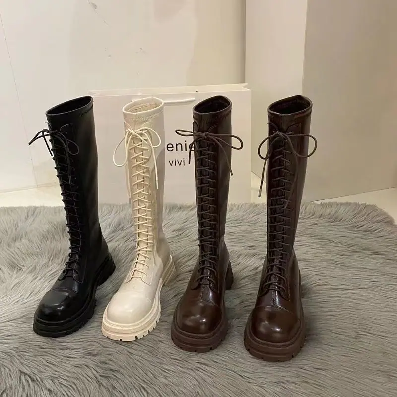 Botas largas blancas de suela gruesa zapatos de mujer 2025 nuevo primavera otoño invierno persona pequeña marrón verano hasta la rodilla botas de caballero
