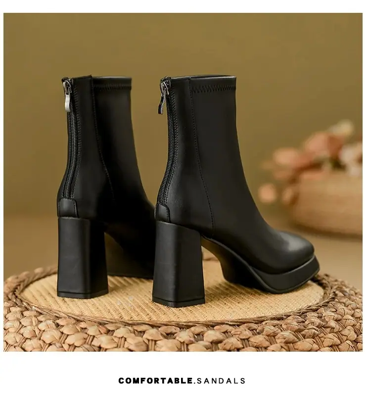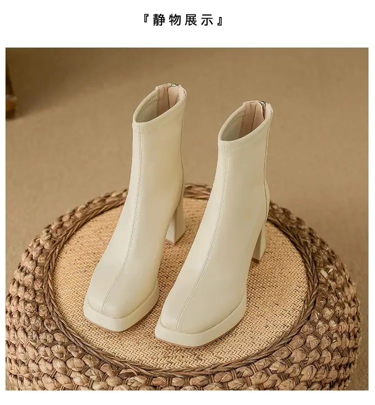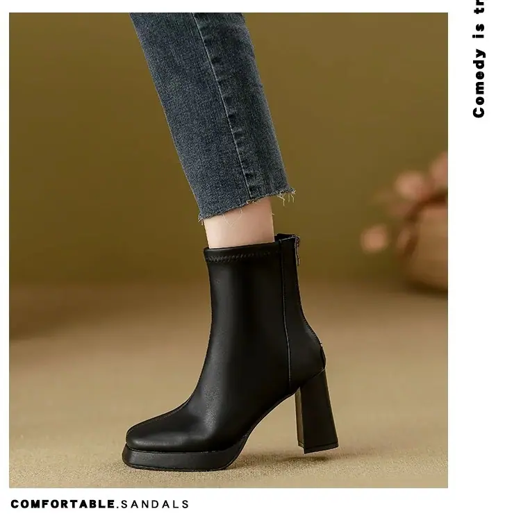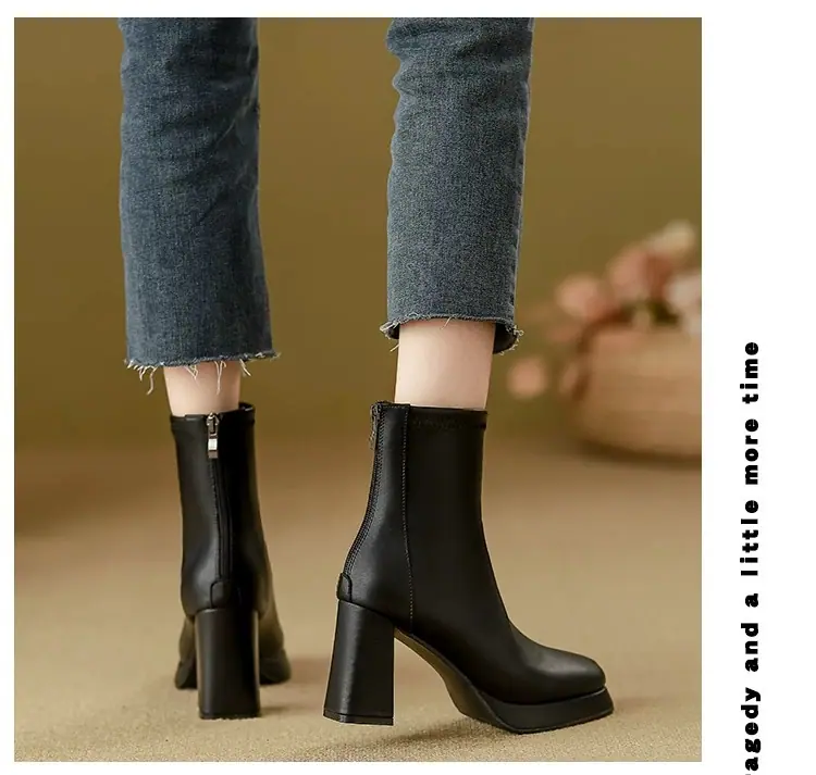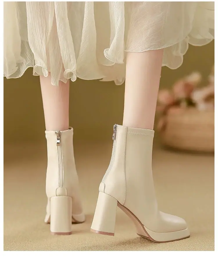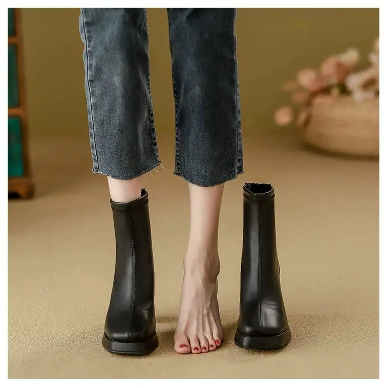 2025 nuevo otoño e invierno tacón grueso punta cuadrada tacón alto botas cortas Martin suela gruesa botas petite adelgazantes botas individuales para realzar la altura de mujer