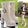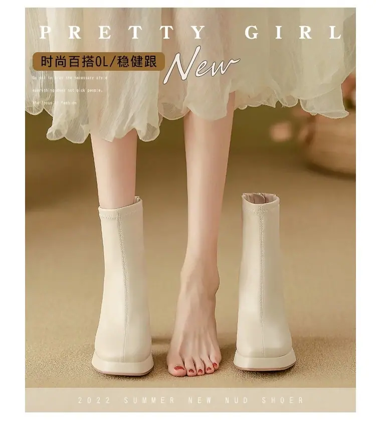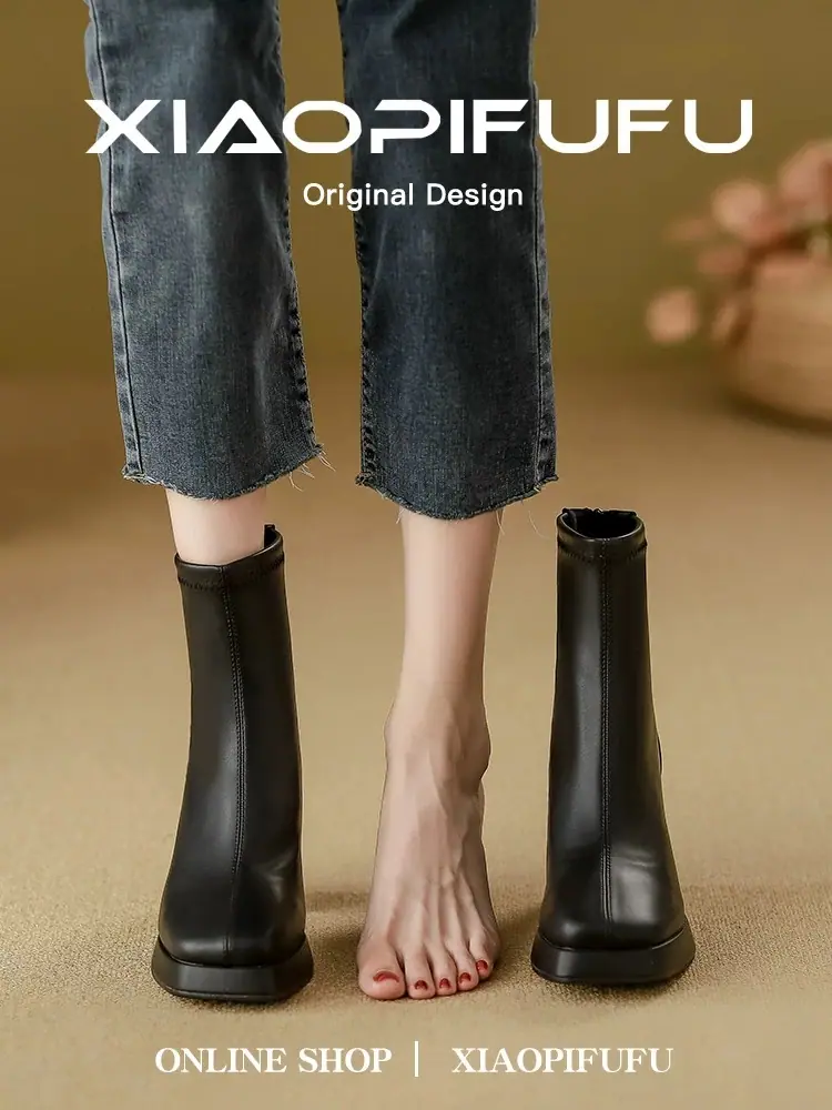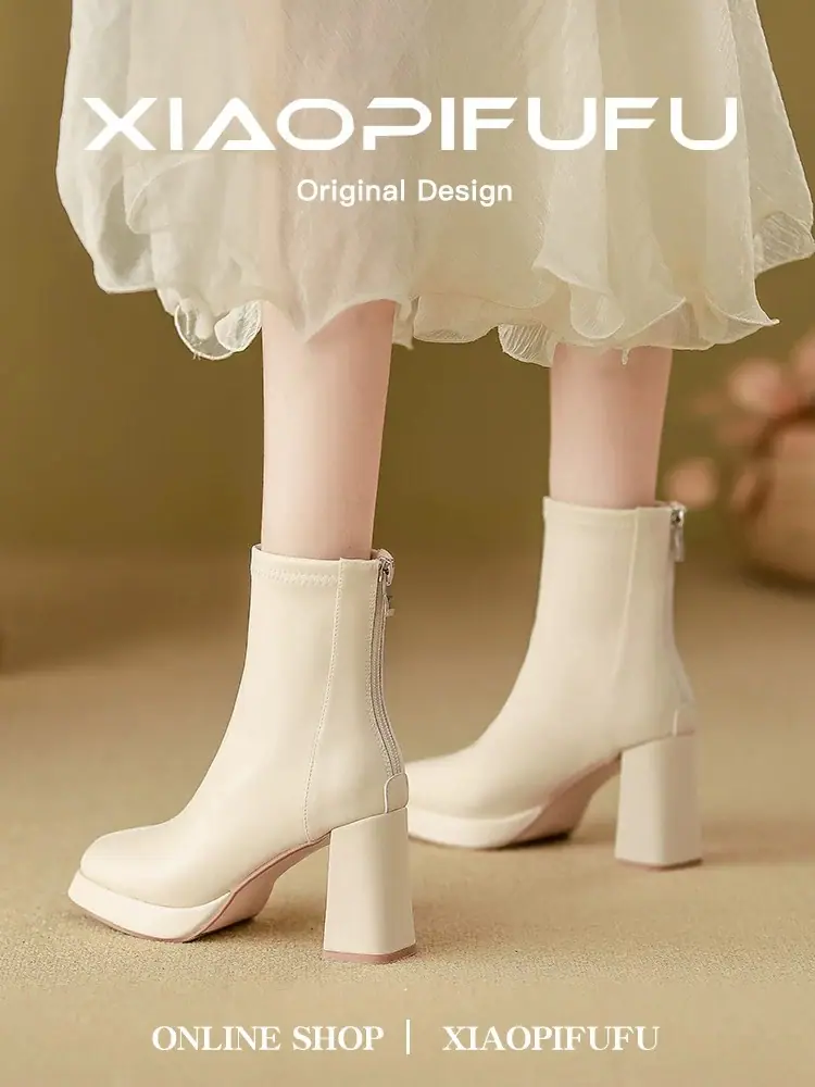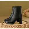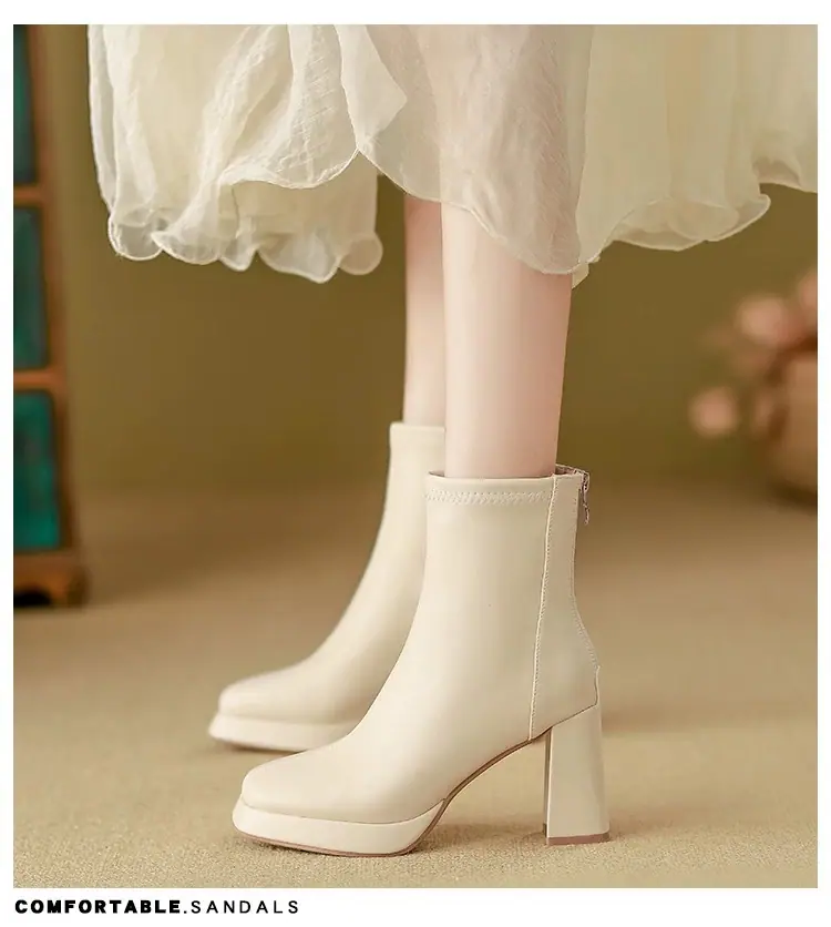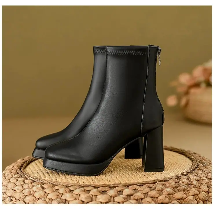 2025 nuevo otoño e invierno tacón grueso punta cuadrada tacón alto botas cortas Martin suela gruesa botas petite adelgazantes botas individuales para realzar la altura de mujer