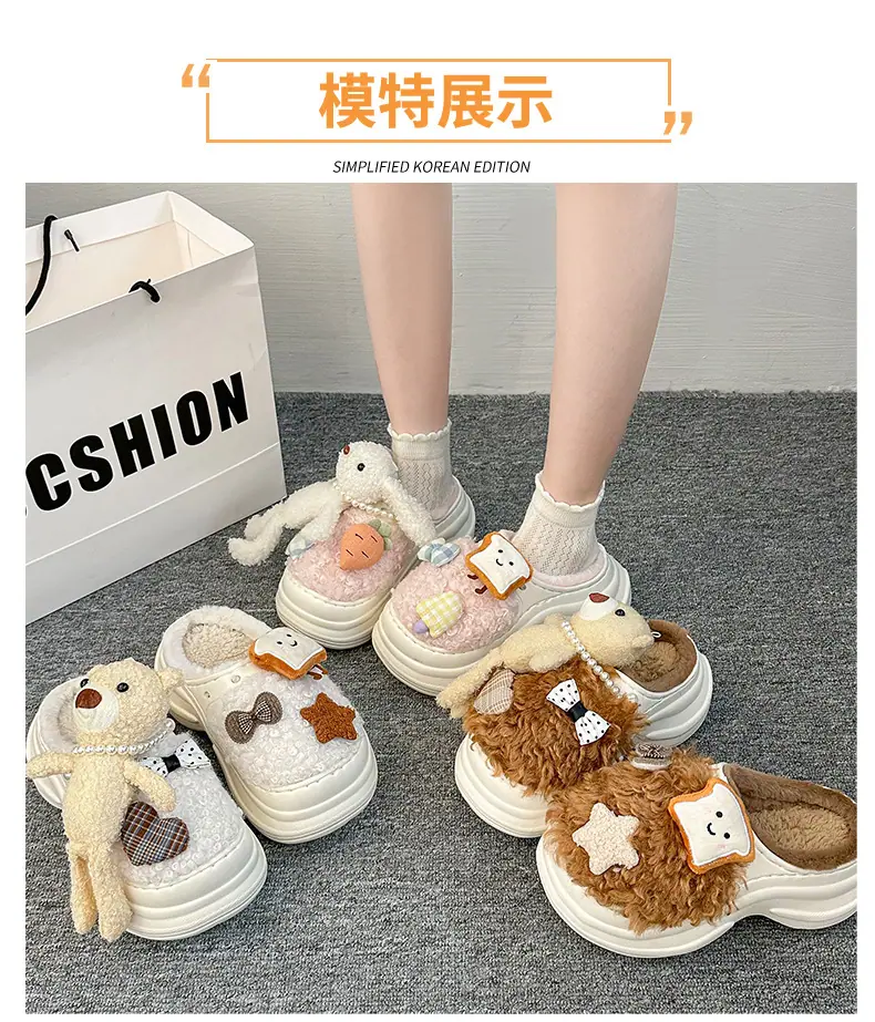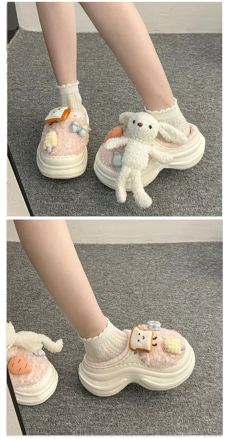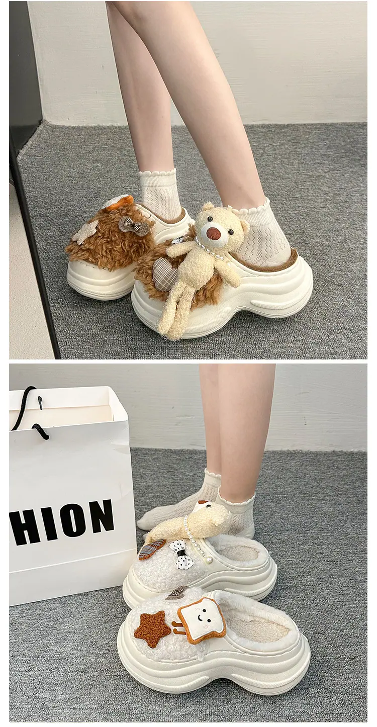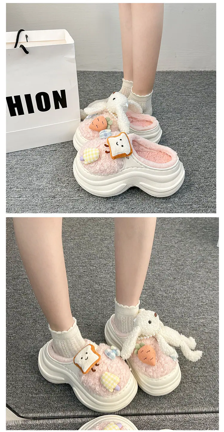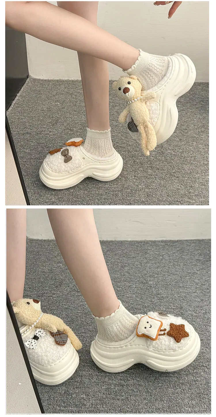Pantuflas de Algodón de Personalidad Nicho con Suela Gruesa para Aumentar la Altura para Mujer 2025 Invierno Nuevo Estilo Zapatos de Algodón Cálidos de Punta Cerrada para Dama
