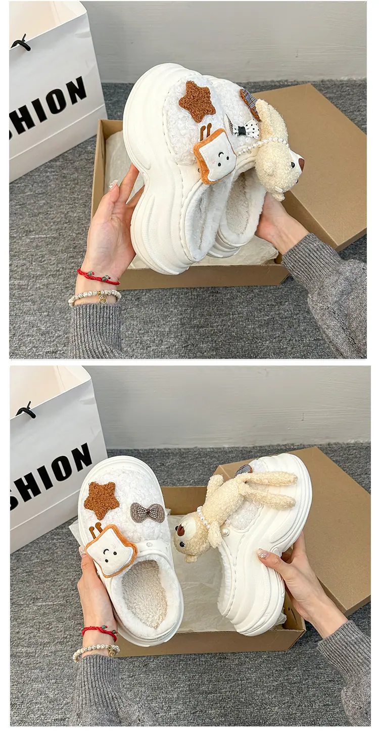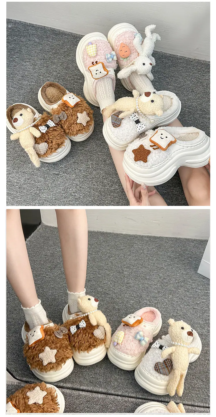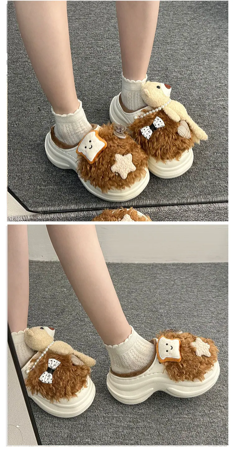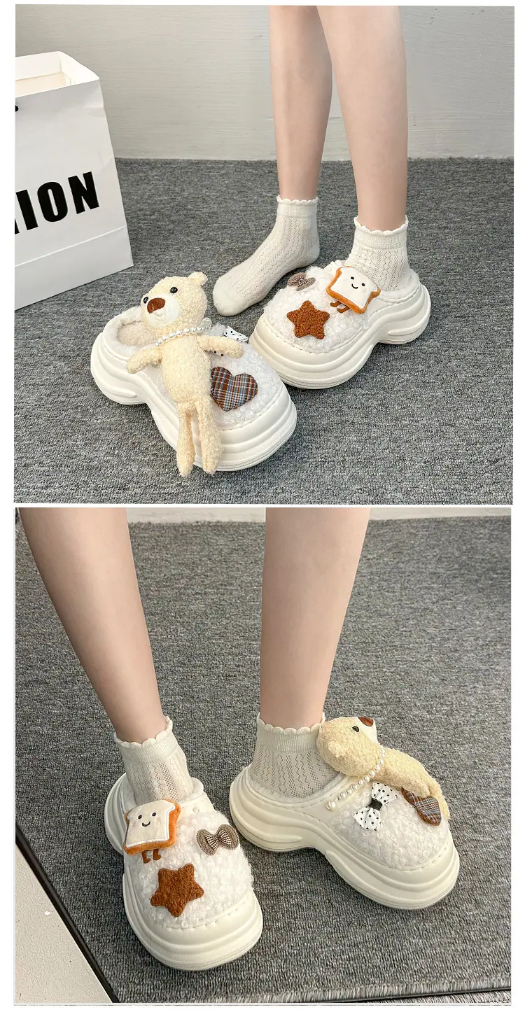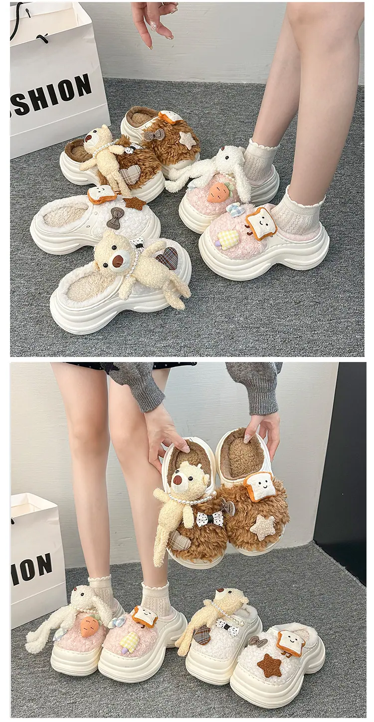 Pantuflas de Algodón de Personalidad Nicho con Suela Gruesa para Aumentar la Altura para Mujer 2025 Invierno Nuevo Estilo Zapatos de Algodón Cálidos de Punta Cerrada para Dama