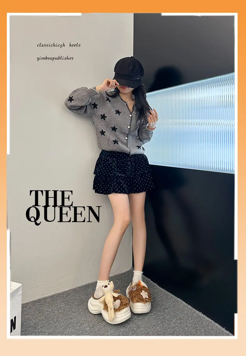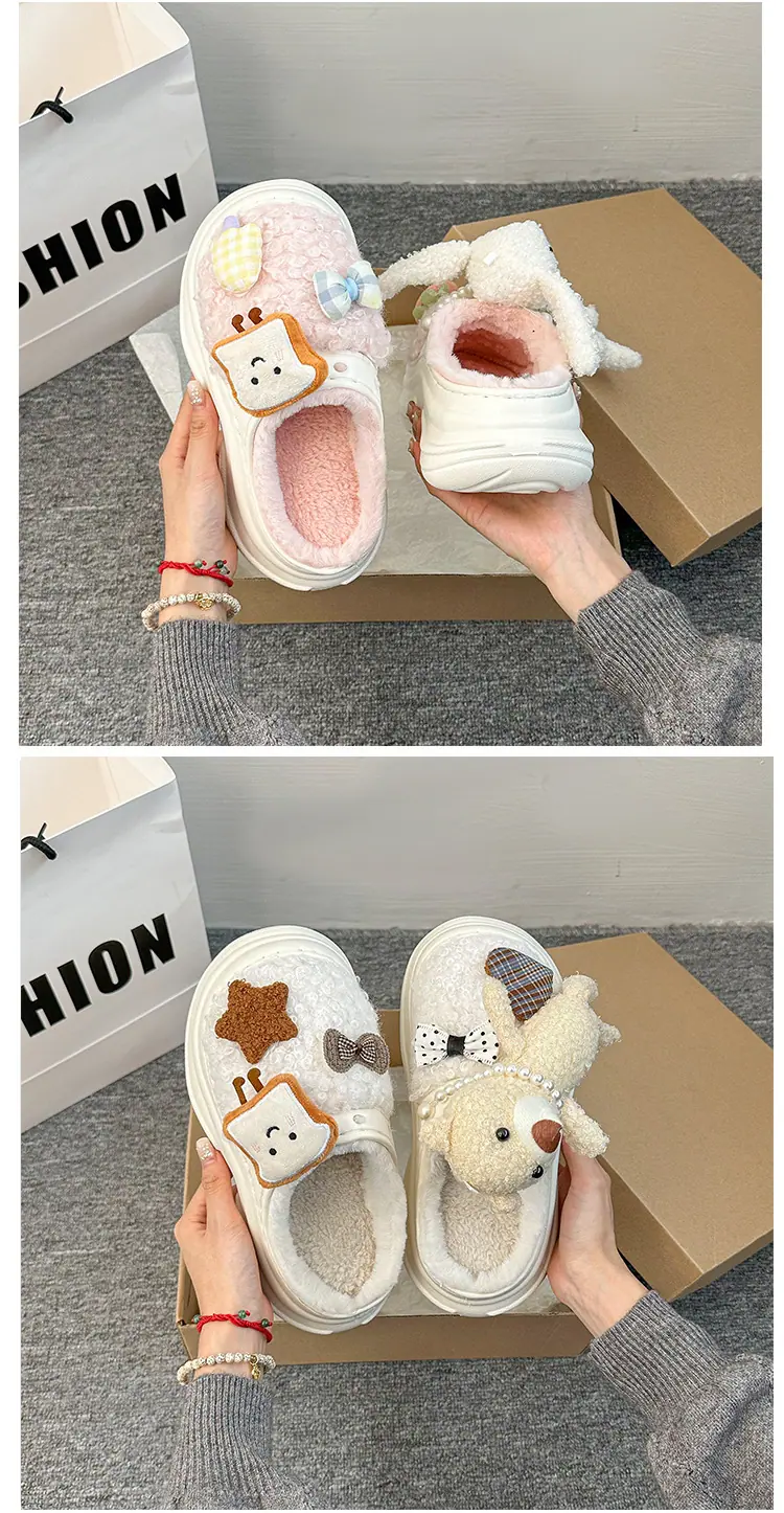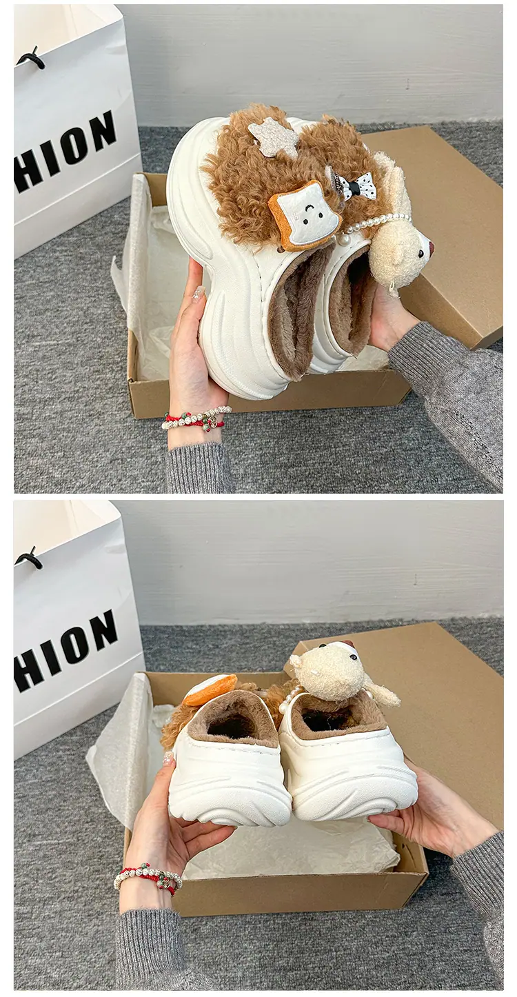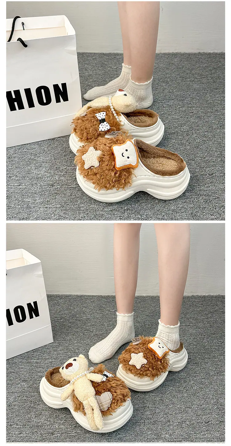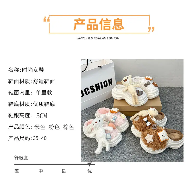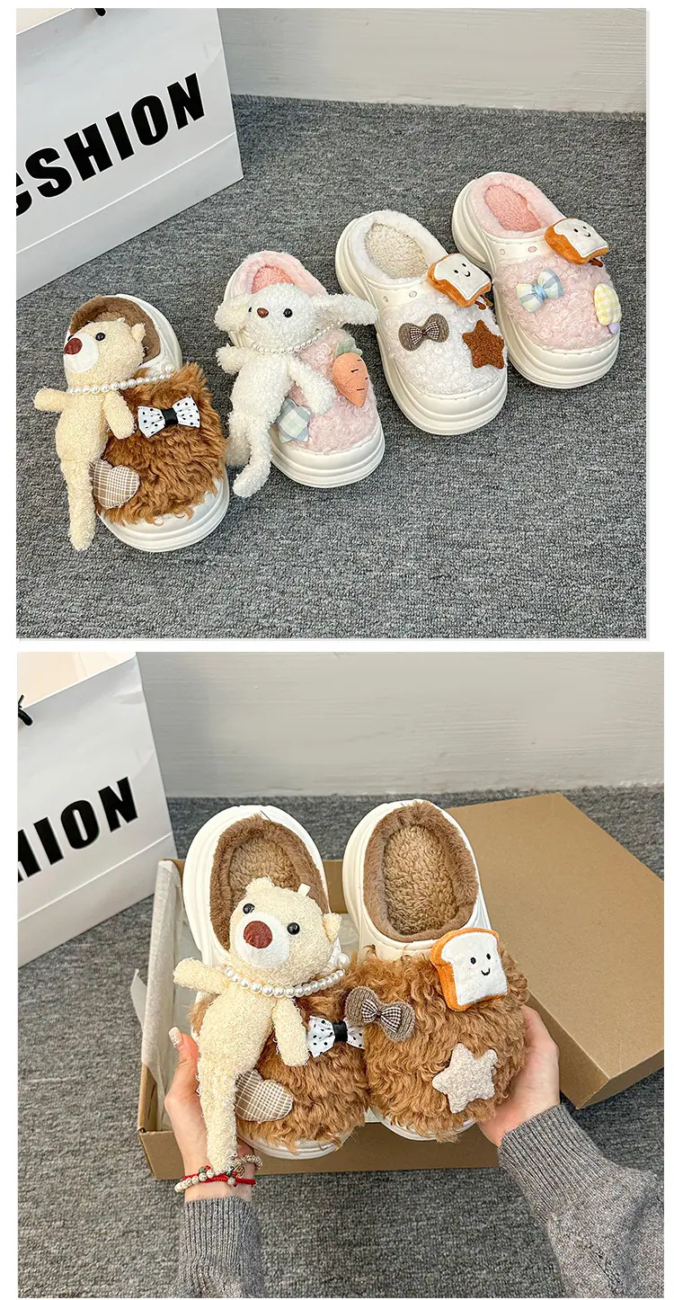 Pantuflas de Algodón de Personalidad Nicho con Suela Gruesa para Aumentar la Altura para Mujer 2025 Invierno Nuevo Estilo Zapatos de Algodón Cálidos de Punta Cerrada para Dama