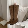 Botas largas de caballero de gamuza retro de estilo coreano con punta redonda para mujer 2025 Otoño e Invierno Nuevo estilo Botas por encima de la rodilla con botas adelgazantes en el interior