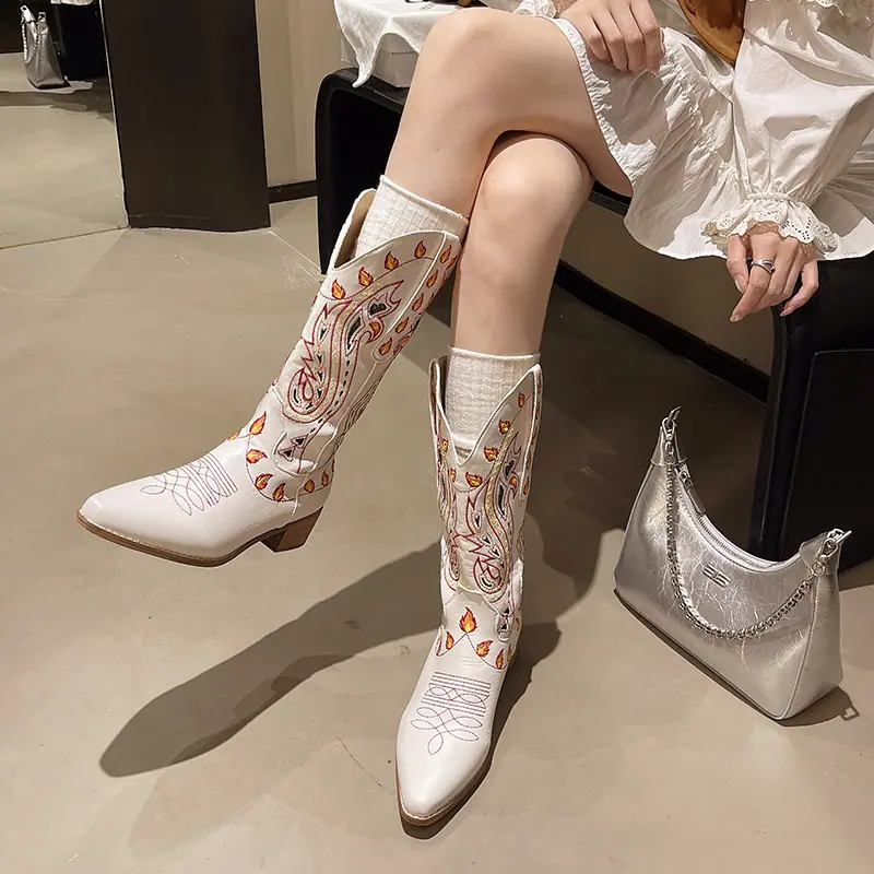 Otoño 2025 Nuevas Botas de Caballero de Caña Alta de Piel PU con Punta Afilada y Tacón Medio para Mujer, Moda Casual, Elásticas, Adelgazantes, Botas Largas