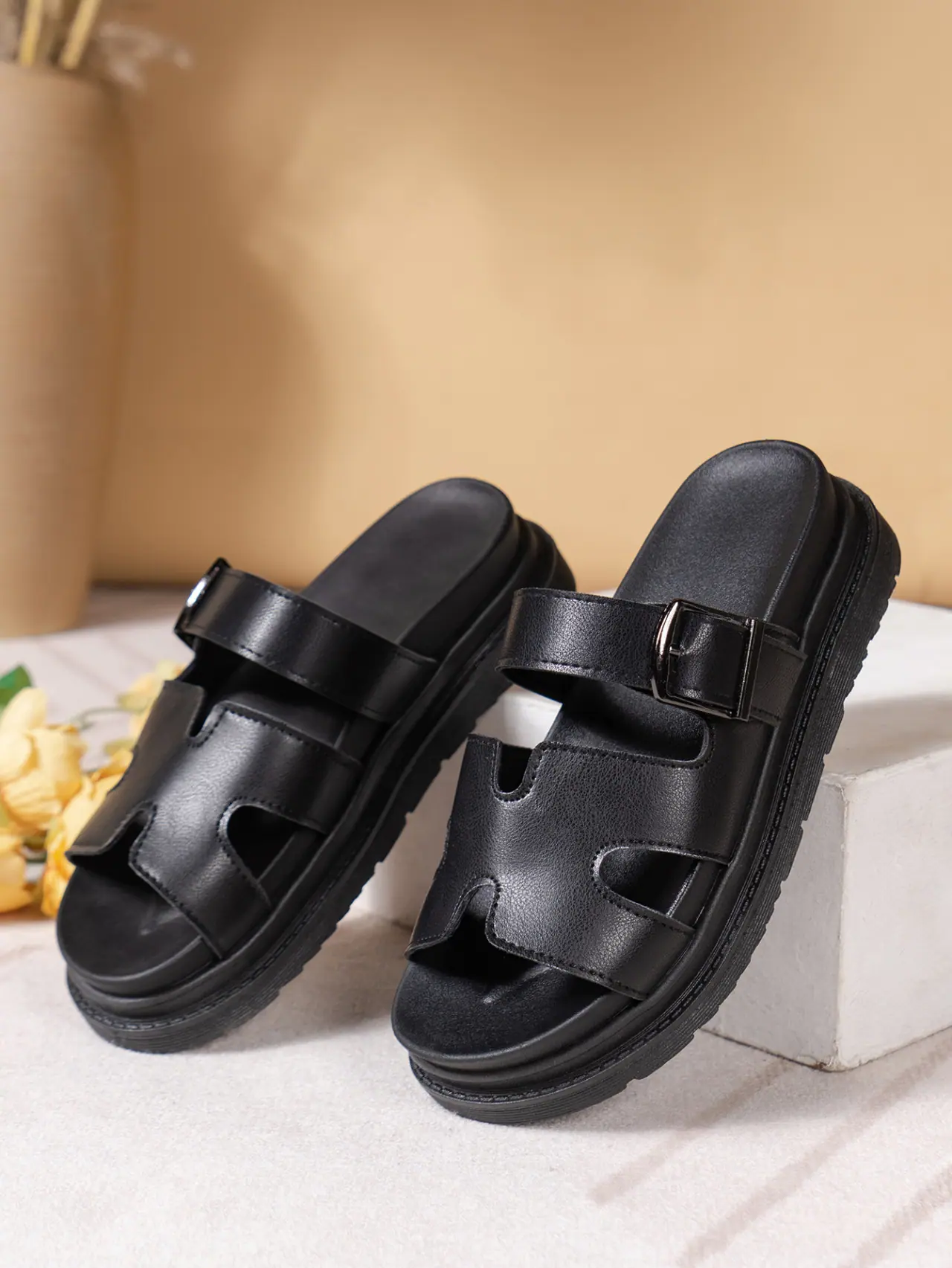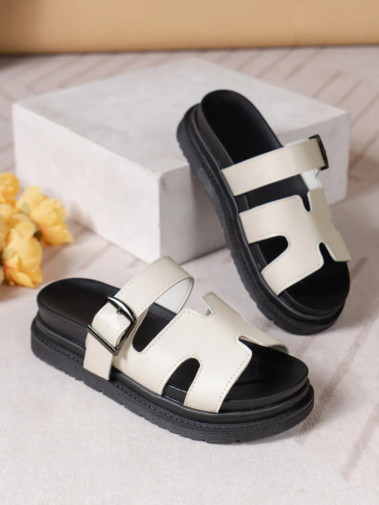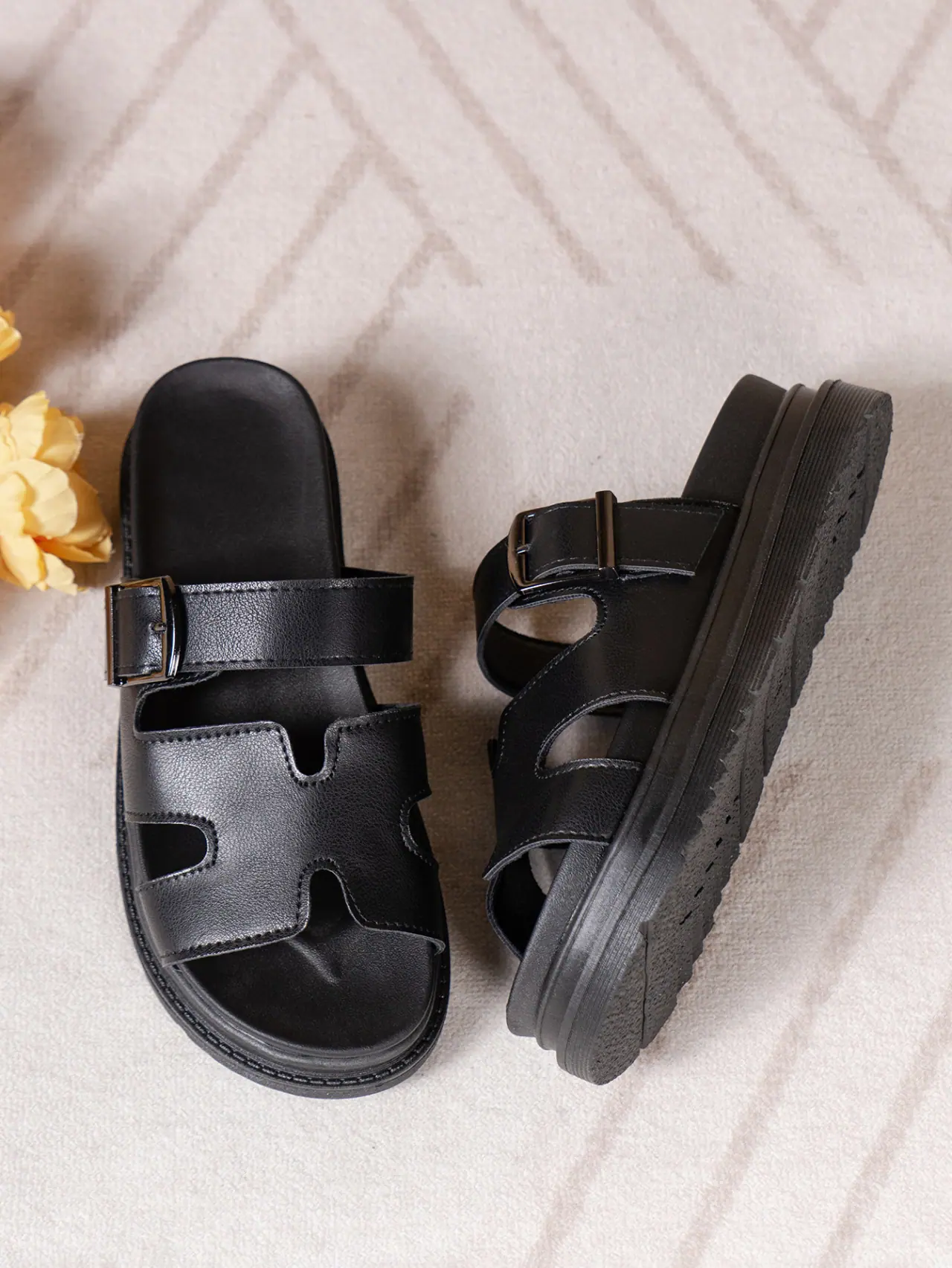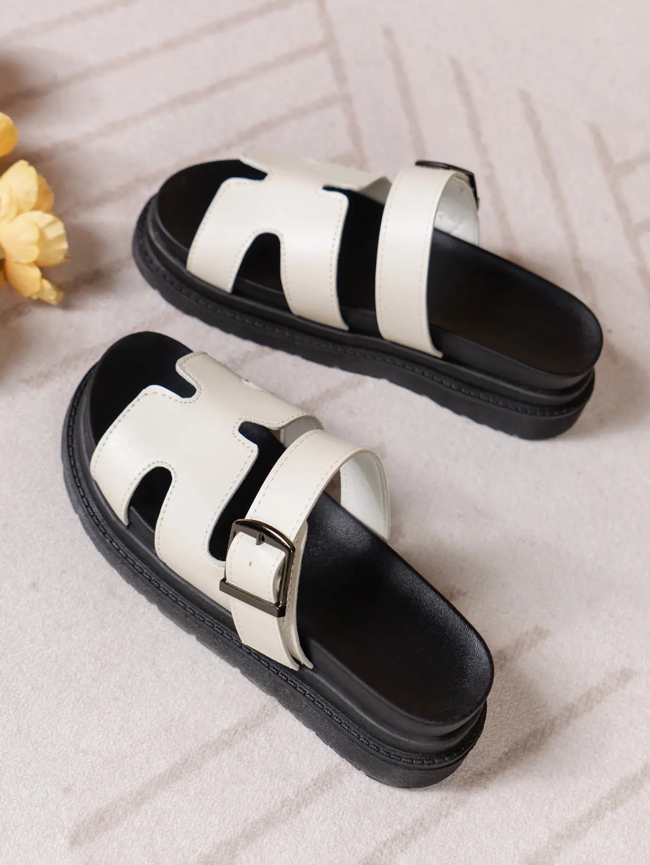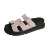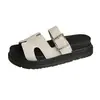 2024 Verano Nuevo Transfronterizo Tallas Grandes Zapatillas Mujeres Versátiles Suela Gruesa Una Tira Color Sólido Sandalias Casuales Europeas y Americanas Mujeres