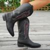2025 Nuevas Botas de Equitación de Estilo Británico Guapo Transfronterizo de Comercio Exterior Punta Afilada Bordadas Botas de Caballero Tacón Grueso Slip-On Botas de Mujer
