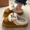 Nuevas Pantuflas de Algodón 2025 para Mujer en Otoño e Invierno Forradas de Felpa para Heattech Suela Gruesa Antideslizante Hogar Pantuflas Peludas con Lazo para Uso Exterior
