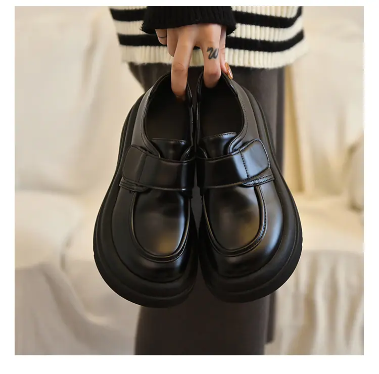 Zapatos de plataforma estilo británico con suela gruesa, zapatos pequeños de cuero para mujer, primavera verano, zapatos individuales franceses de boca profunda, nuevos Mary Jane mocasines 2025