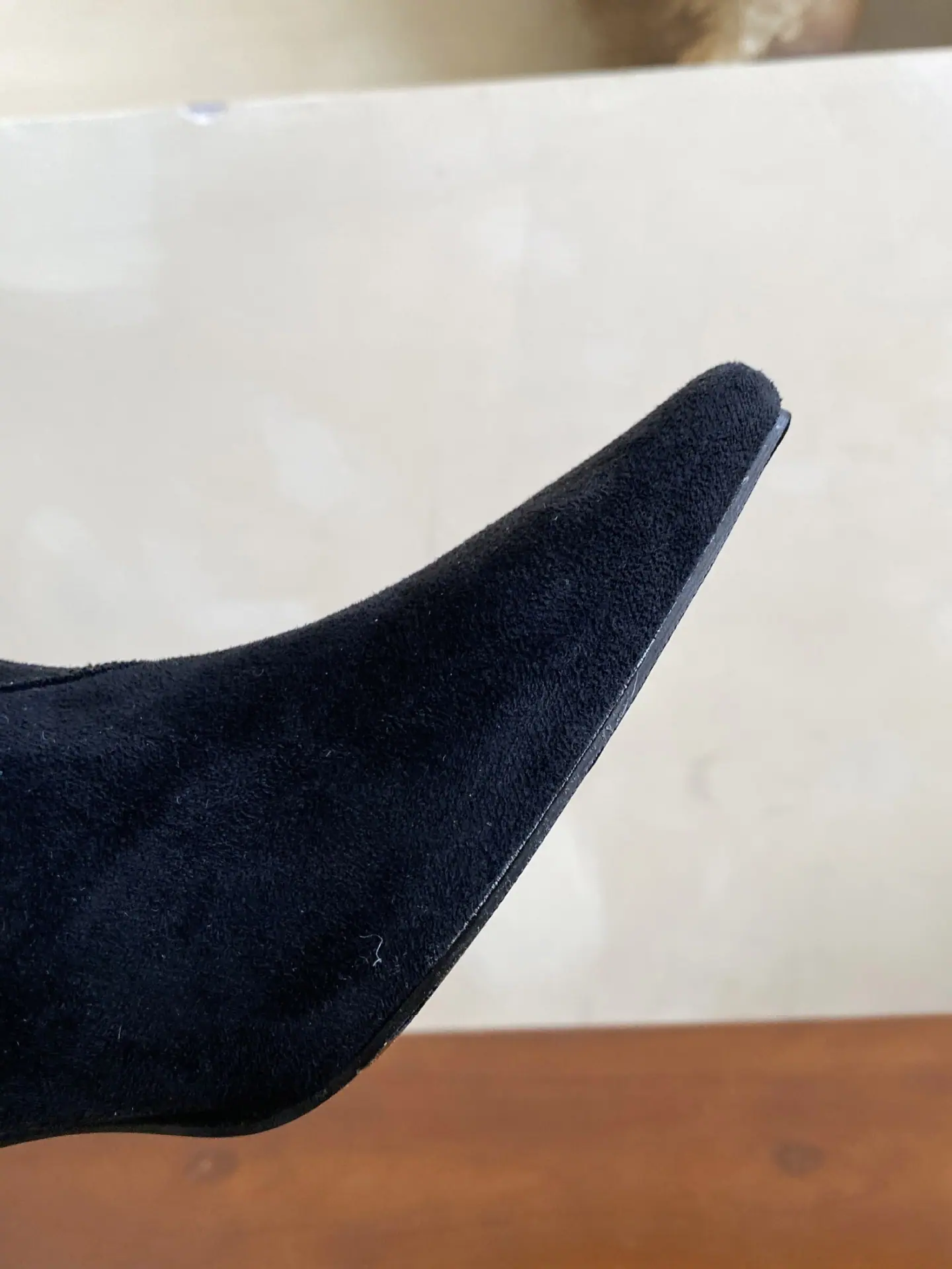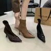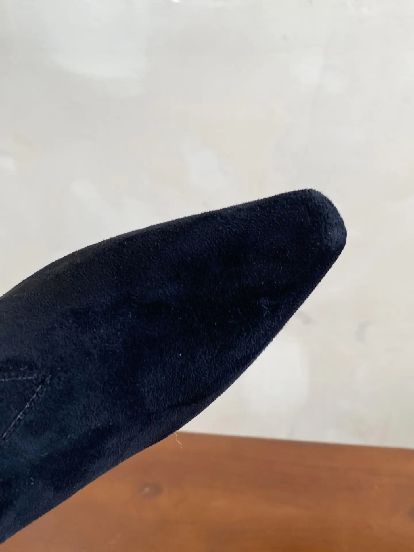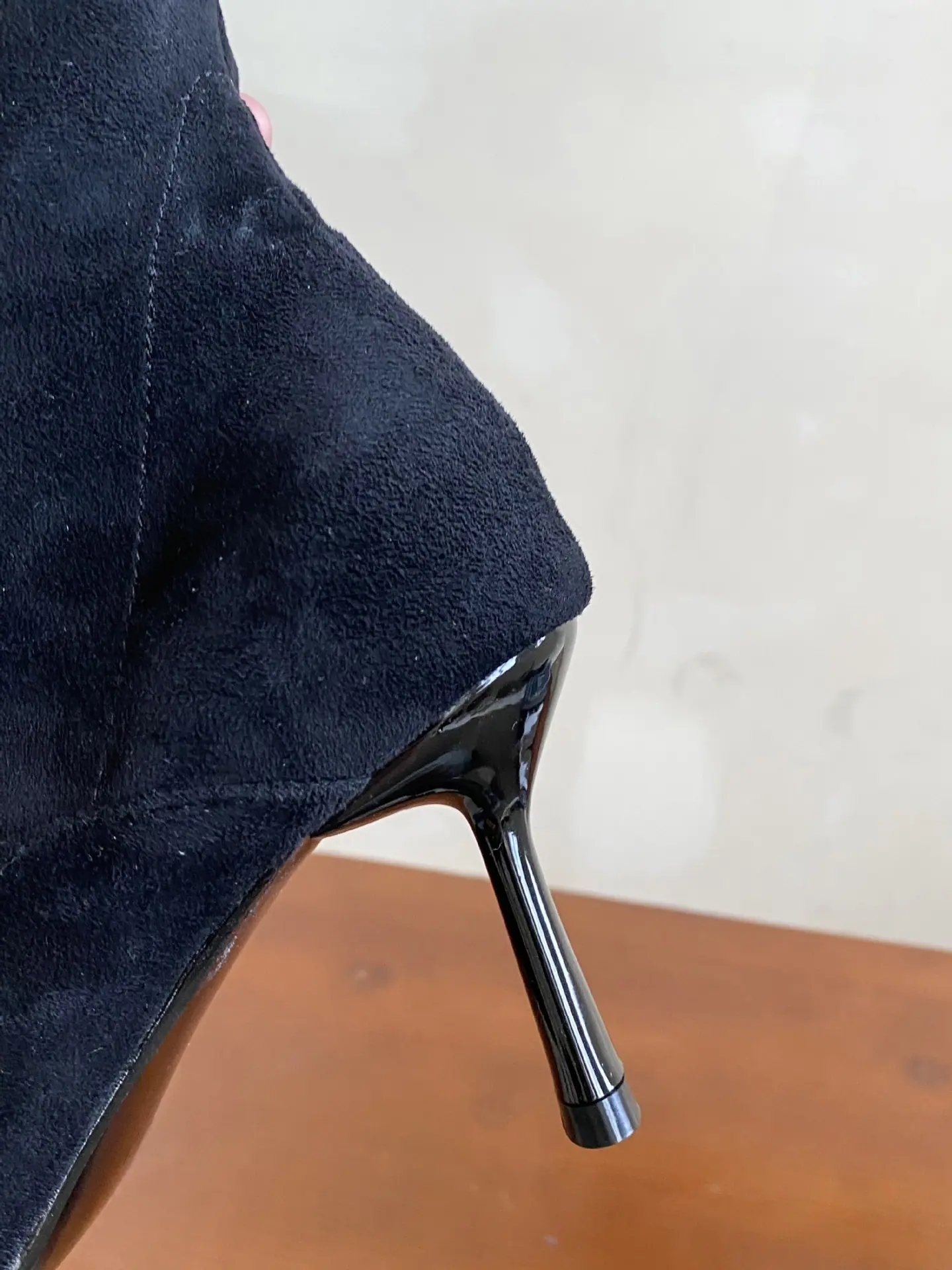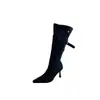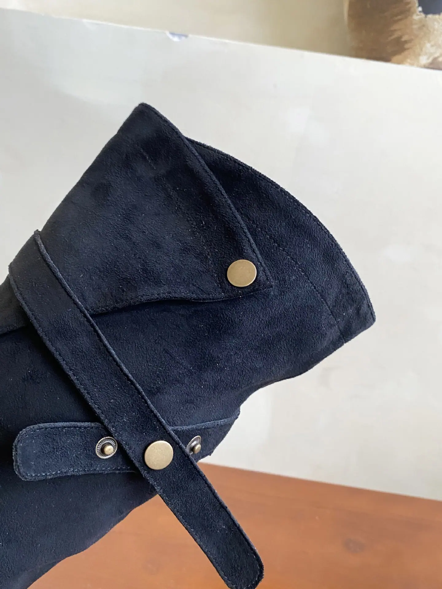 Otoño/Invierno 2025 Nuevo Europeo y Americano Hebilla de Cinturón de Gamuza Punta Afilada Tacón de Aguja Tacón Alto Temperamento Moda Francesa Sexy Botas Largas de Mujer