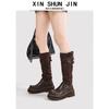 Botas Retro de Caña Alta con Suela Gruesa para Mujer Otoño 2025 Nuevo Estilo Retro Botas de Pila Botas de Trabajo Botas de Caballero