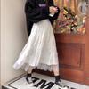 Primavera y Verano Nuevo Estilo Coreano Estilo Universitario Falda con Costuras de Malla Comercio Exterior Suelta Versátil Media Longitud Falda Línea A ins