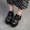 Jiezu 2025 Invierno Nuevo Primera Capa Piel de Vaca Retro Punta Redonda Tacón Grueso Suela Gruesa Botines Individuales Casuales de Moda Versátiles para Mujer