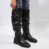 Botas Western de Otoño/Invierno 2025 Botas Largas Arrugadas por Encima de la Rodilla de Moda para Mujer con Tacones Gruesos y Punta Cuadrada Retro Botas Largas Slip-On