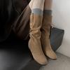 Botas Slouch de Piel de Ante de Vaca de Invierno Otoño 2025 con Plataforma Oculta ~ Botas de Media Caña para Mujer