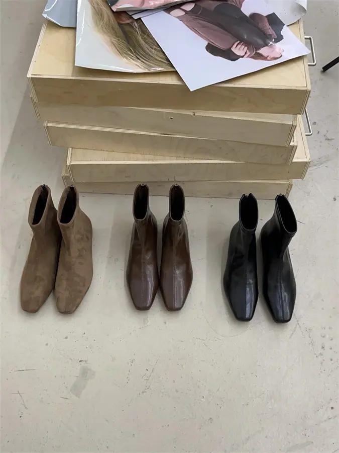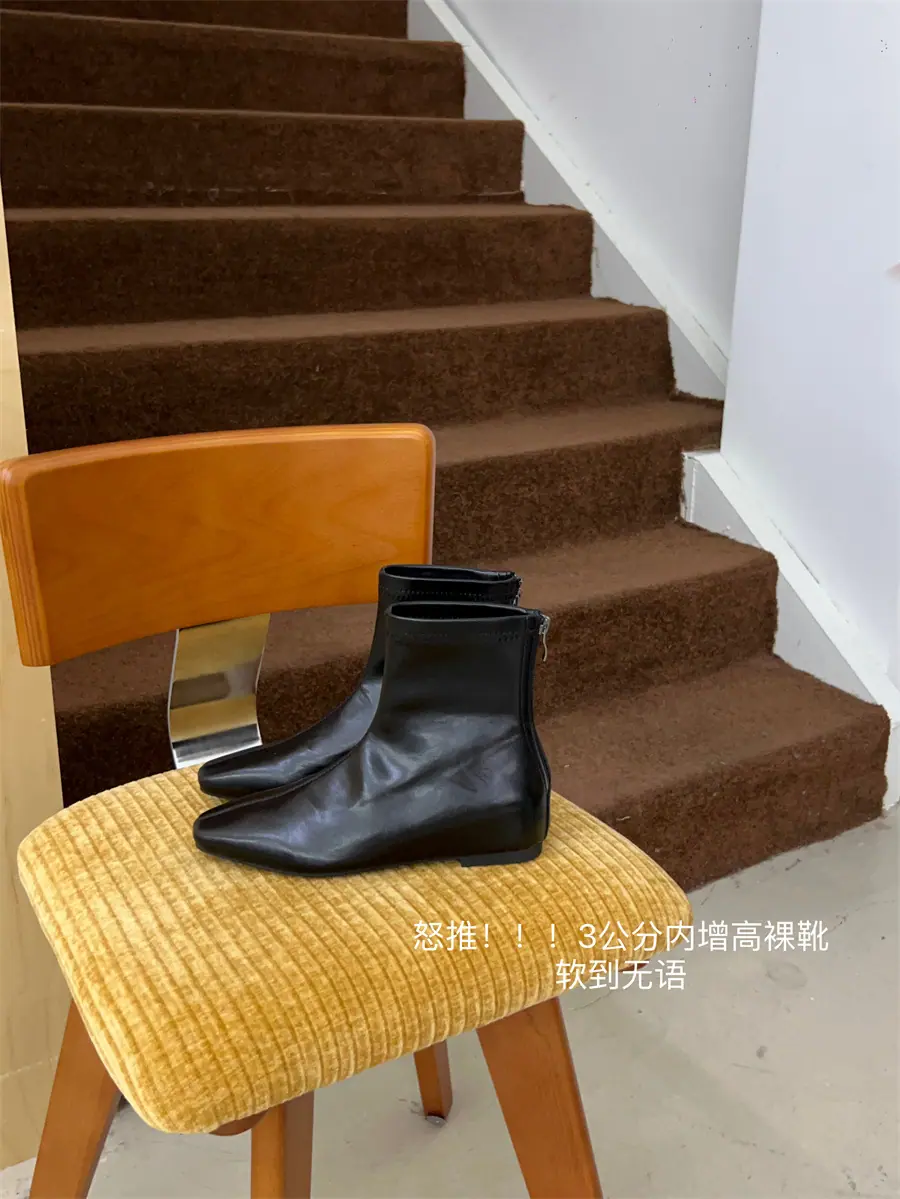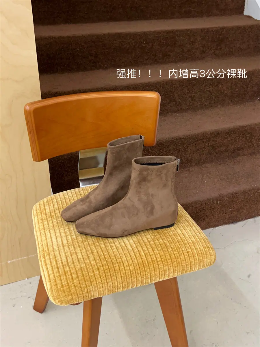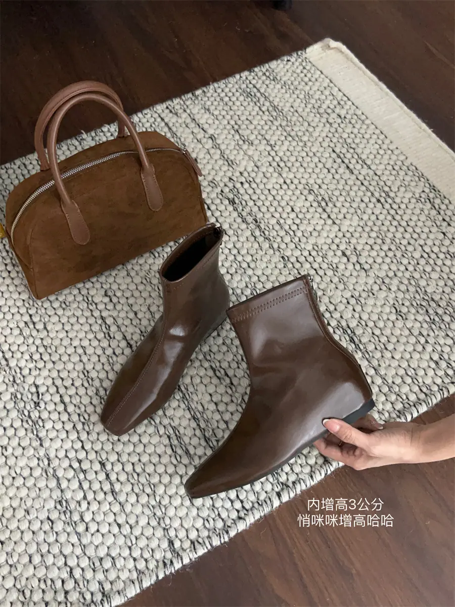 Botines de Tacón Oculto con Punta Cuadrada para Mujer 2025 Otoño/Invierno Nuevo Estilo Coreano Botas Simples para Mujer Tacón de Cuña Cierre Trasero Botas de Moda Mujer