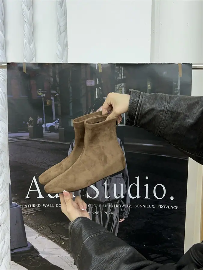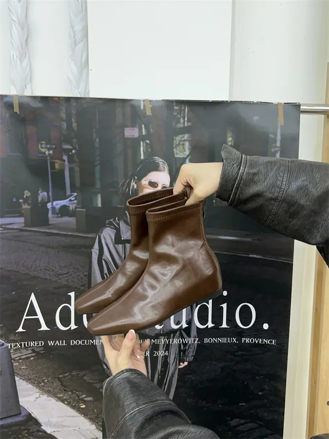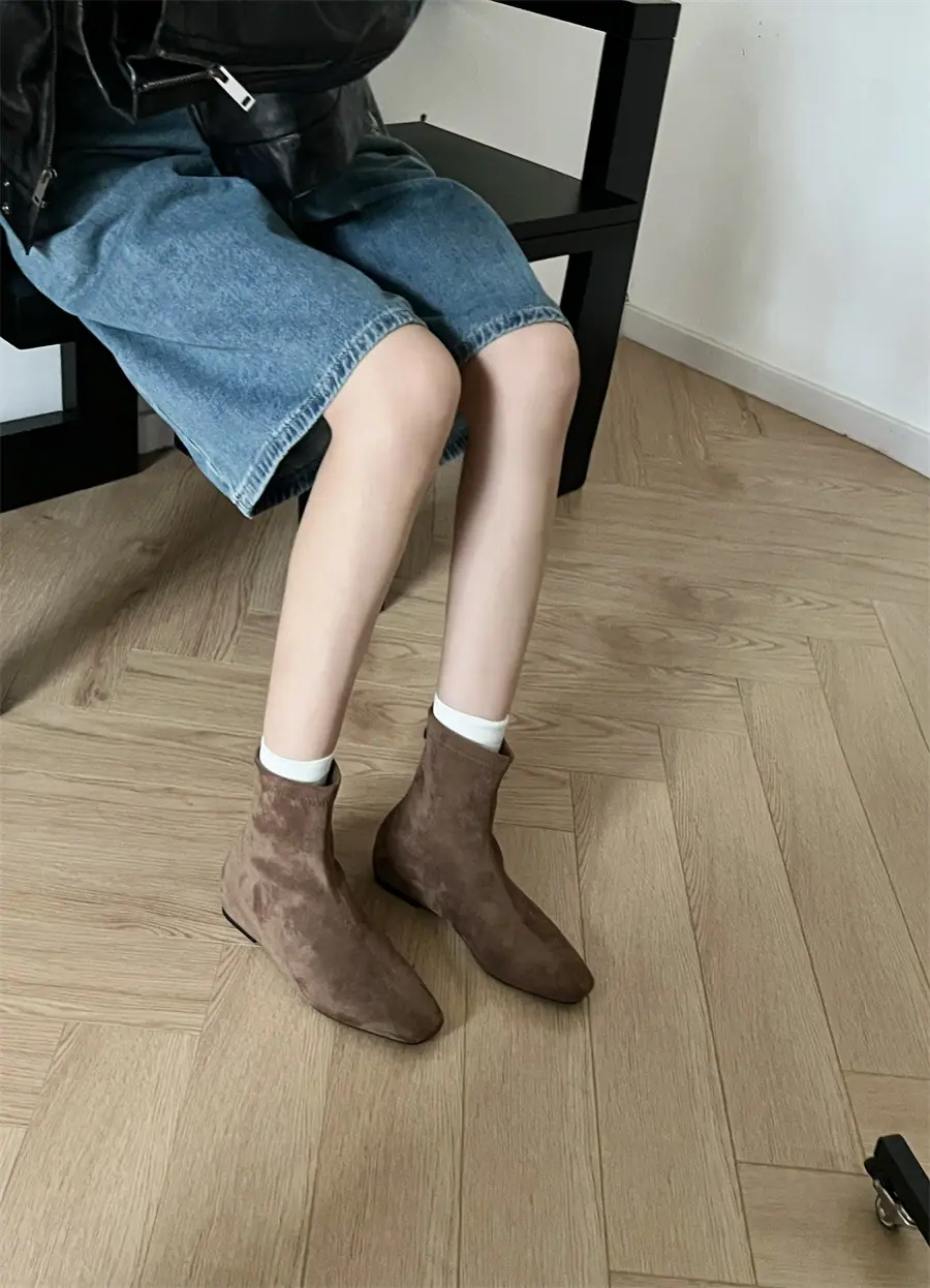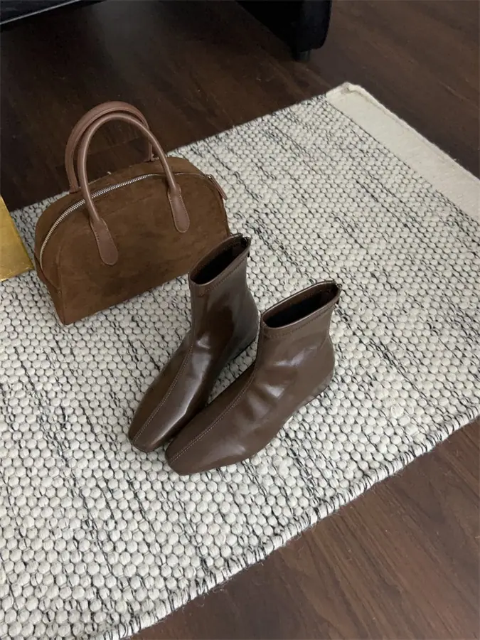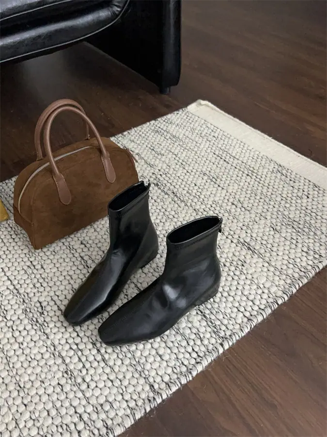 Botines de Tacón Oculto con Punta Cuadrada para Mujer 2025 Otoño/Invierno Nuevo Estilo Coreano Botas Simples para Mujer Tacón de Cuña Cierre Trasero Botas de Moda Mujer