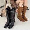 Botas Retro Marrones para Mujer 2025 Nuevas Botas Altas por Encima de la Rodilla de Otoño e Invierno Botas de Caballero Western con Remaches