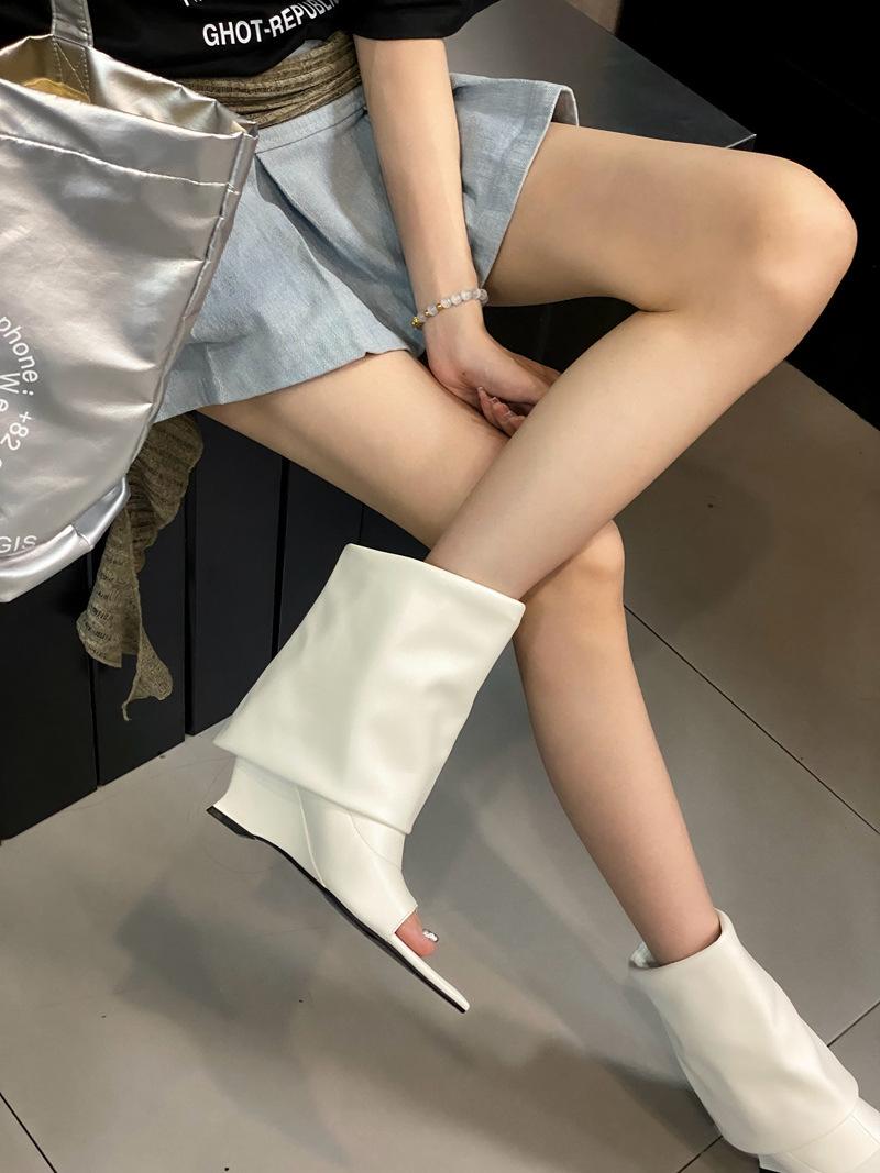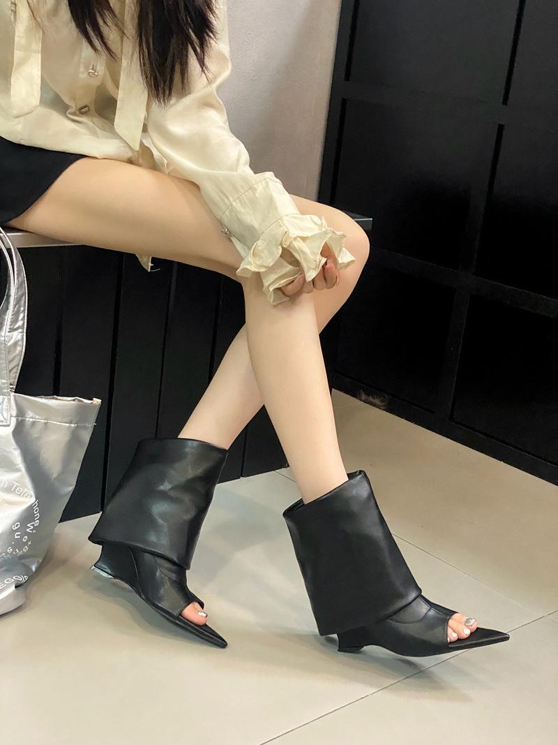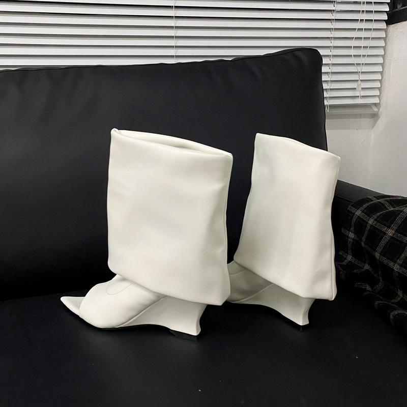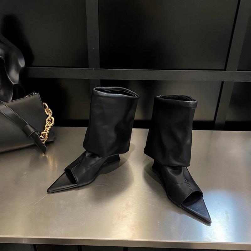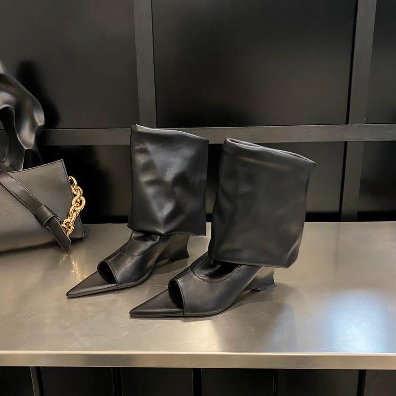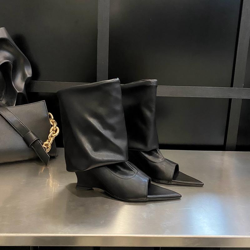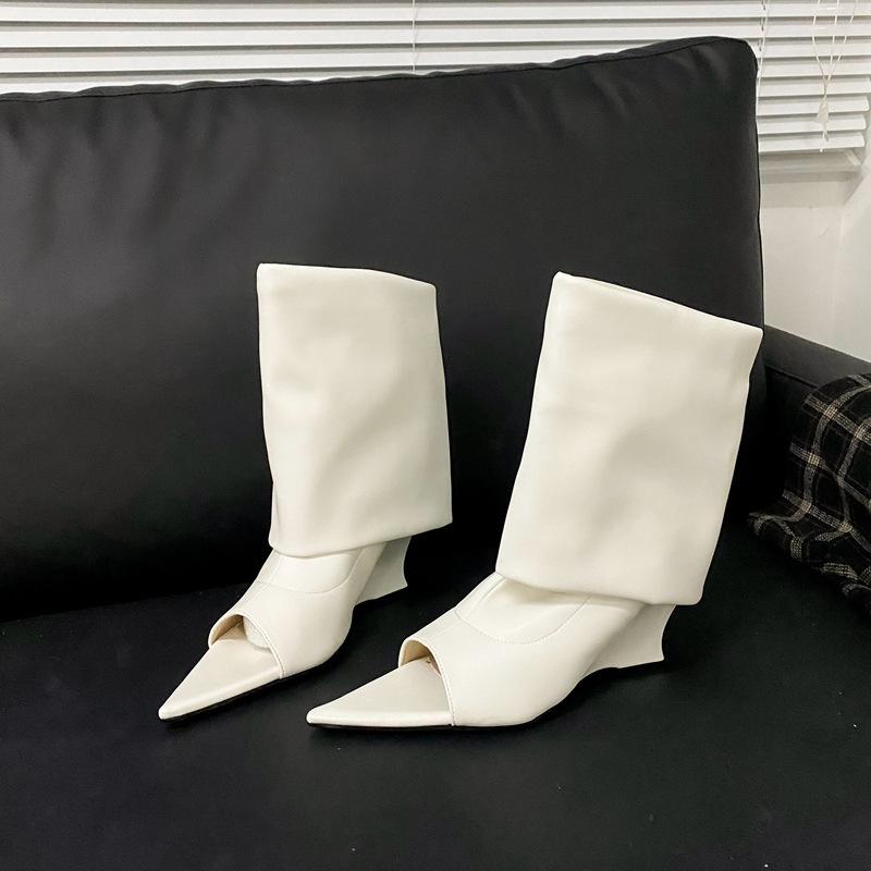 Compra Otoño 2025 Nuevo Moda Europea y Americana Punta Afilada Boca de Pez Botas Largas Tacón Alto de Cuña Botas para Pantalón Botas de Doble Uso al por mayor en Joom.pro