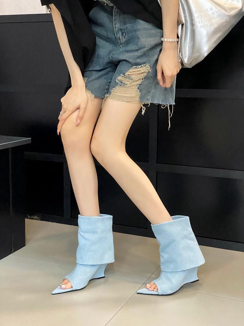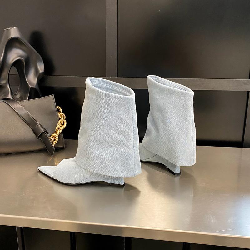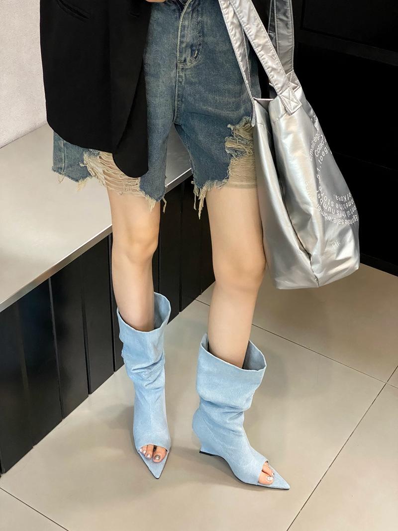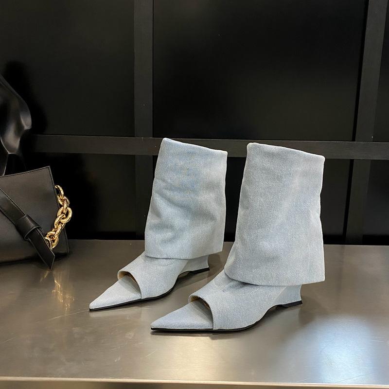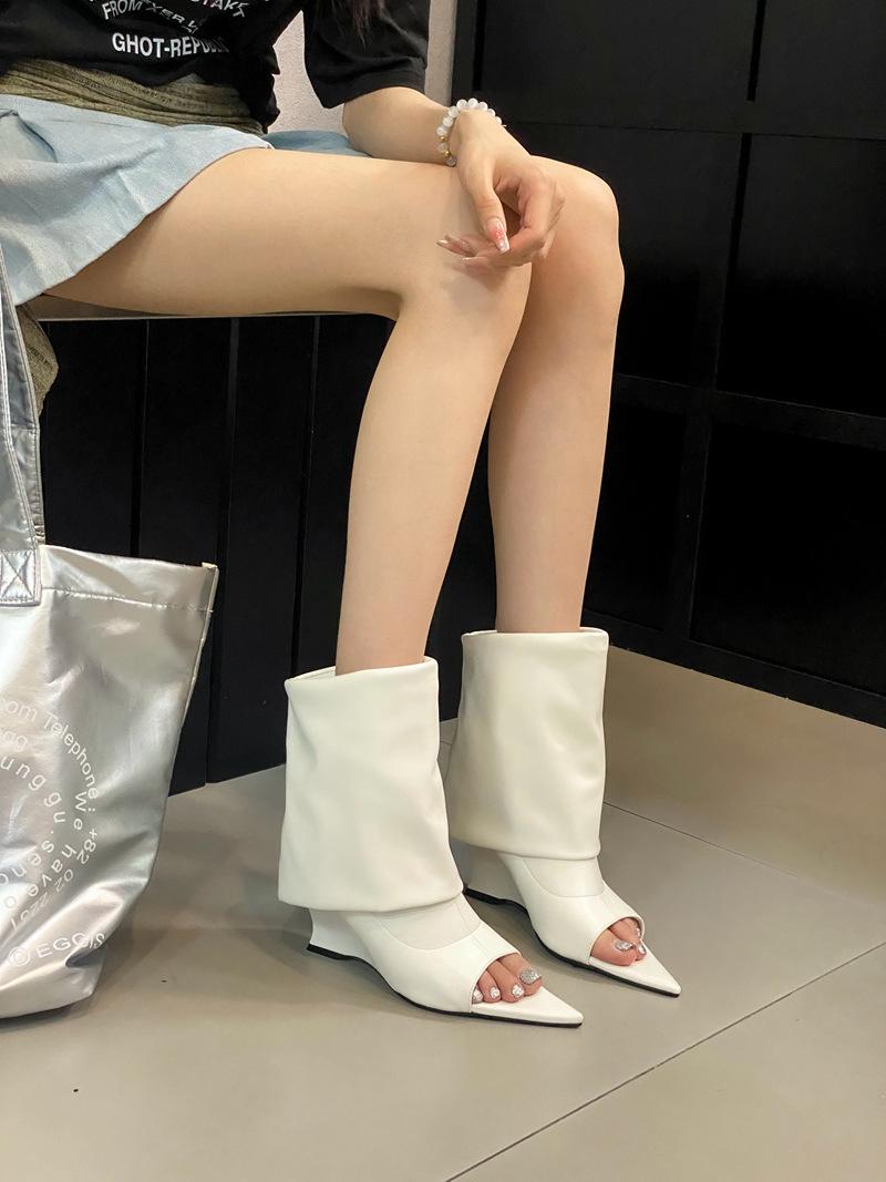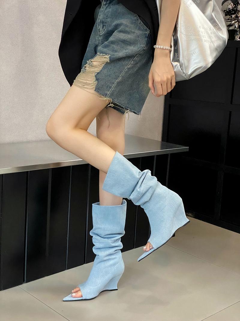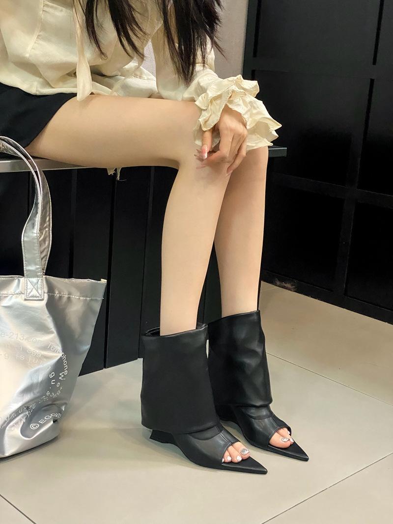 Compra Otoño 2025 Nuevo Moda Europea y Americana Punta Afilada Boca de Pez Botas Largas Tacón Alto de Cuña Botas para Pantalón Botas de Doble Uso al por mayor en Joom.pro
