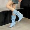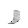 Otoño 2025 Nuevo Moda Europea y Americana Punta Afilada Boca de Pez Botas Largas Tacón Alto de Cuña Botas para Pantalón Botas de Doble Uso