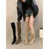Botas de Tacón Alto con Punta para Mujer 2025 Nuevo Otoño Khaki Francés Tacón de Aguja Botas de Pelo Plisadas Botas de Caballero
