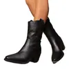 Nuevas botas de piel de media caña con tacón grueso, punta fina, comercio exterior, para mujer, talla grande transfronteriza, estilo británico, tacón alto, moda, tipo caballero