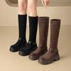 Botas Altas de Suela Gruesa Zhr Nuevo Estilo Otoño e Invierno 2025 Botas Cálidas Ajustadas con Forro de Felpa Botas Versátiles de Gamuza tipo Chimenea para Mujer
