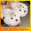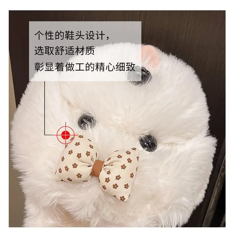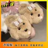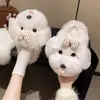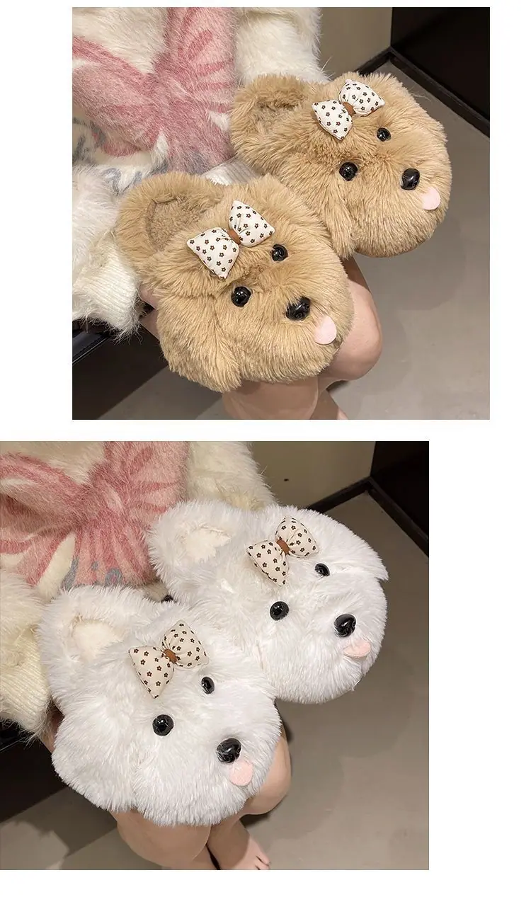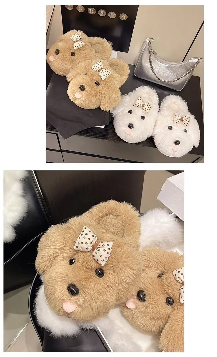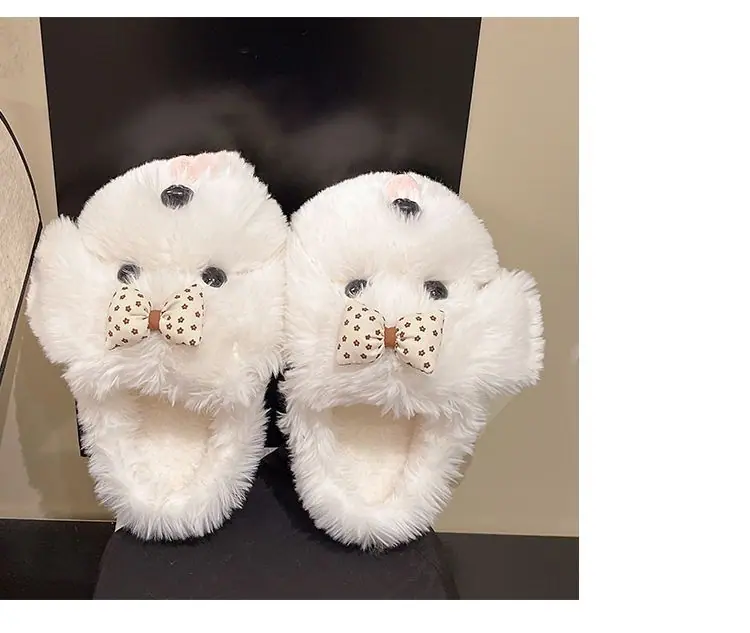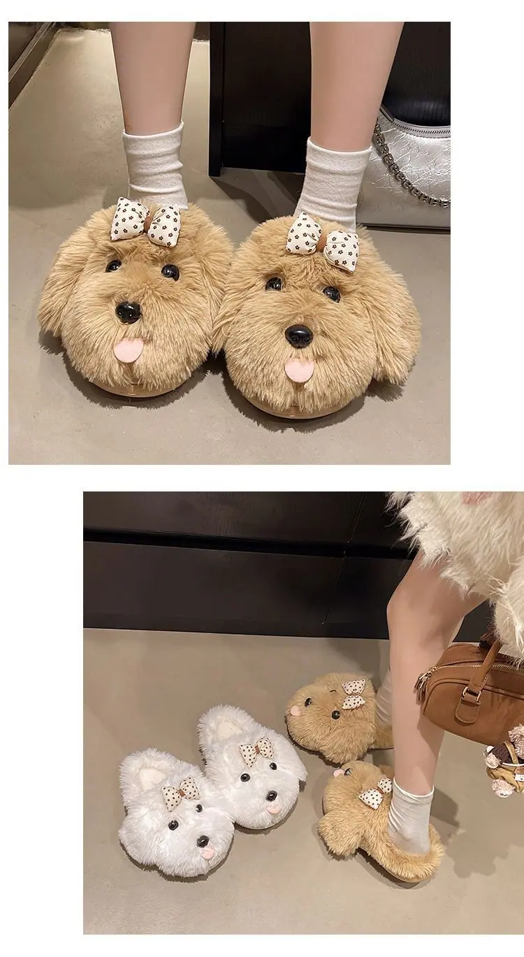 Pantuflas de Casa Bao Tou 2025 Otoño/Invierno Nuevas para Exterior Lindas Femeninas de Dibujos Animados Cachorro Pantuflas Peludas para Mujer