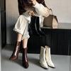 Botines de Punta, Botas Femeninas Negras de Moda Nude, Botas Elásticas Francesas Slim de Tacón Grueso Versátiles 2025 Nuevo Estilo