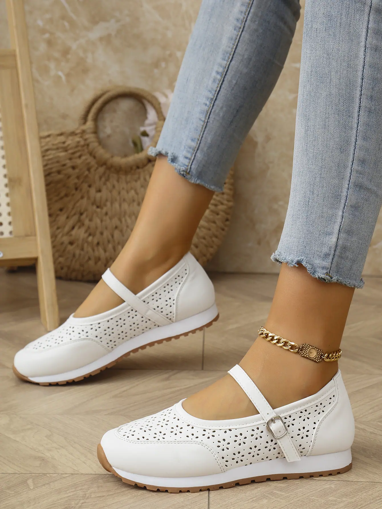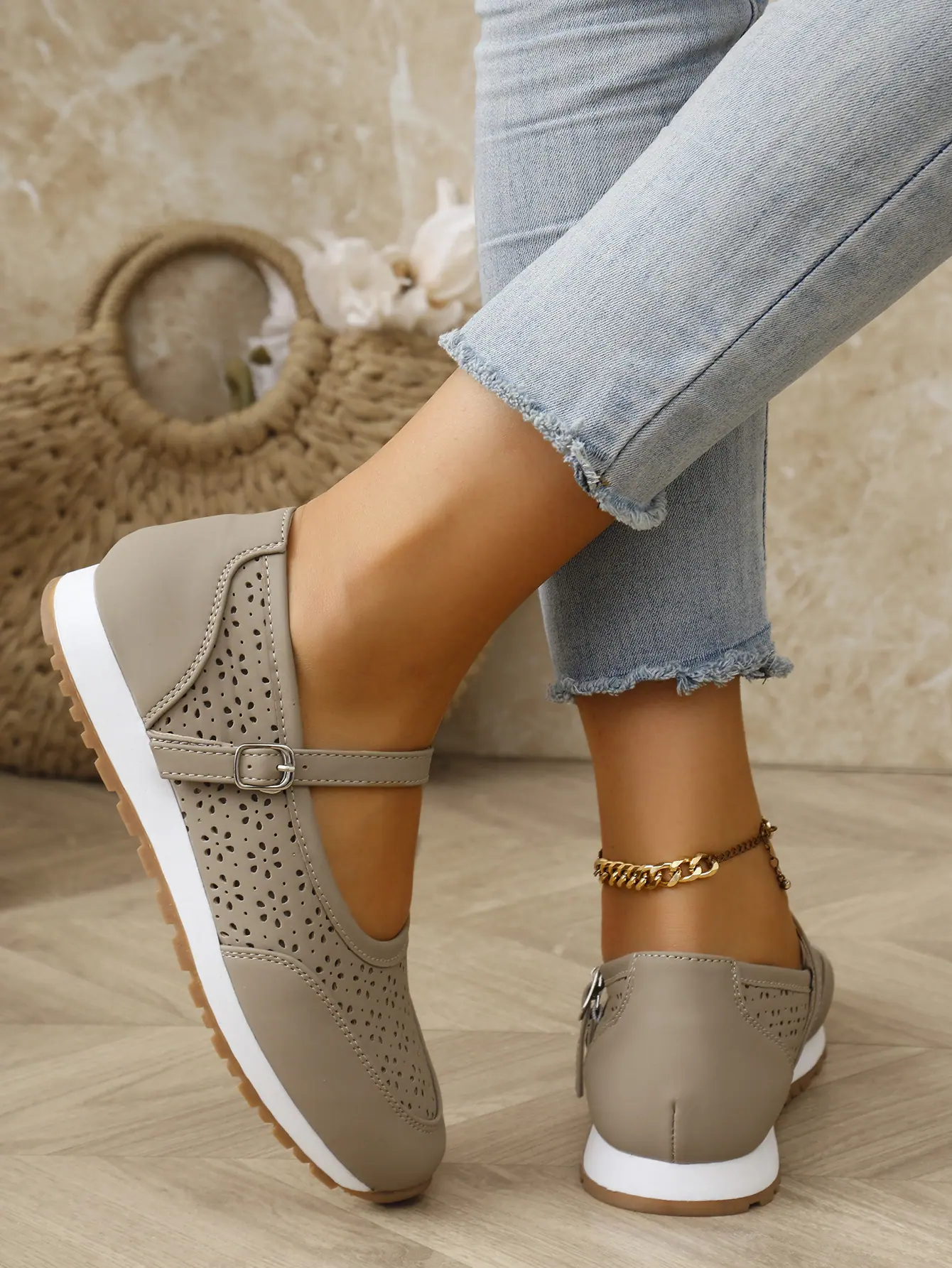 Zapatos Casuales Versátiles de Comercio Exterior Primavera/Verano Talla Grande 2025 Transfronterizos Escotados Nuevos Zapatos de Mujer Hebilla Transpirable Europea y Americana