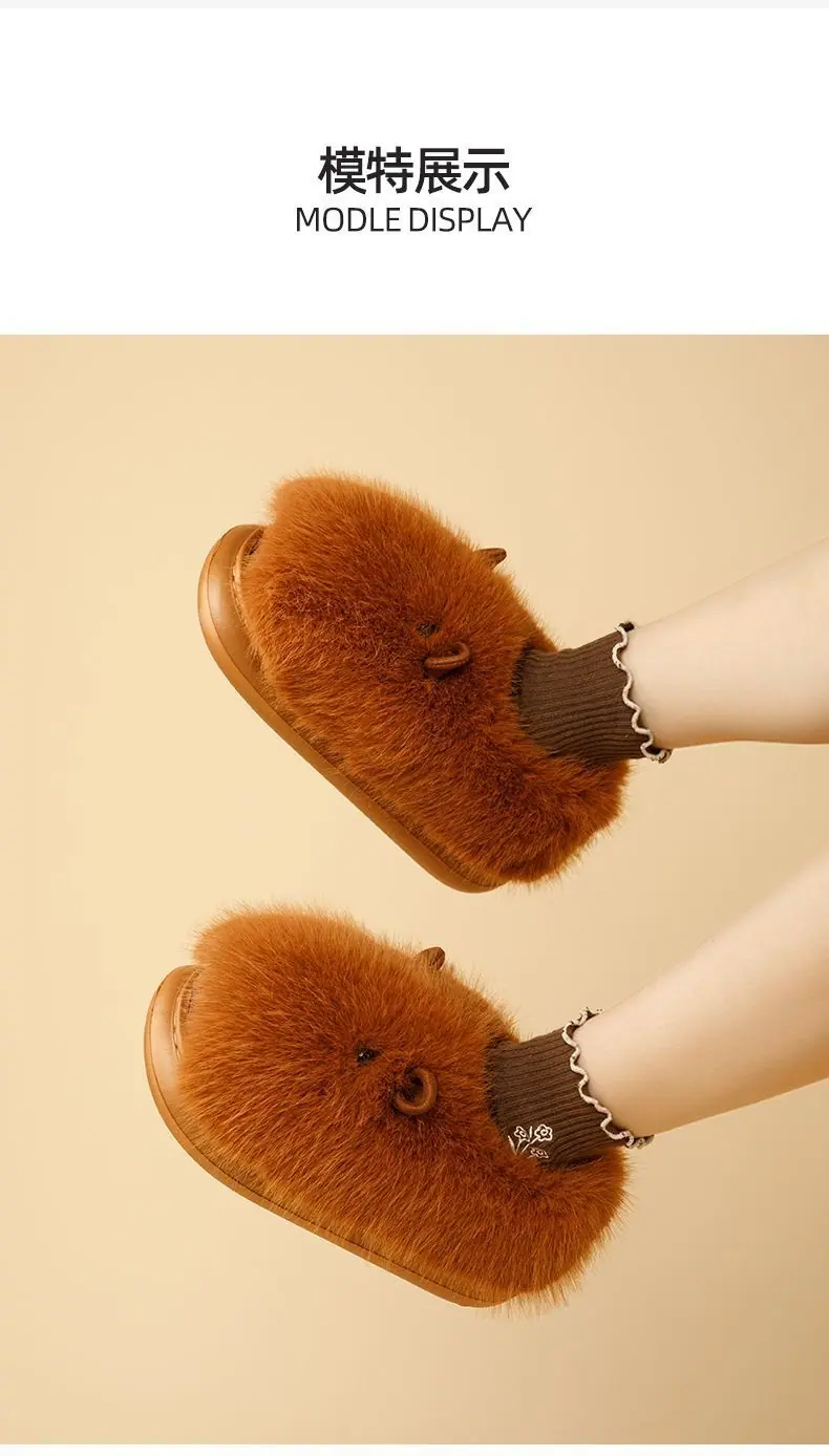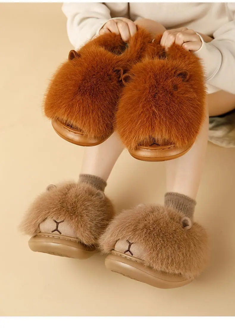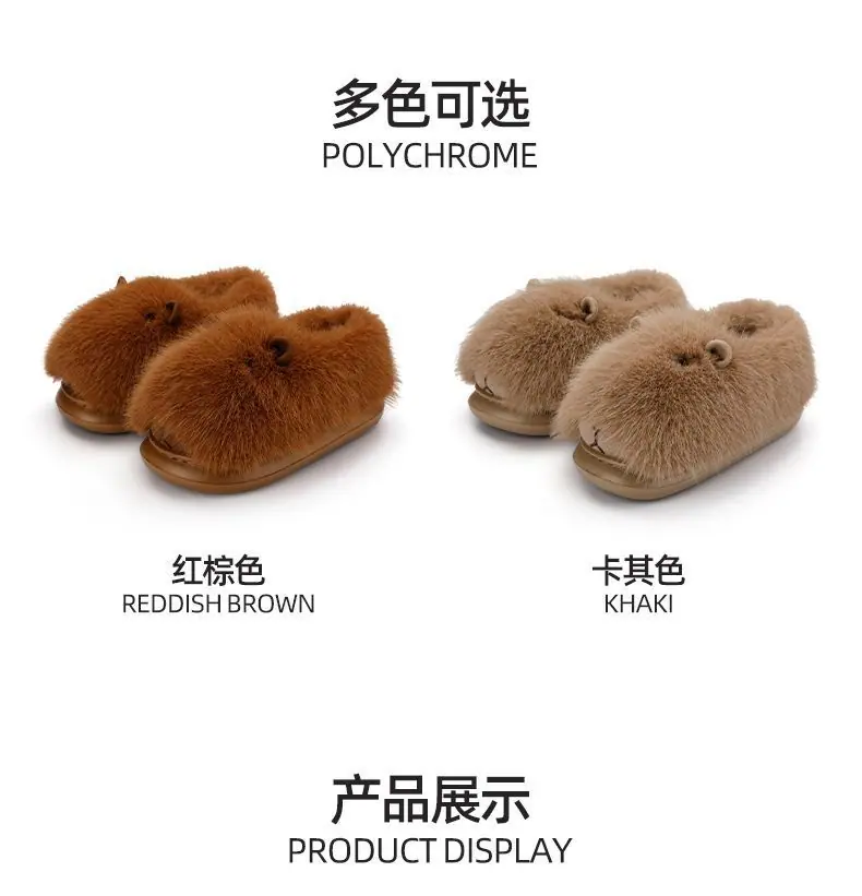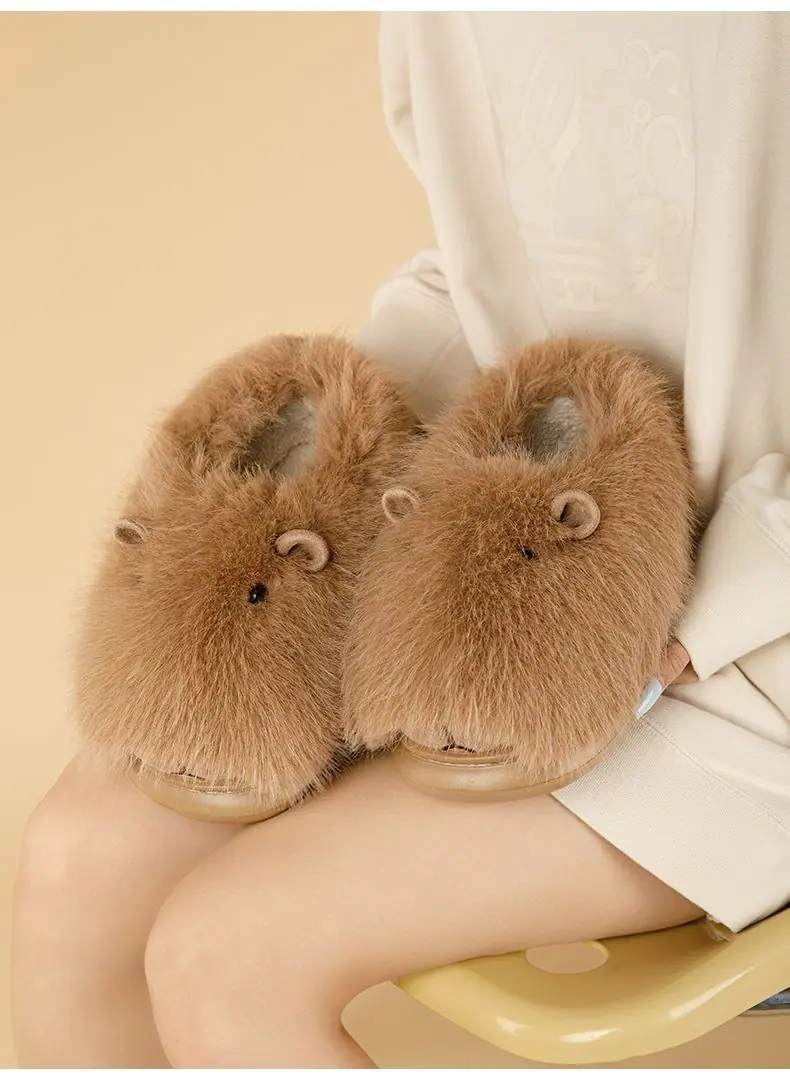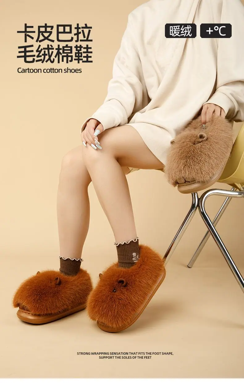 Pantuflas de Algodón Kapibala de Otoño e Invierno para Mujer para Interior de Casa Cálidas con Forro Polar Antideslizantes con Talón de Bolsa Zapatos de Algodón de Felpa para Mujer