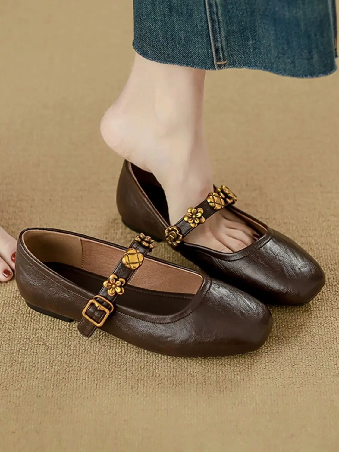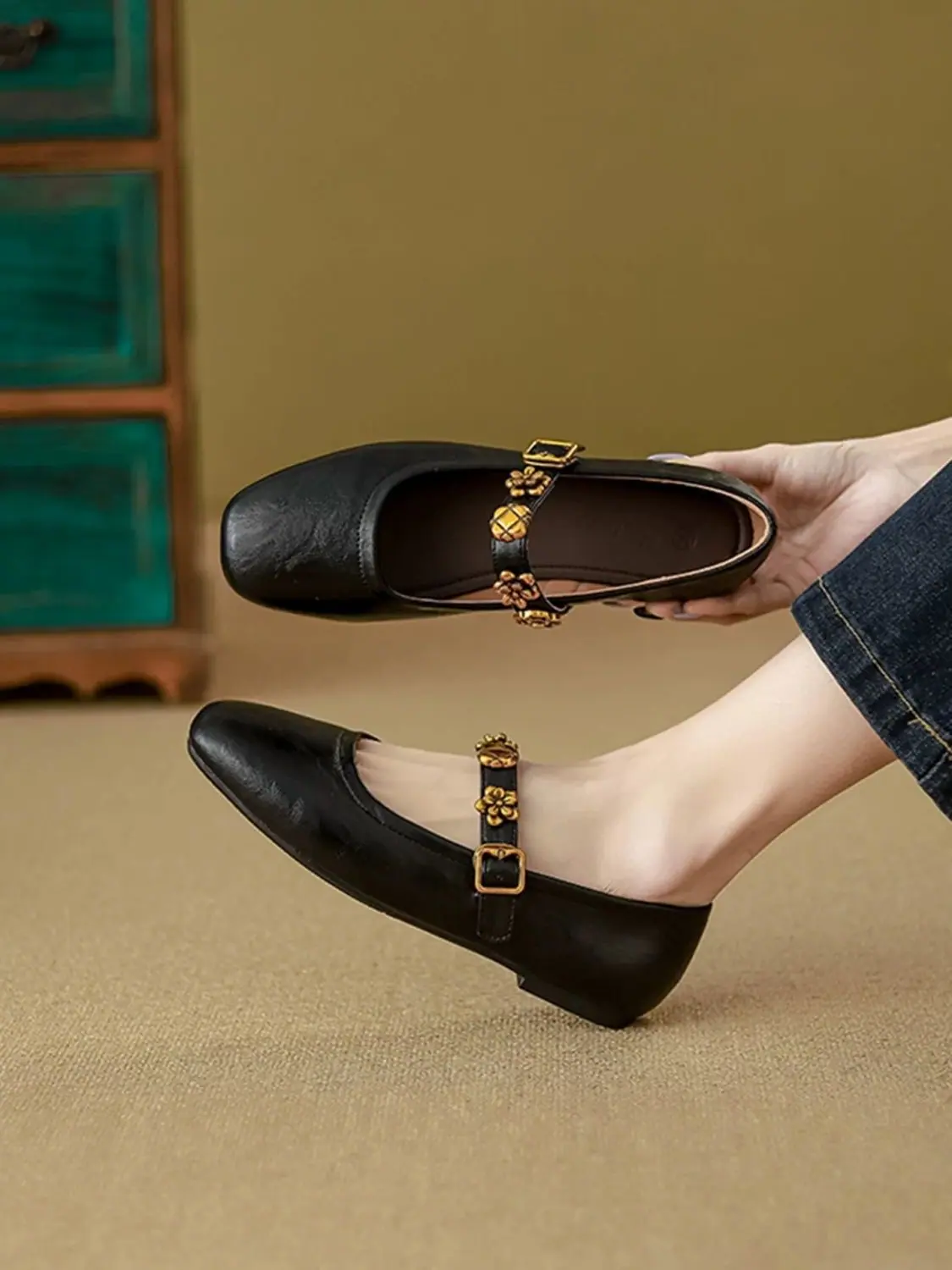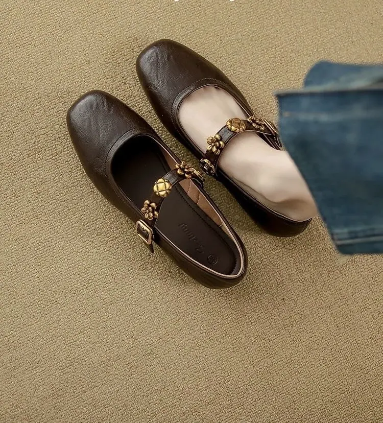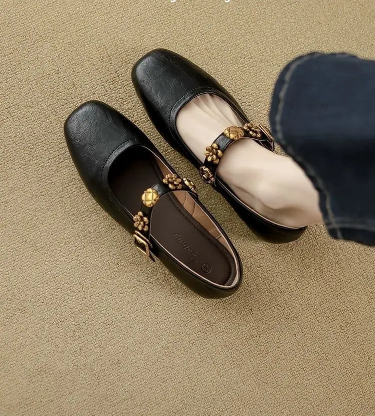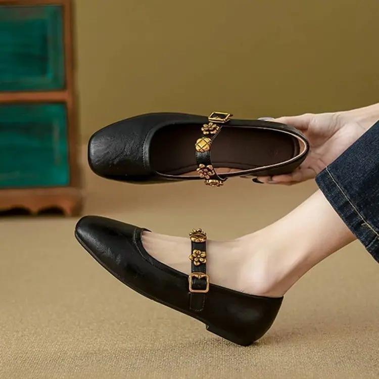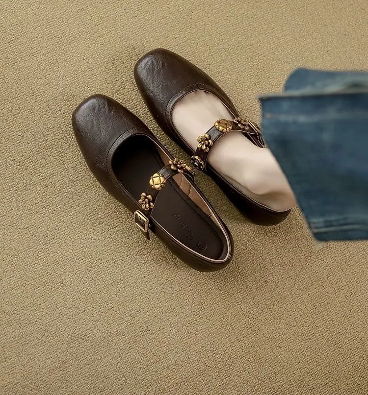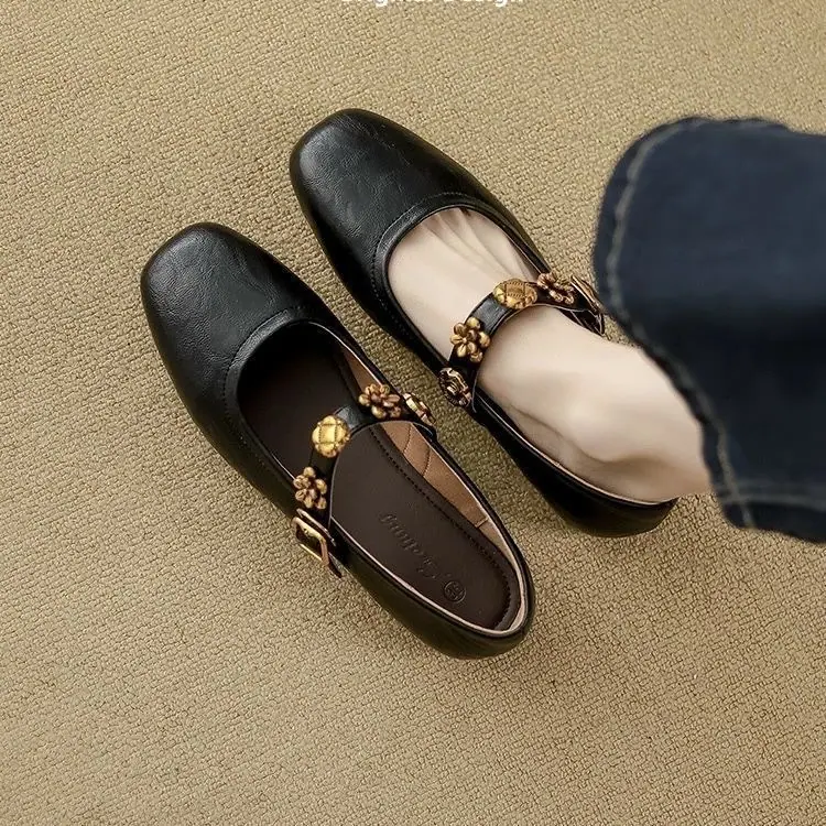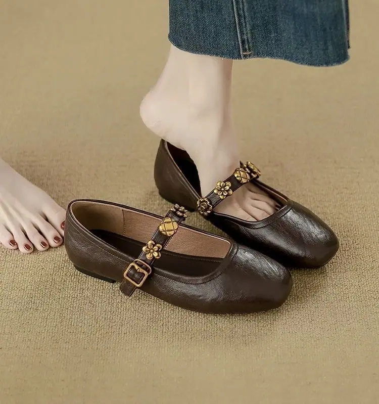 2025 nueva moda de otoño zapatos bajos de corte bajo zapatos planos de una tira zapatos pequeños de cuero retro de suela blanda Mary Jane zapatos de mujer