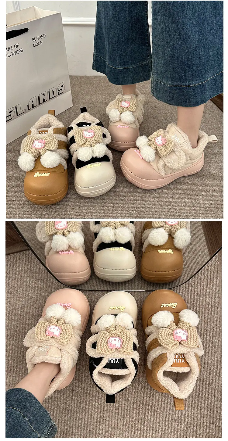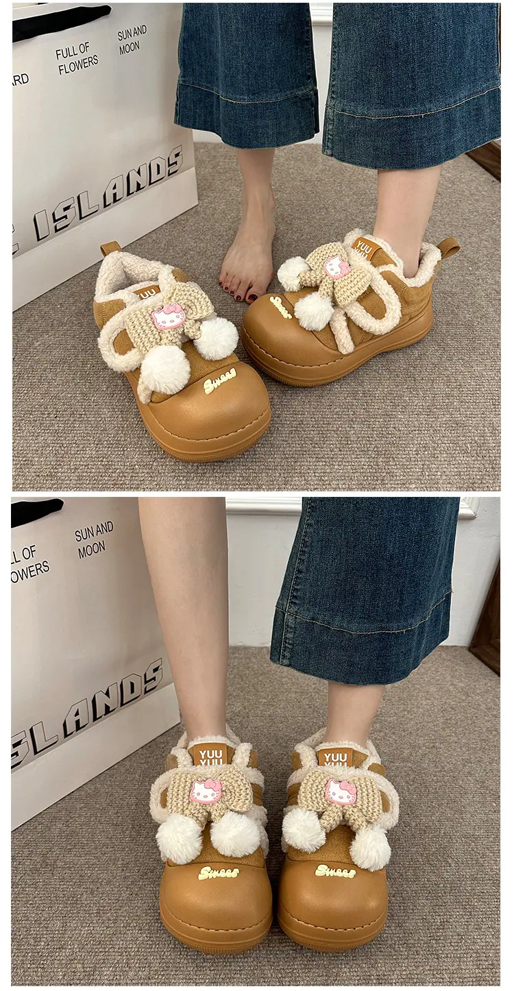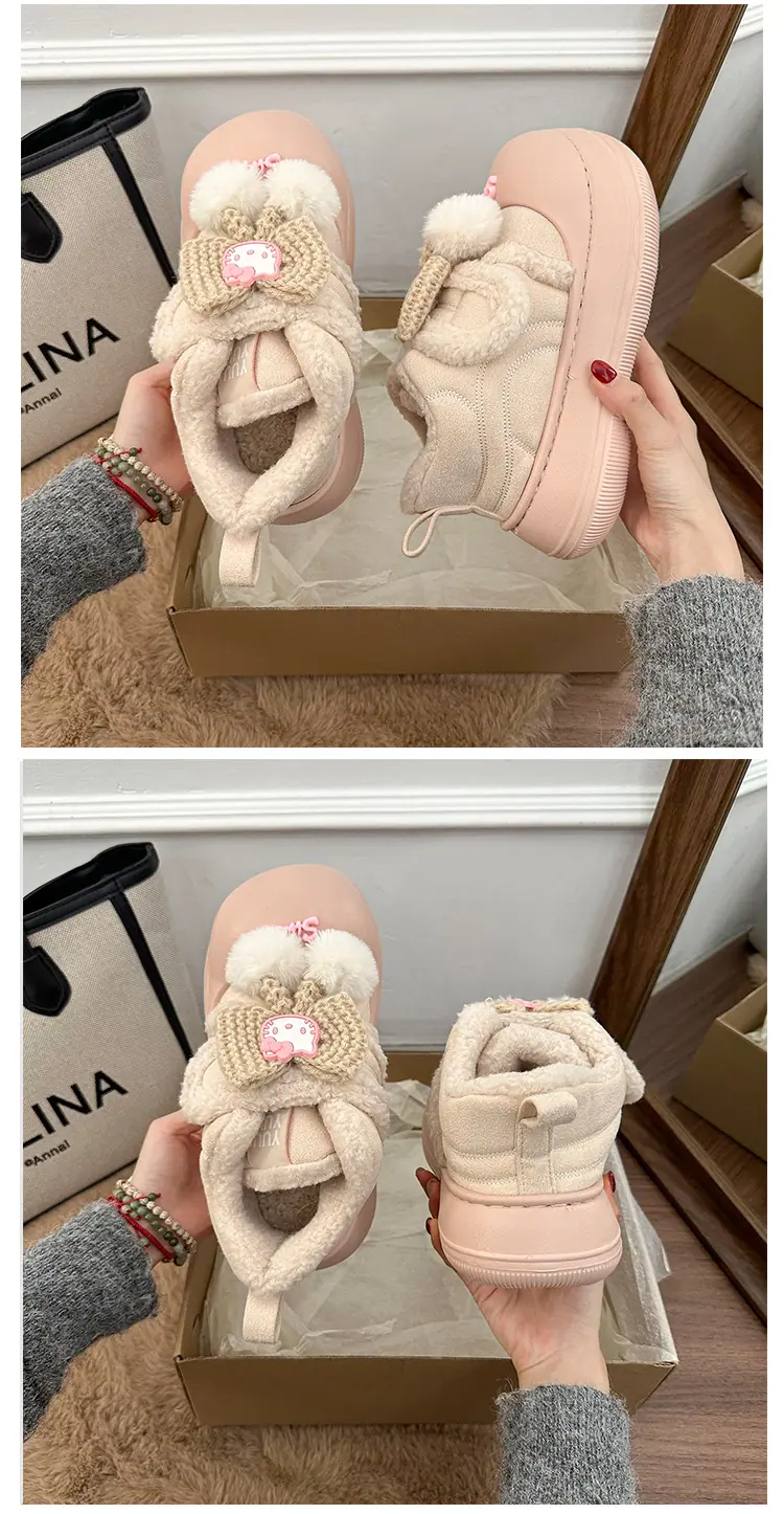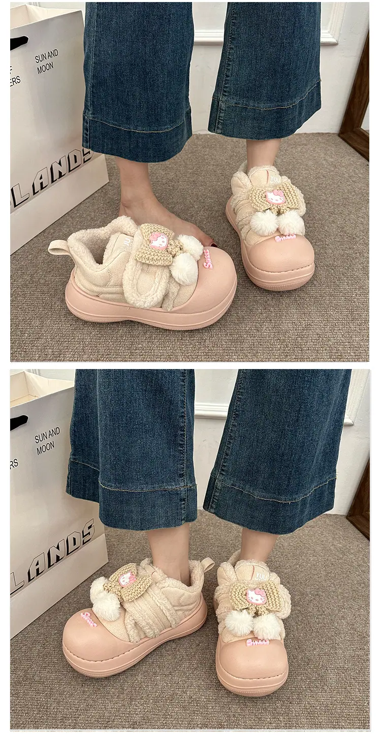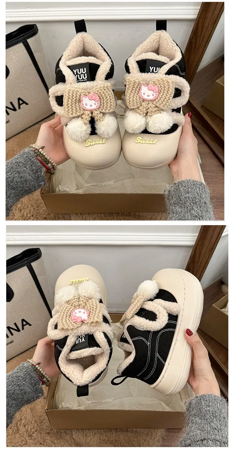 Lindas Pantuflas Difusas de Gatito de Dibujos Animados para Mujer 2025 Otoño/Invierno Nuevo Hogar Cálido para Usar Fuera Más Terciopelo con Talón Cubierto Pantuflas de Algodón