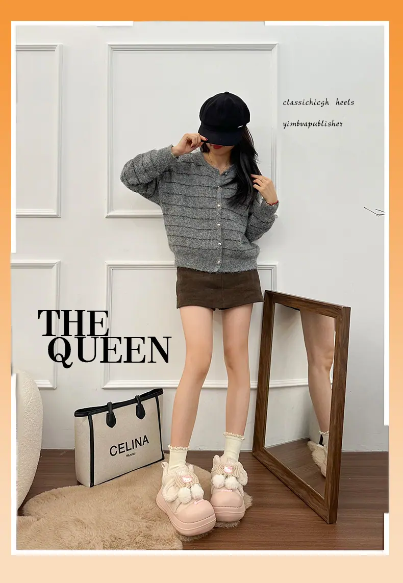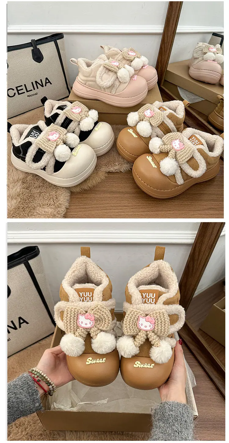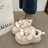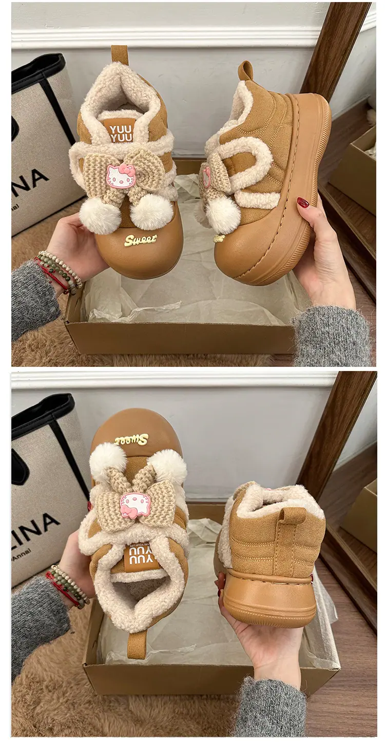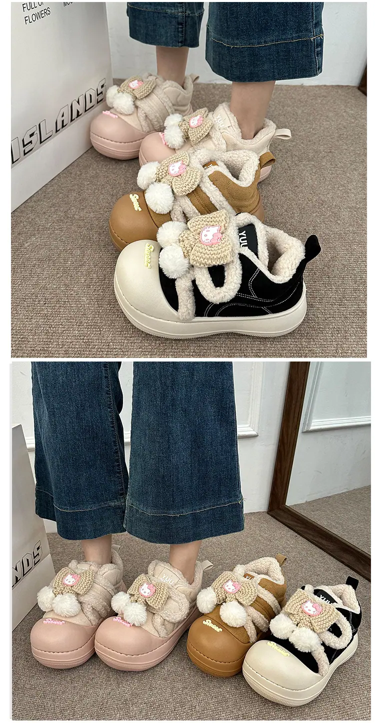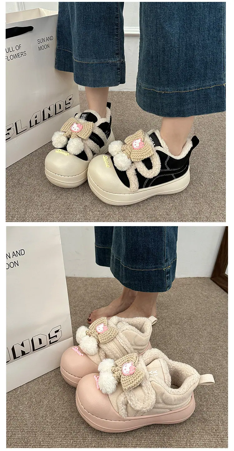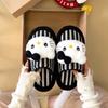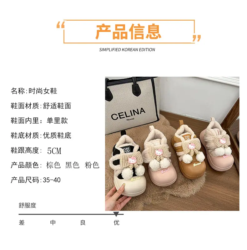 Lindas Pantuflas Difusas de Gatito de Dibujos Animados para Mujer 2025 Otoño/Invierno Nuevo Hogar Cálido para Usar Fuera Más Terciopelo con Talón Cubierto Pantuflas de Algodón
