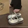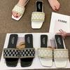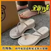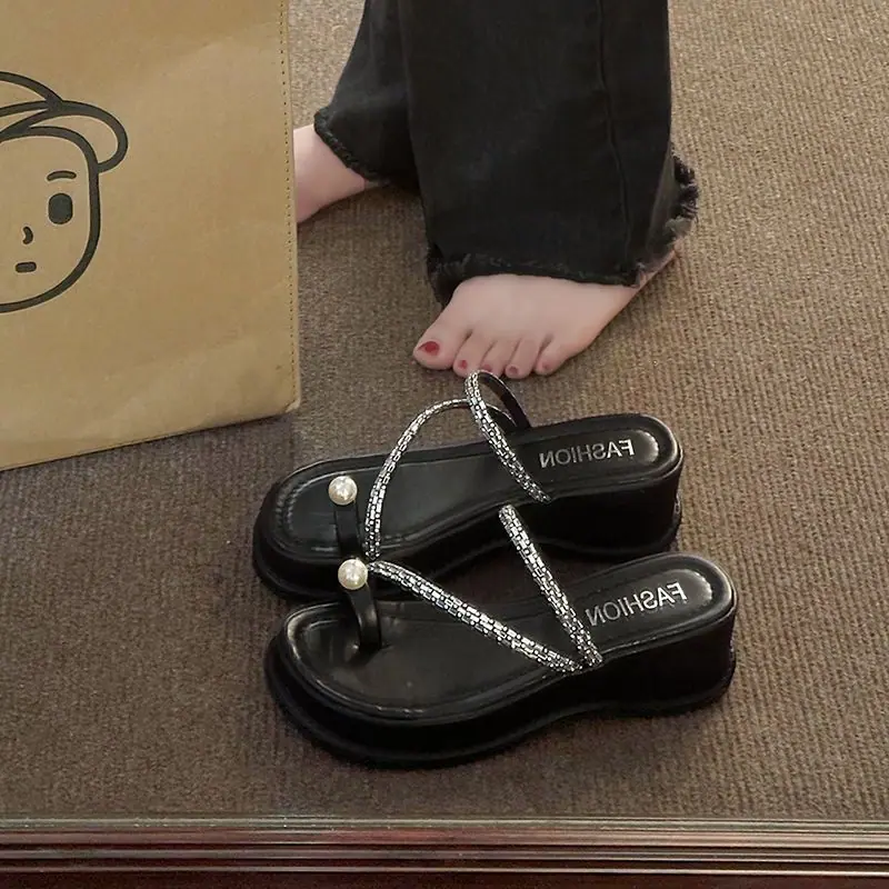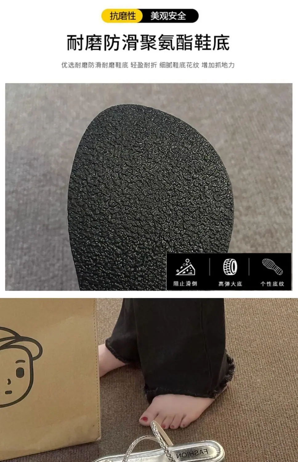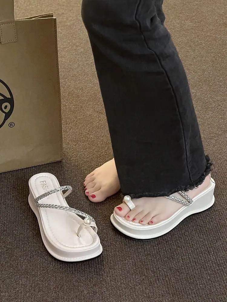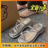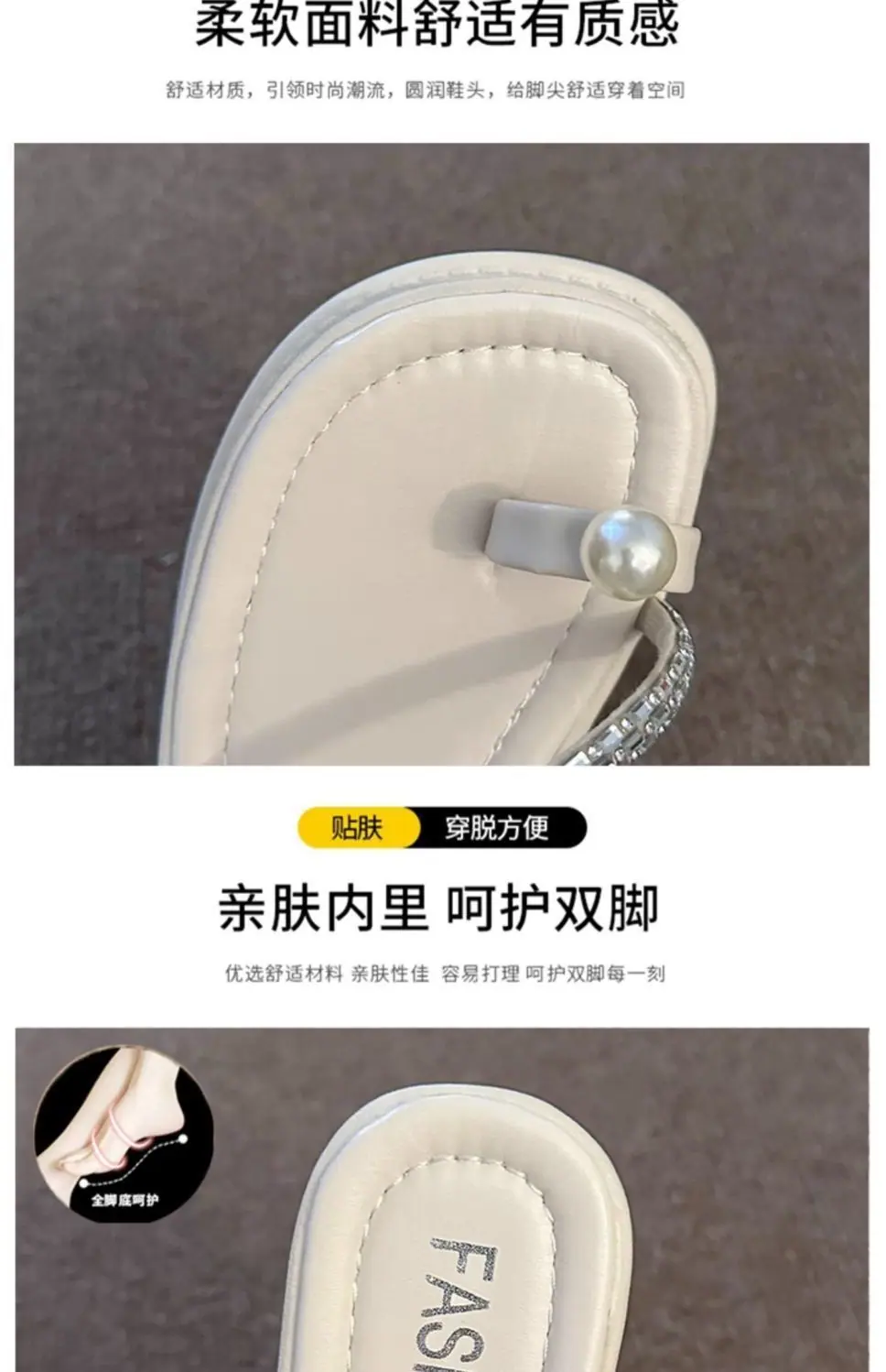 Sandalias de Dedo con Perlas para Mujer Verano 2024 Nuevo Estilo Coreano Pedrería Estilo Hada Tacón Bajo Una Tira