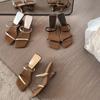 Sandalias de cuña francesas de tiras finas con punta cuadrada y puntera abierta para mujer, verano para uso exterior 2025, estilo de hada con falda, sandalias de moda