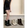 Botines de Moda de Tacón Grueso con Punta Francesa para Mujer 2025 Primavera y Otoño Nuevo Estilo Botas Individuales Retro Hebilla de Cinturón Media Pantorrilla Botas de Pantalón