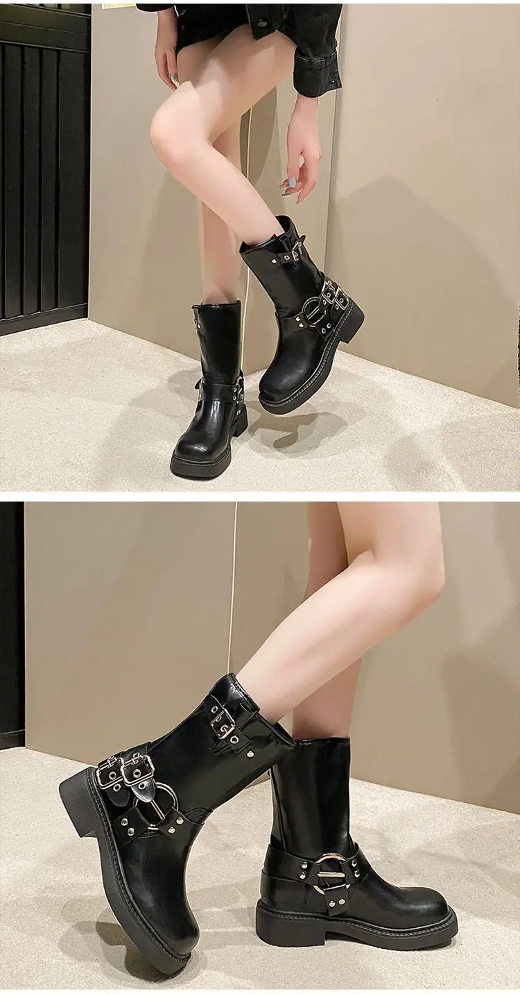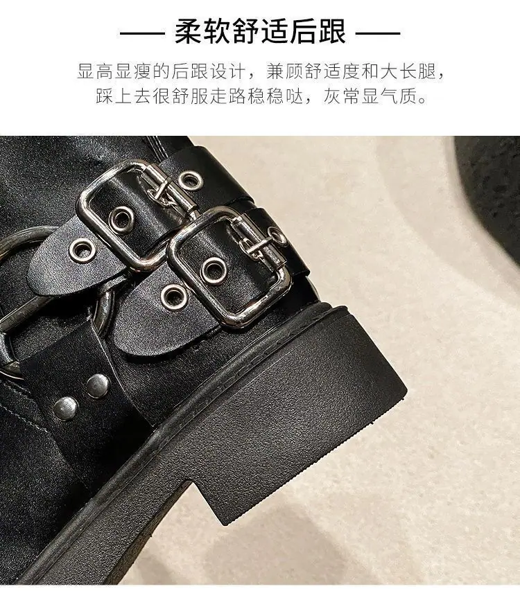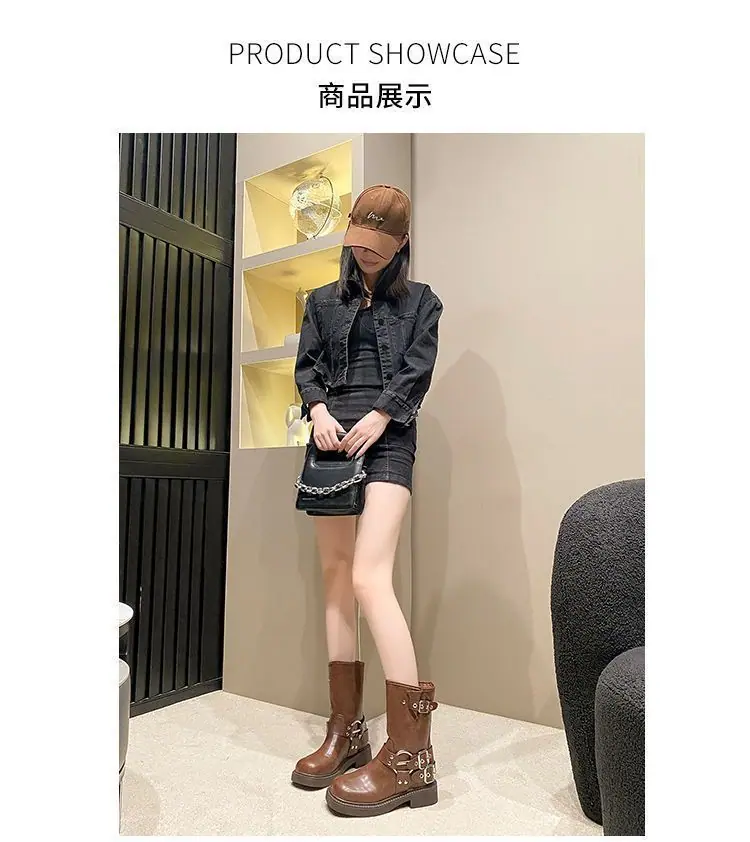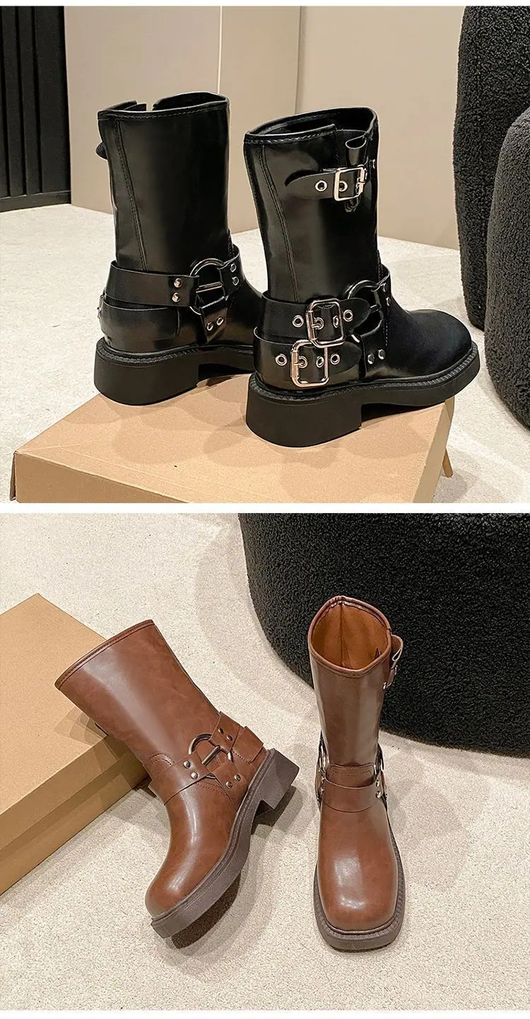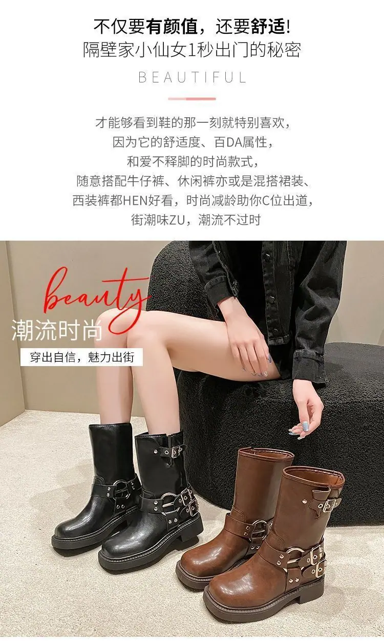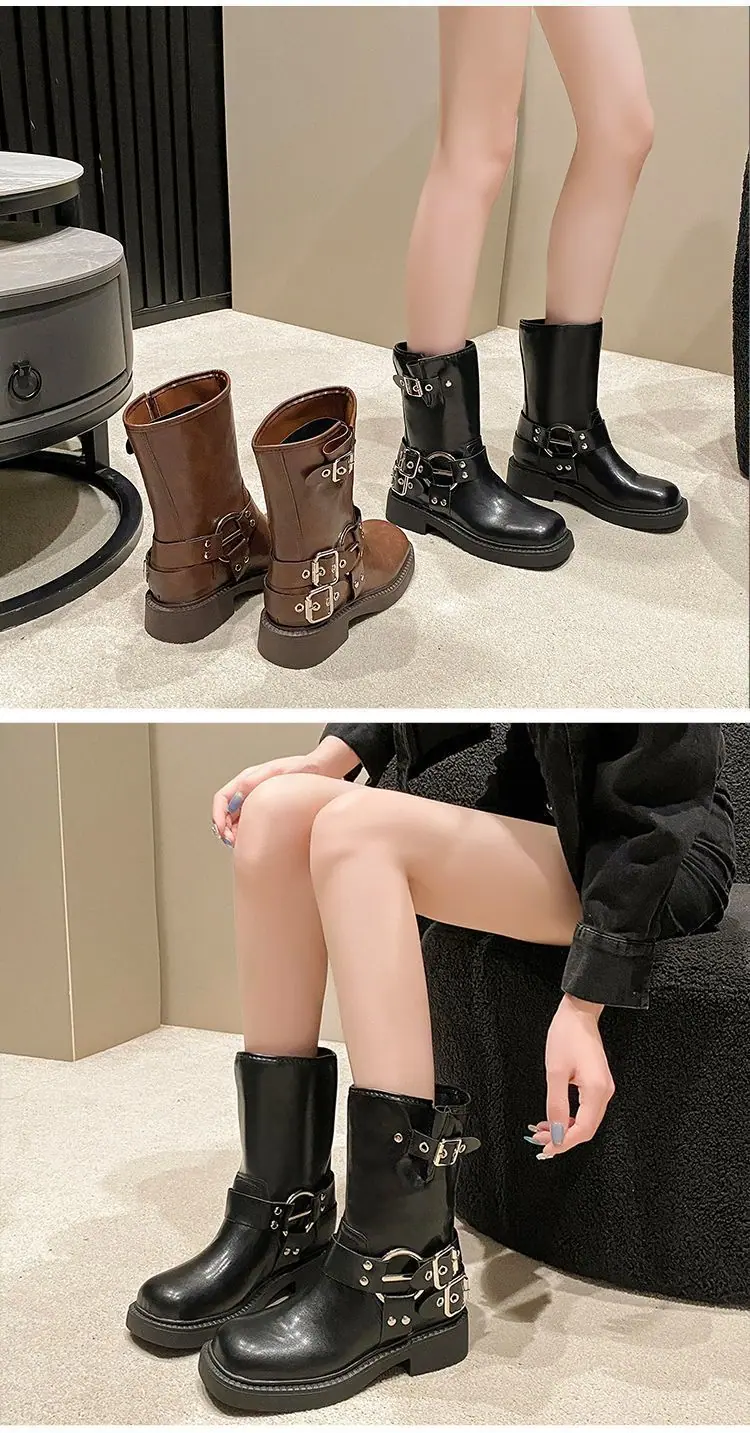 Botas de moda caballero de tacón grueso con hebilla de cinturón por encima de la rodilla verano 2025 retro botas largas botas western botas Martin marrones